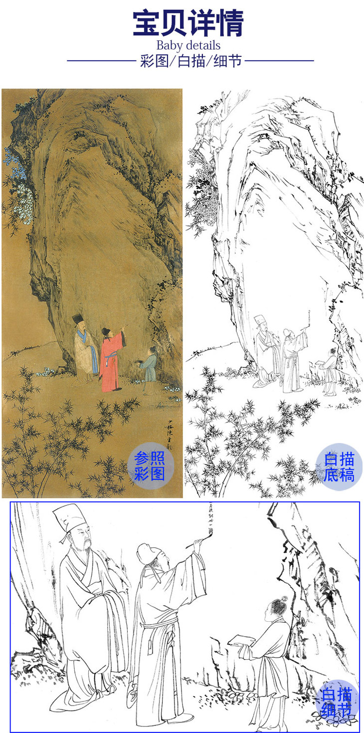 陈少梅竖幅工笔山水人物白描底稿-《题壁》-多种白描尺寸可选-CR67