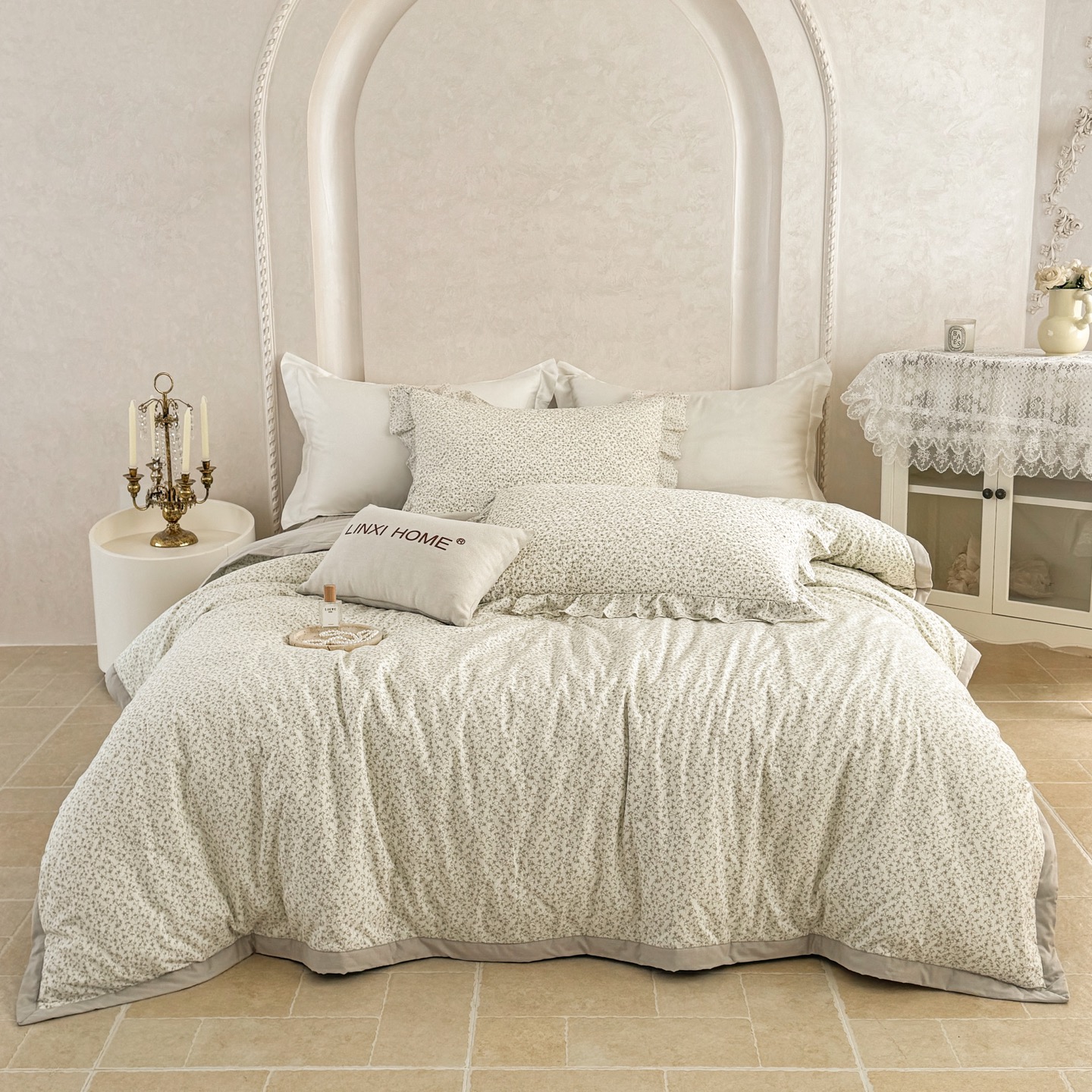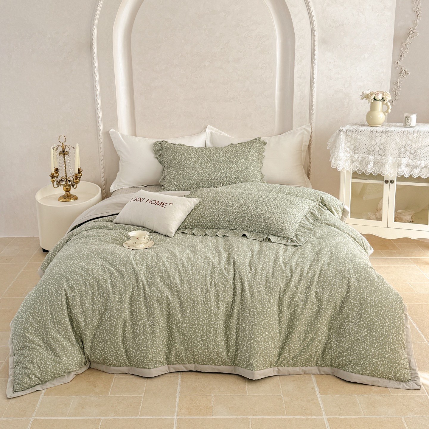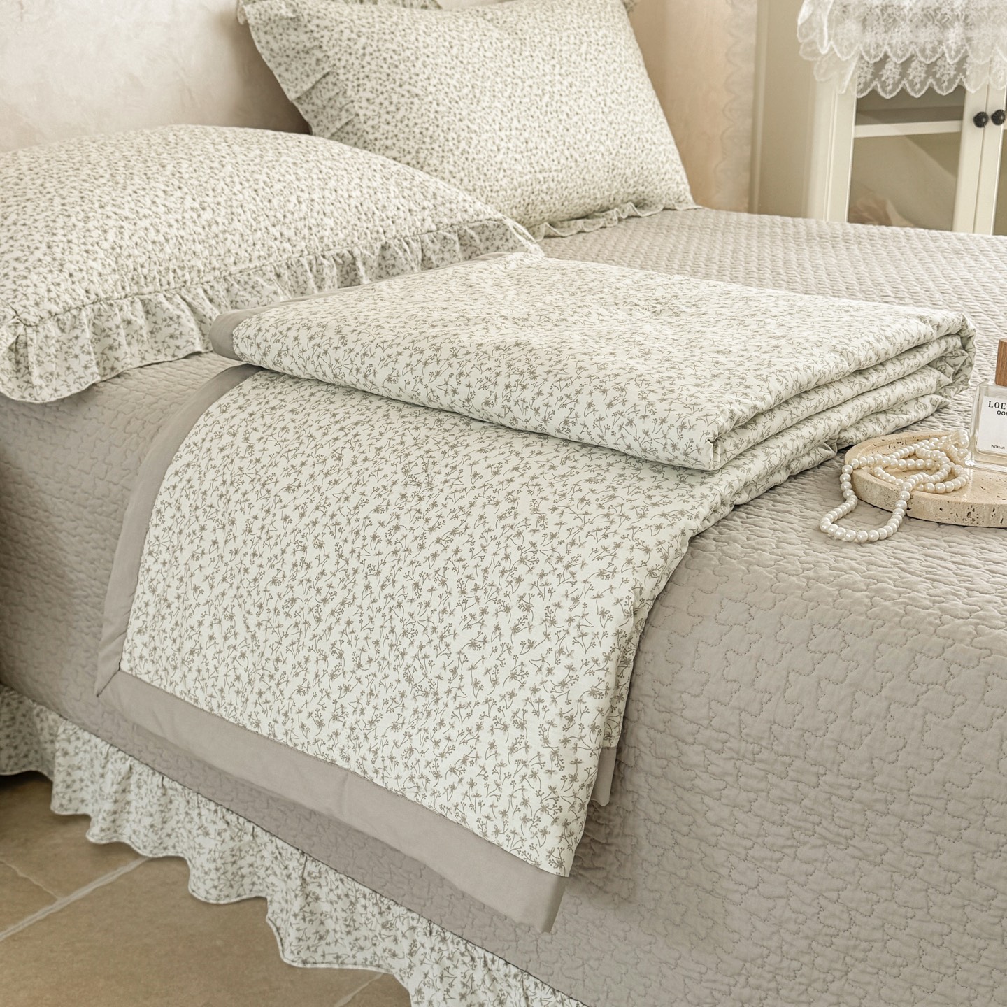 林夕-韩式水洗棉田园碎花被套200*230/床盖230*250床盖五件套-花韵倾城【CP】