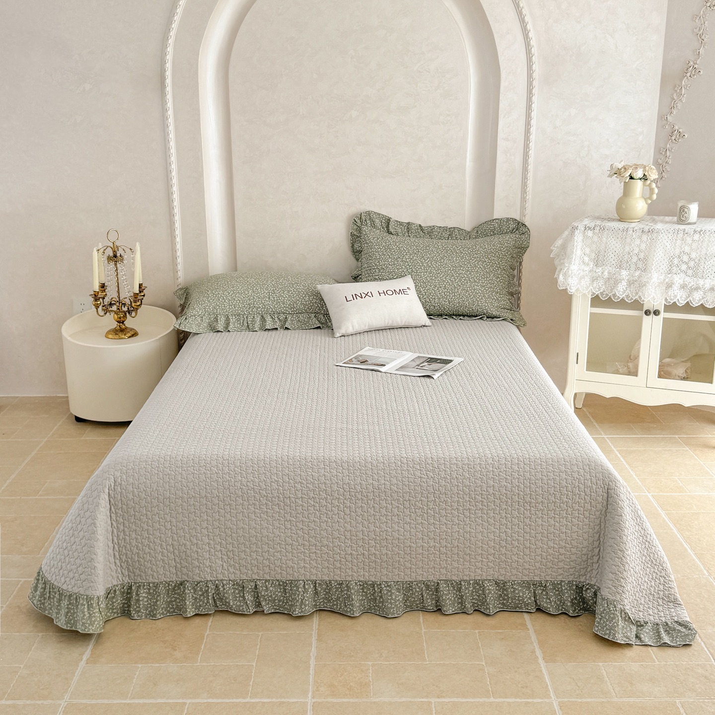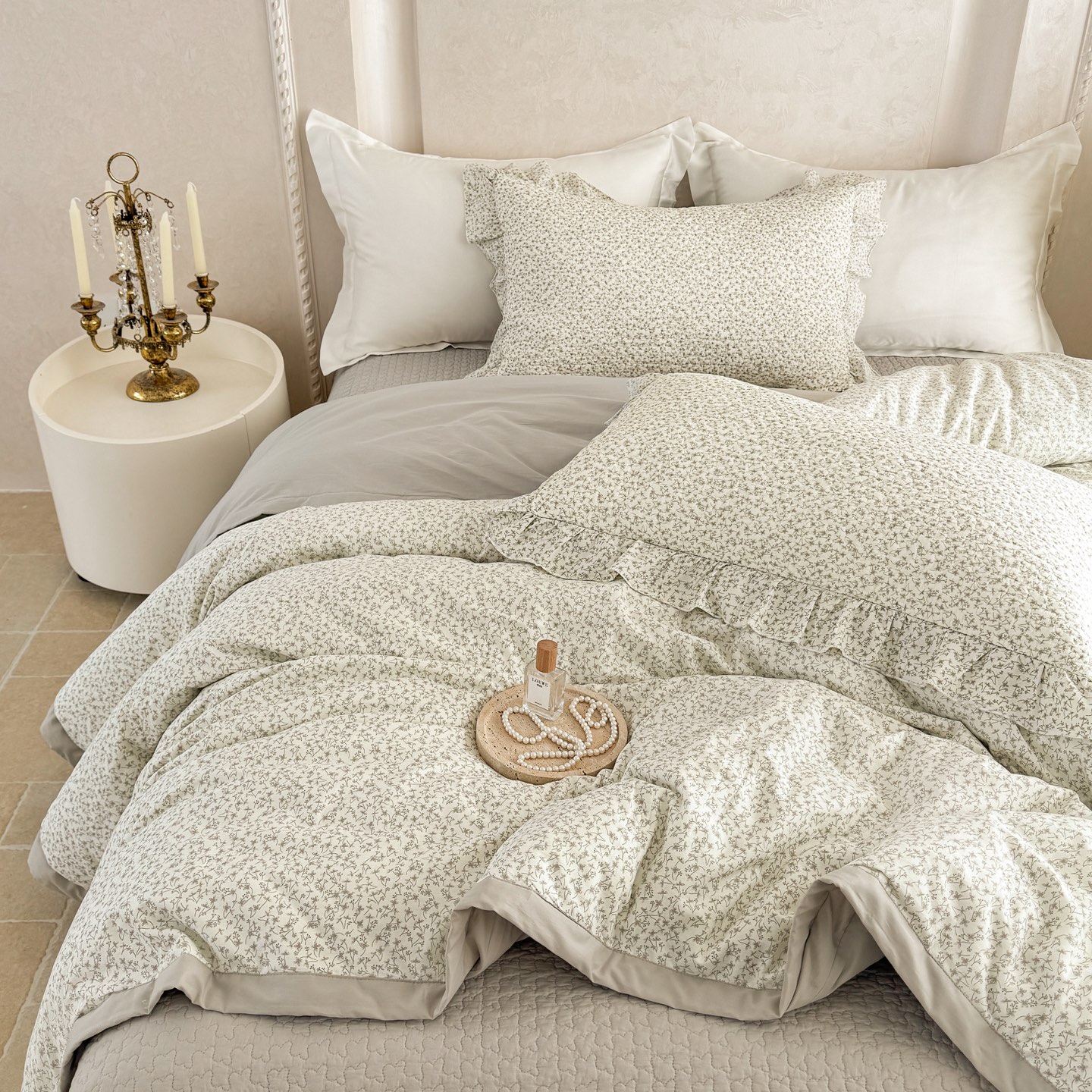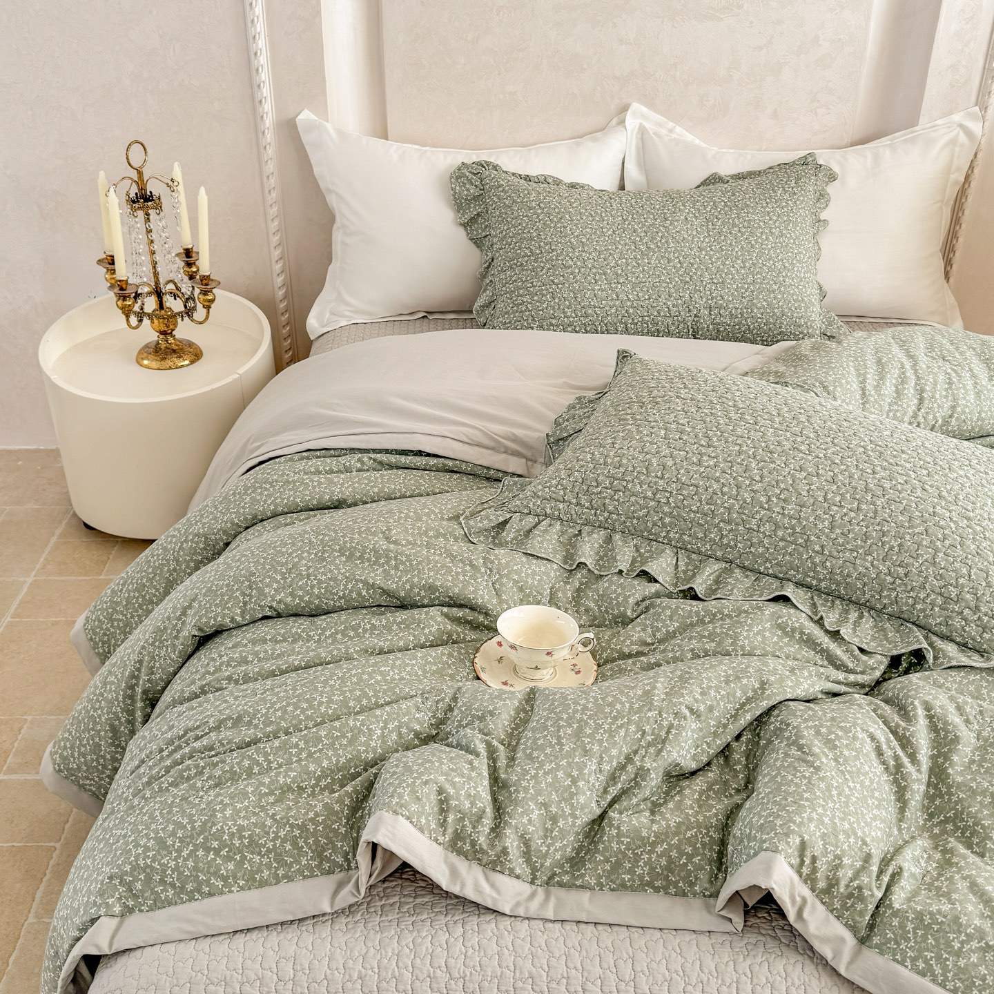 林夕-韩式水洗棉田园碎花被套200*230/床盖230*250床盖五件套-花韵倾城【CP】