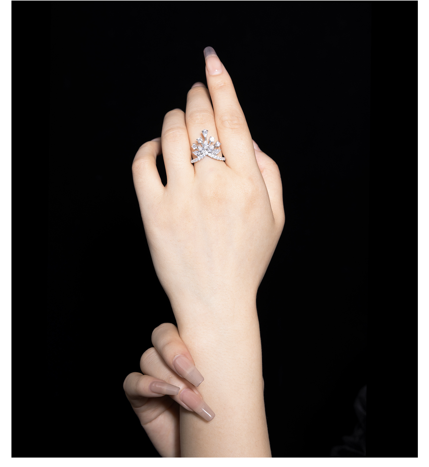 GAONAS高纳仕 爆款皇冠万能白戒指小众设计高级感轻奢满钻戒指女