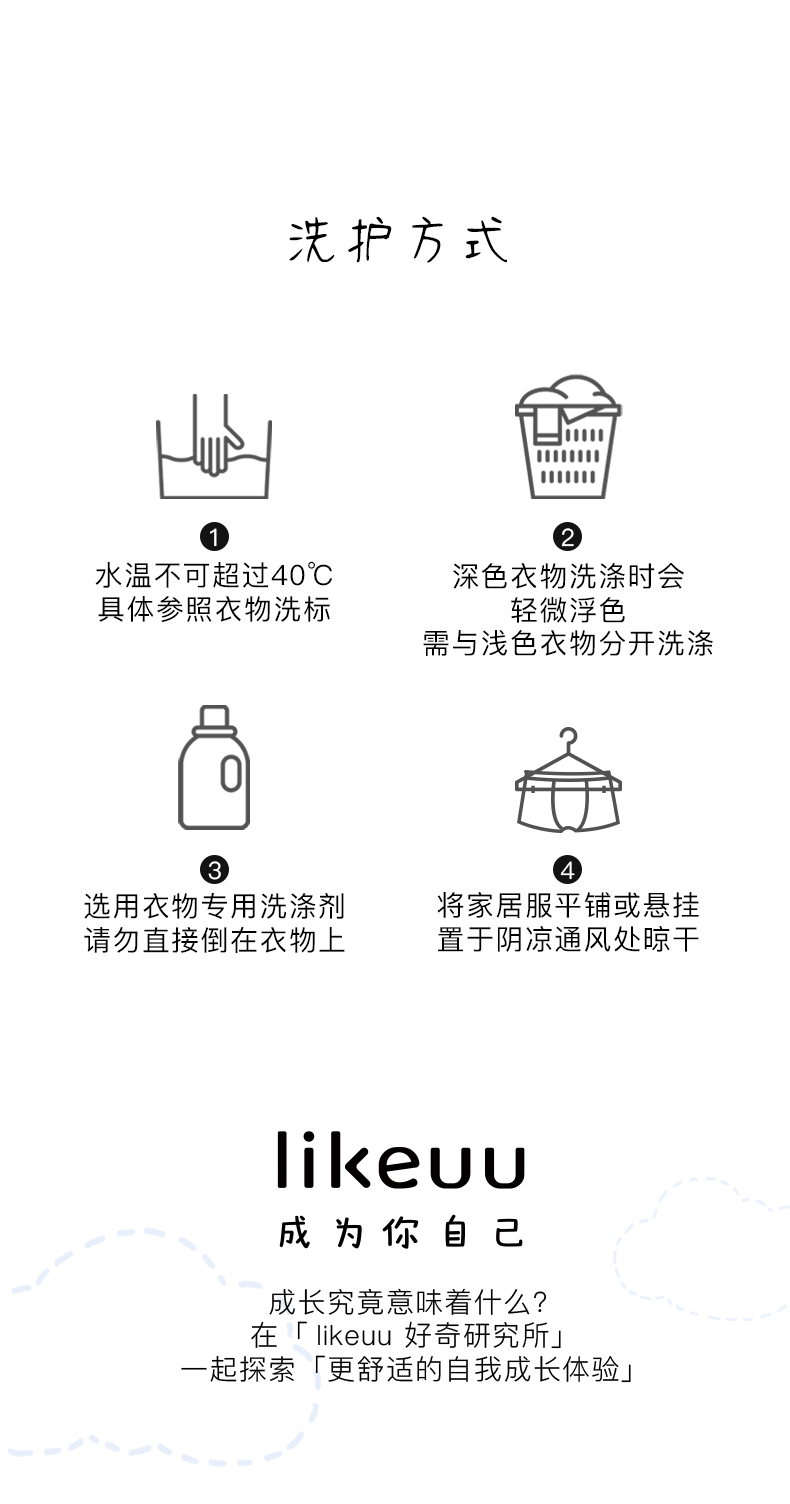 likeuu是专注于为6~15岁的青少年创造柔软、无束缚的成长体验,以好奇心为灵感的成长发育期贴身衣物品牌。likeuu的产品覆盖内衣、内裤、保暖衣、家居服、运动等品类。