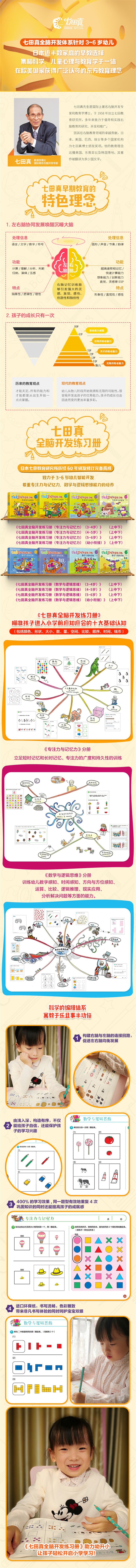 1.全脑开发,构建回路:七田真教育是非常重视左脑与右脑均衡发展的“全脑教育”,通过七田真全脑开发练习册将左脑和右脑之间的强力回路建立起来,才是提升孩子思维能力的关键;