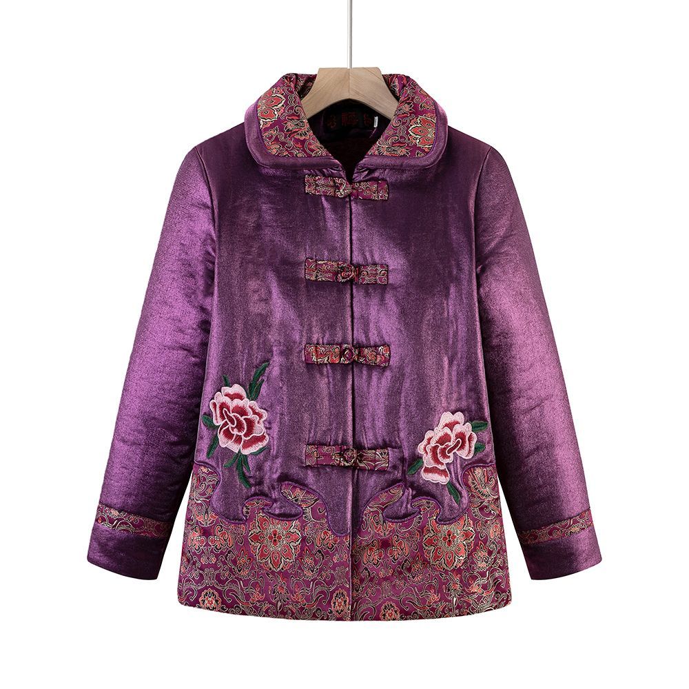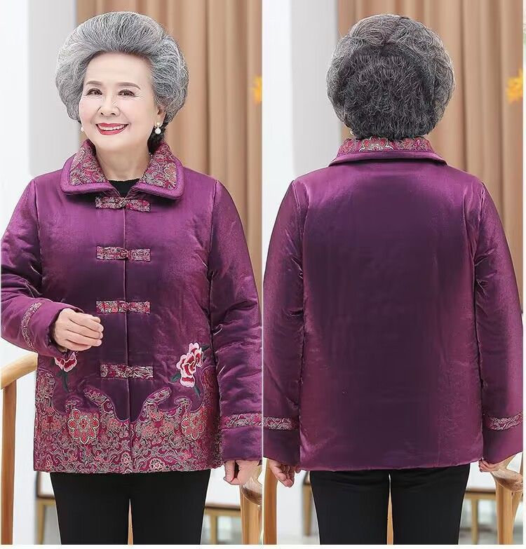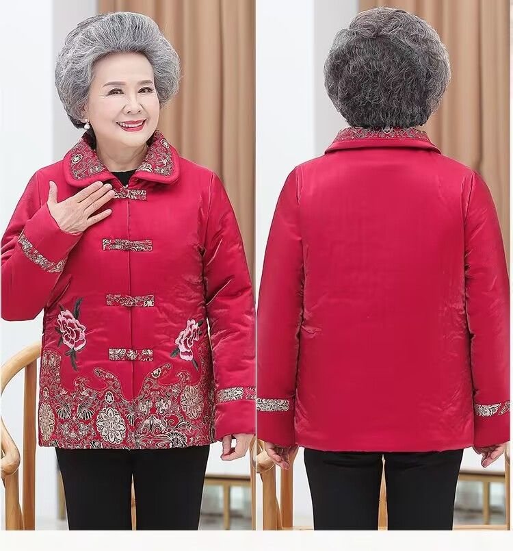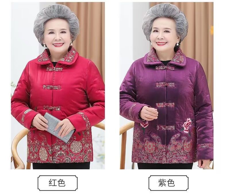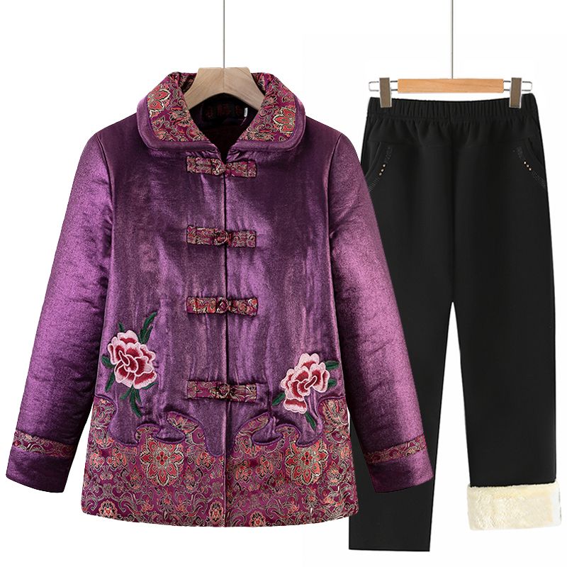KJ2036奶奶冬装棉袄加绒加厚棉衣服60岁唐装绣花中老年人外套女妈妈套装