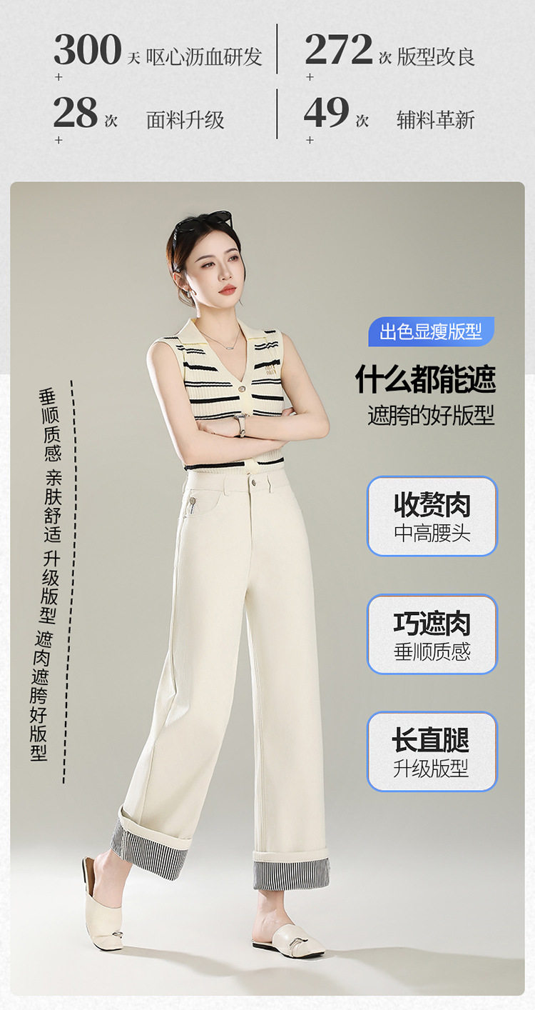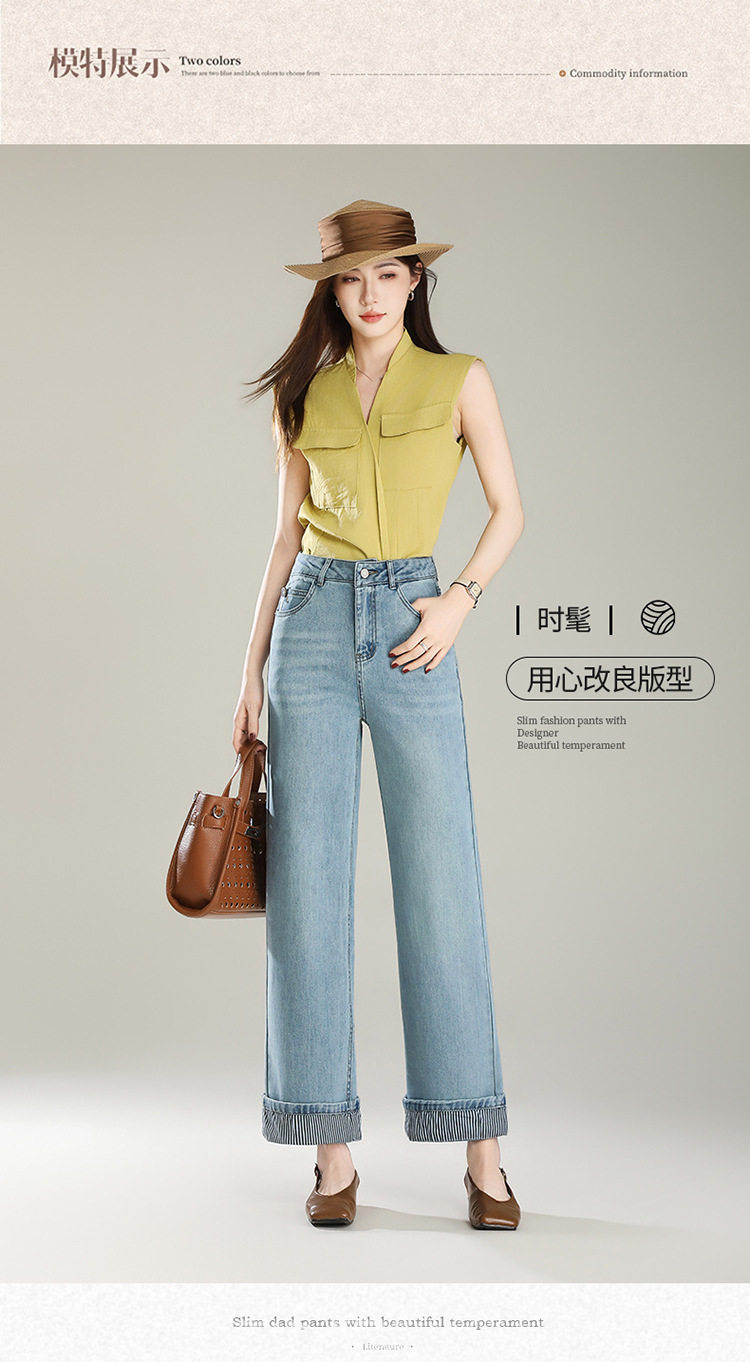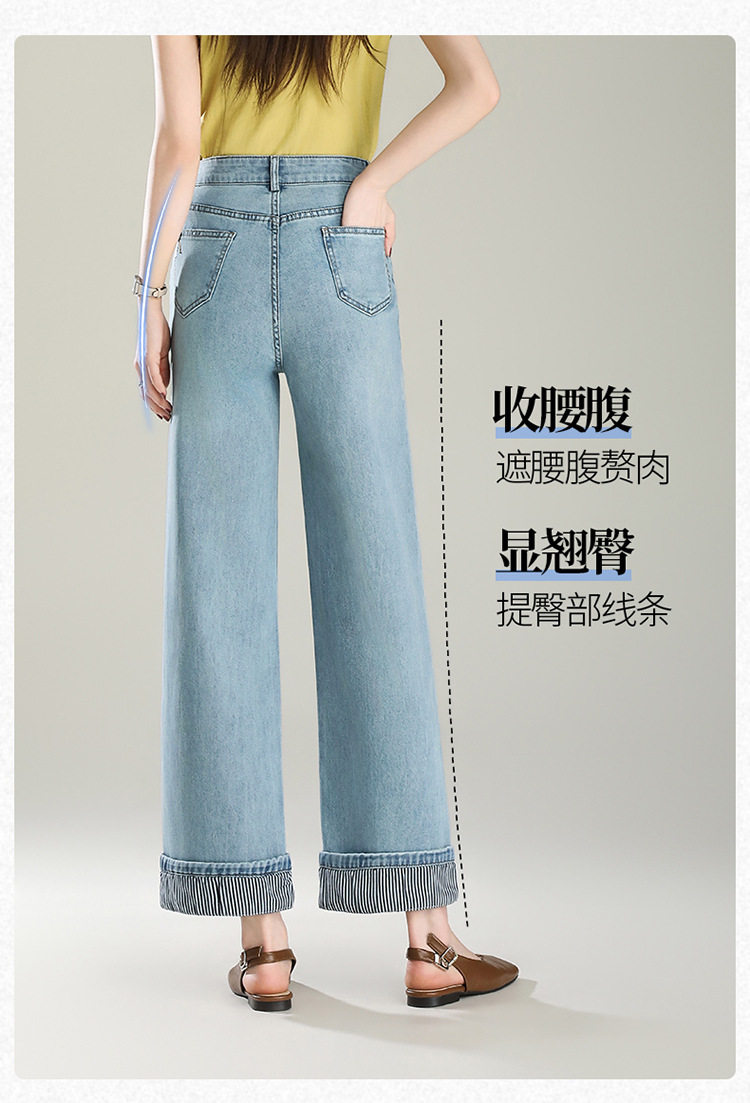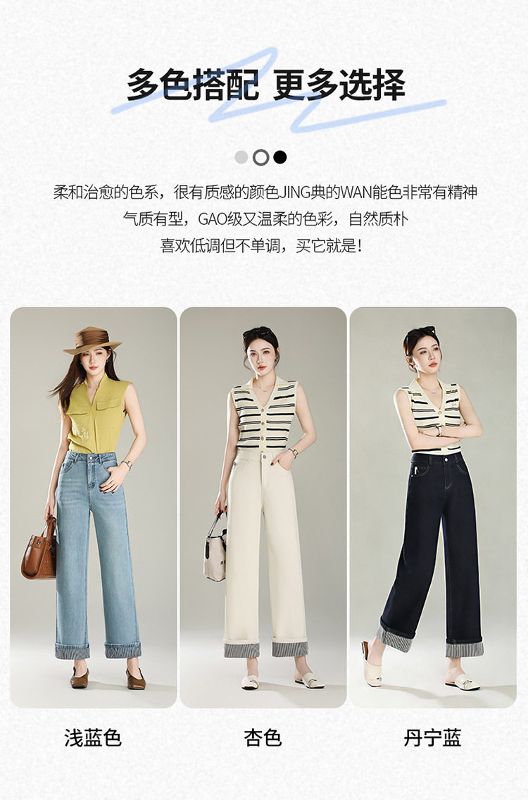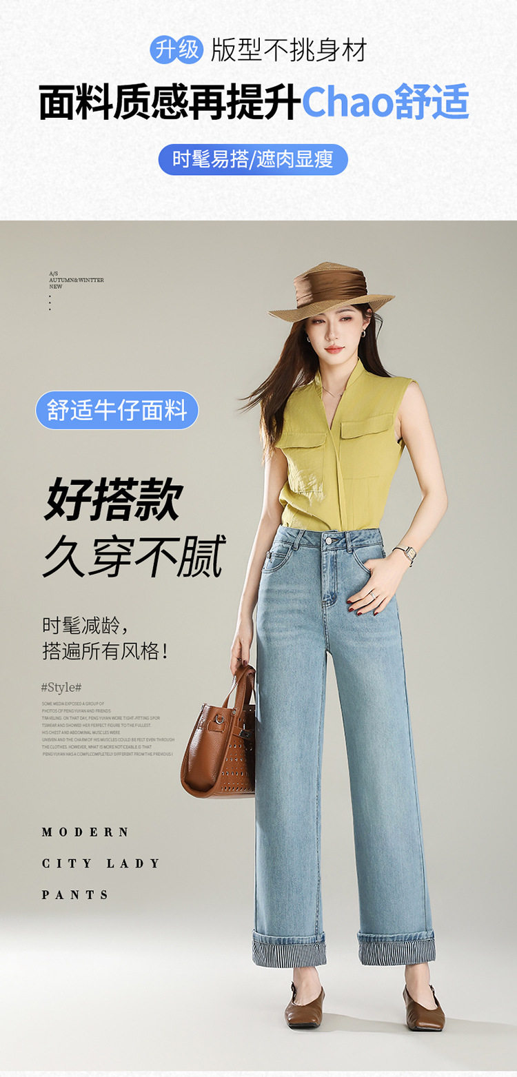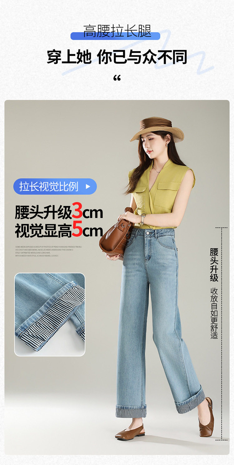 「自」全新升级【铂金会员174/天猫229/差价55】(14541)洛诗琳气质翻边牛仔裤2026春夏新款小个子窄版直筒九分阔腿裤