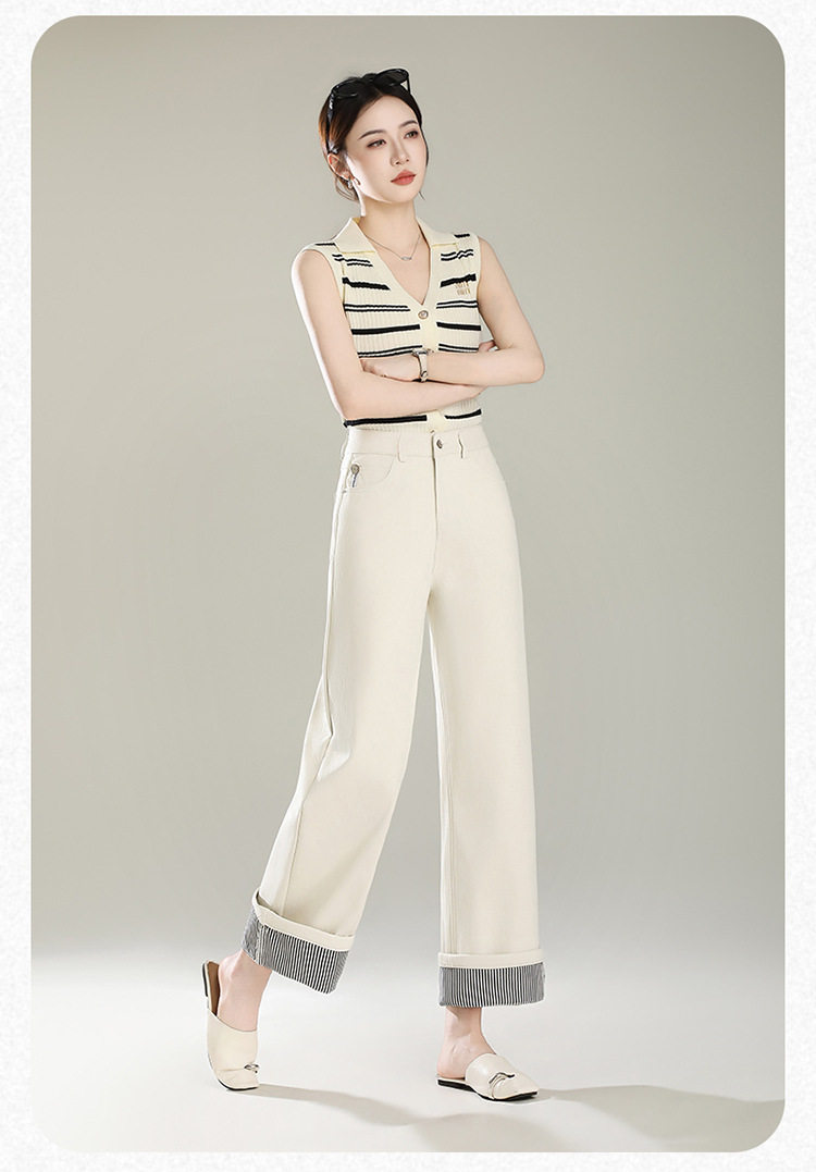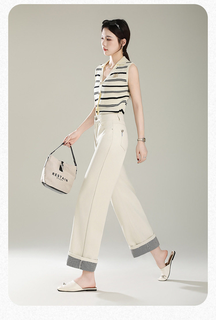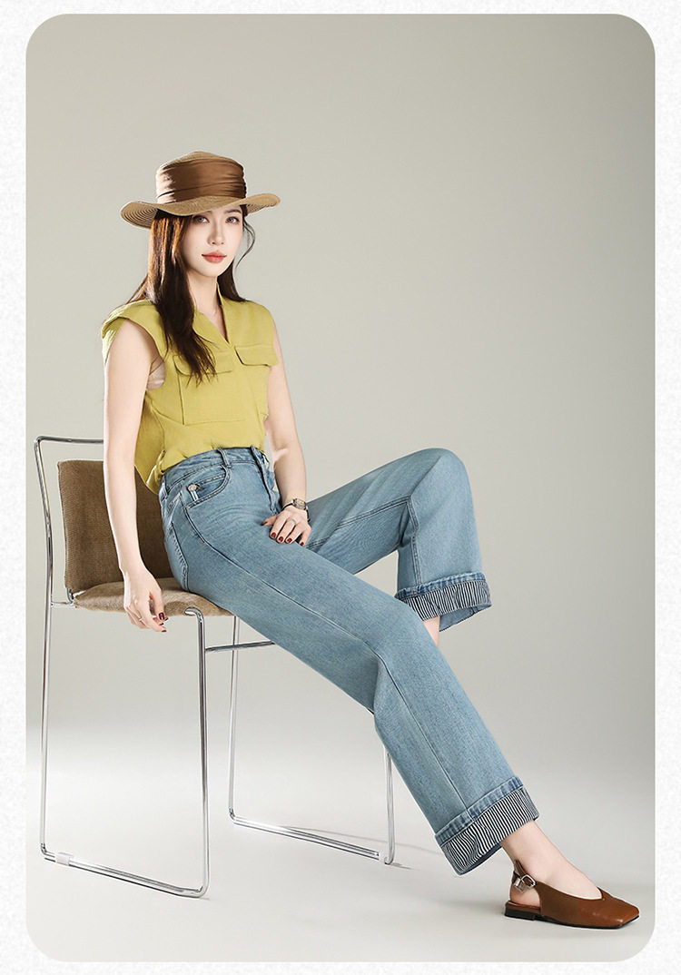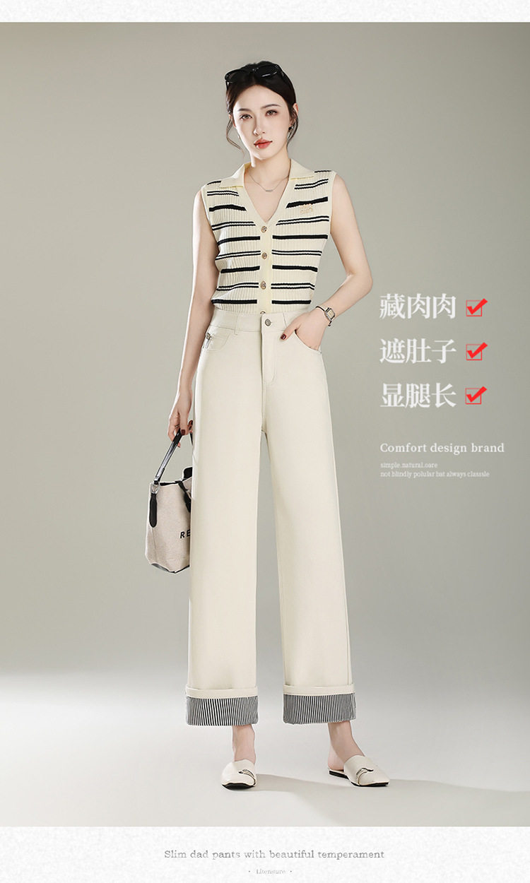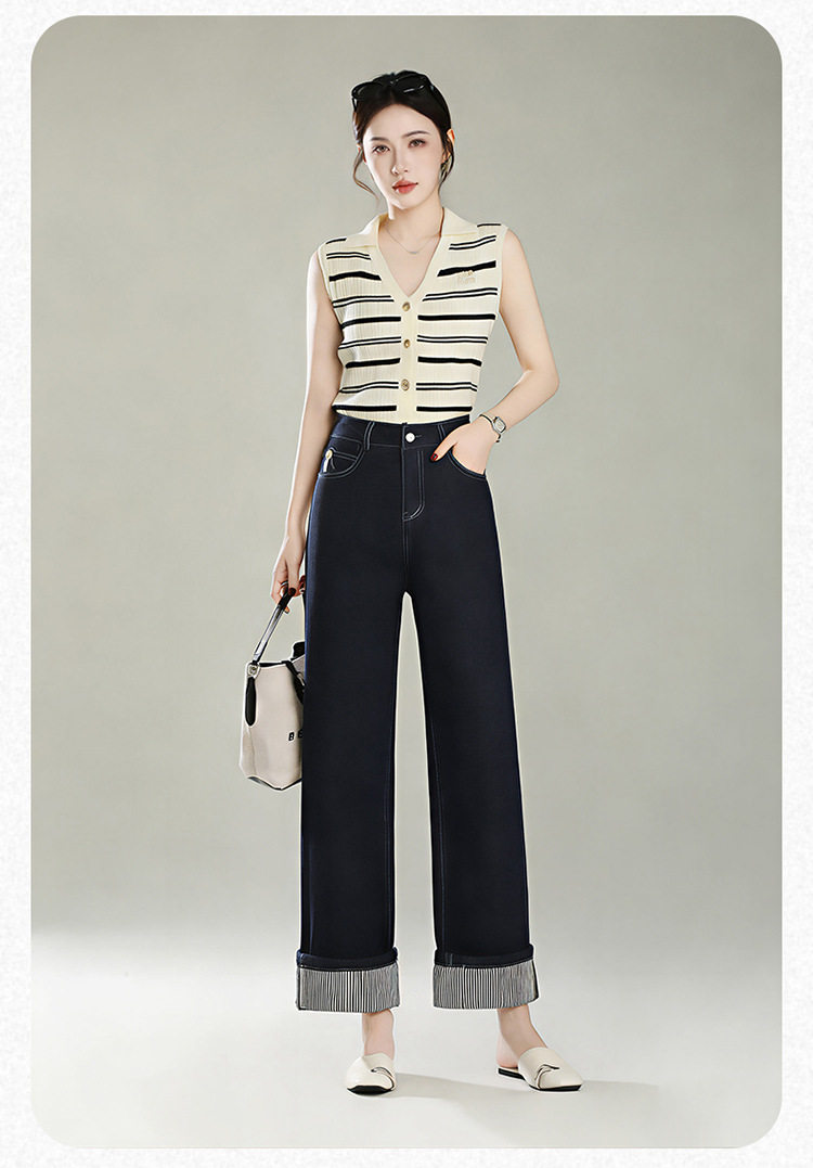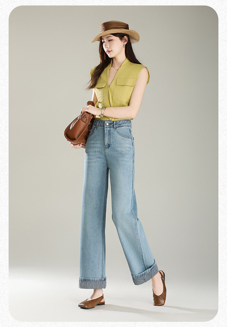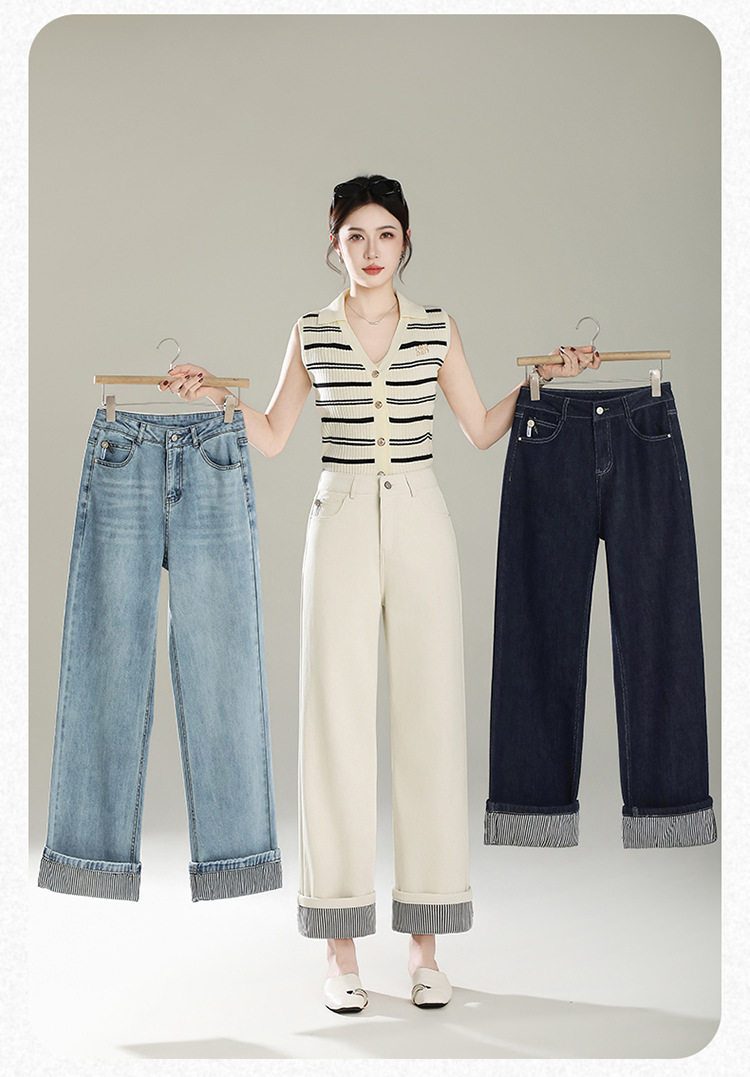 「自」全新升级【铂金会员174/天猫229/差价55】(14541)洛诗琳气质翻边牛仔裤2026春夏新款小个子窄版直筒九分阔腿裤