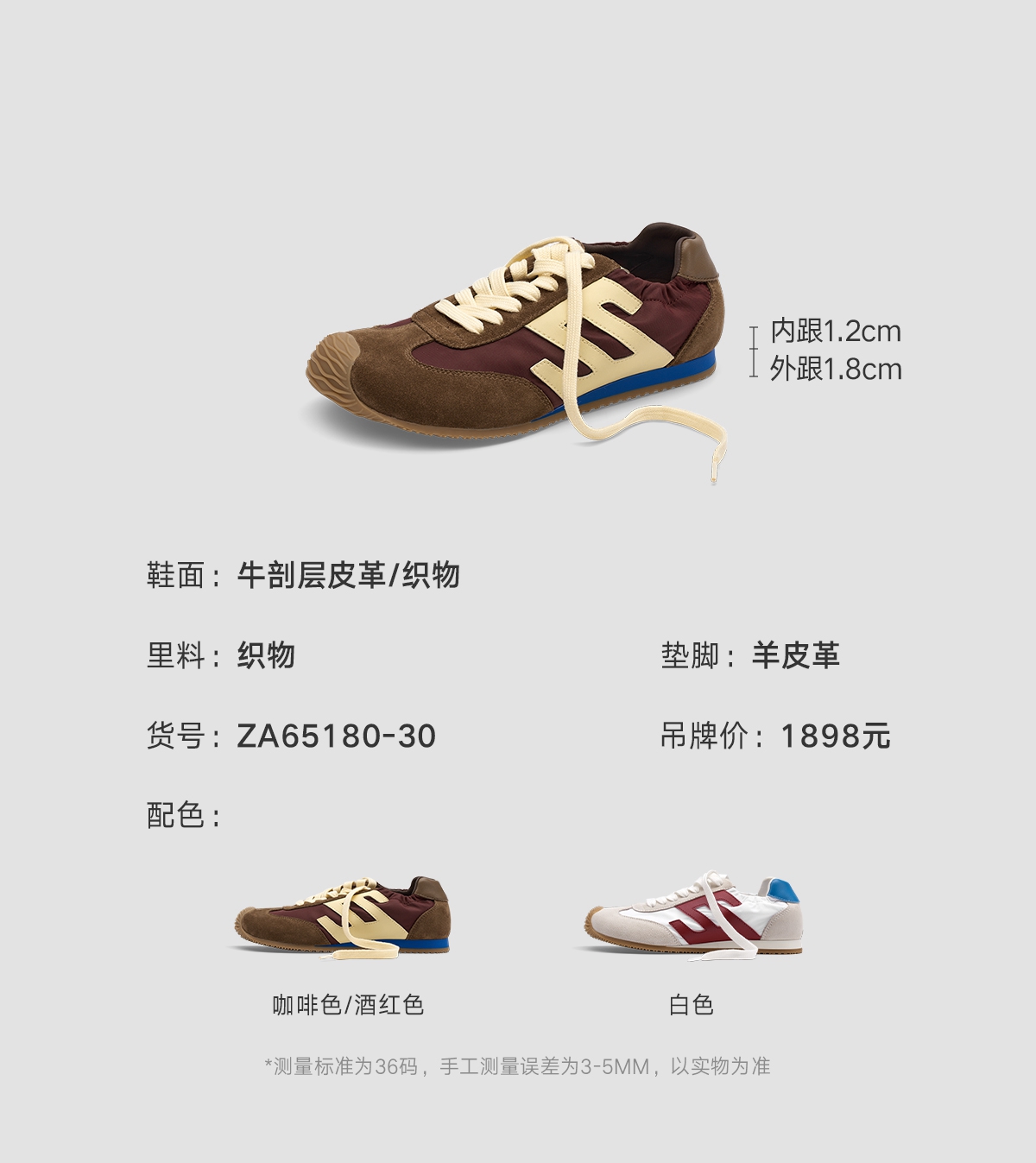 [牛角包]ZSAZSAZSU莎莎苏 2025春新款复古平底内增高阿甘鞋女鞋大头鞋德训鞋