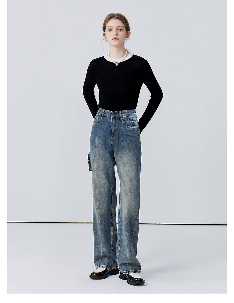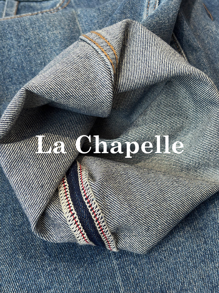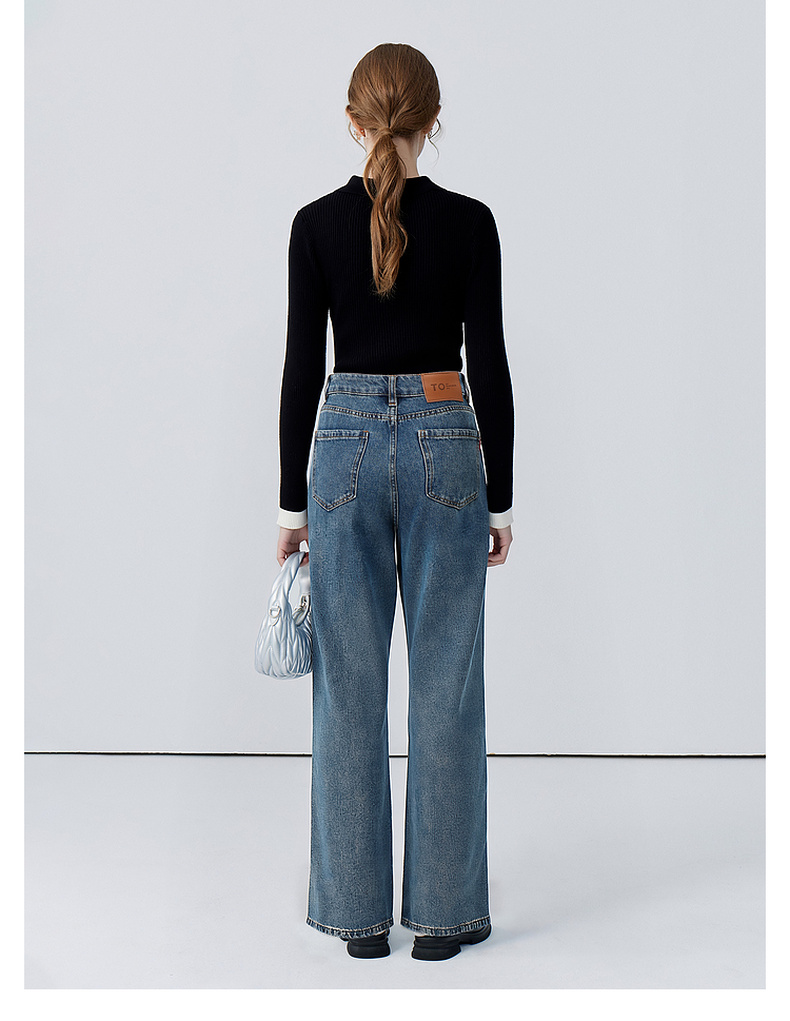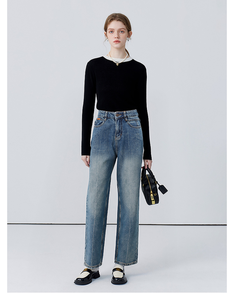 会员福利【雅赛尔+高棉】拉夏贝尔/La Chapelle字母皮标牛仔裤女高腰水洗宽松垂感休闲百搭直筒长裤秋季