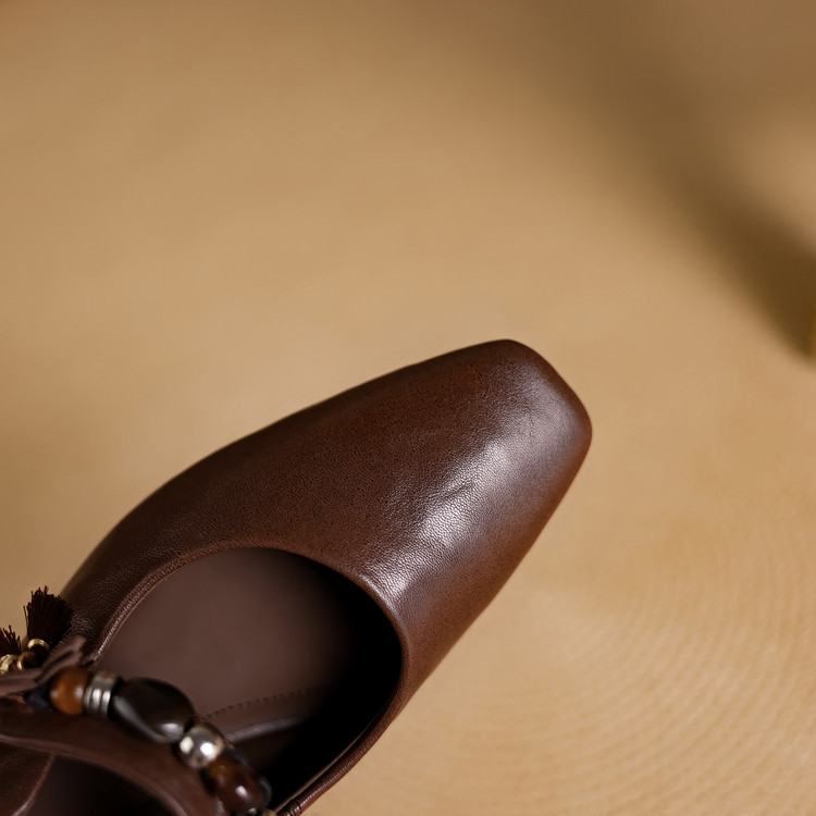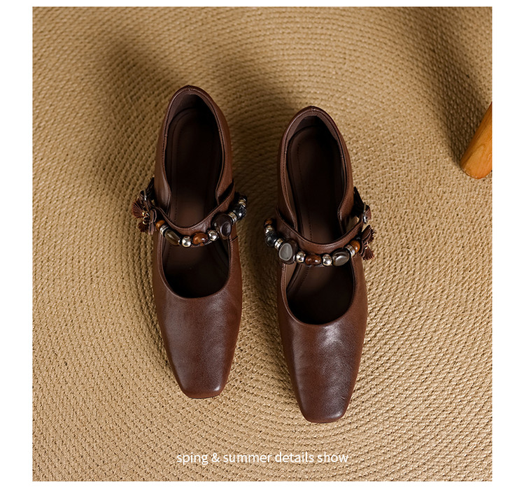 【预售5天】新款方头粗跟低跟单鞋女时尚浅口舒适一字扣带串珠玛丽珍鞋女NJMK&K1708