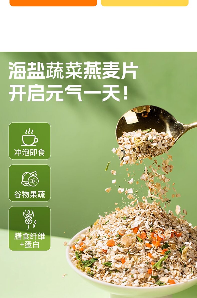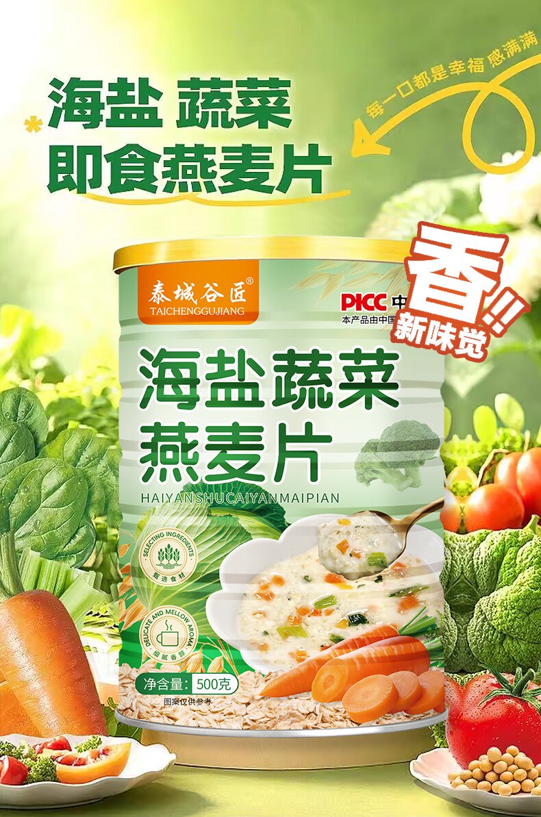 开春热卖中!海盐蔬菜燕麦片+开启元气一天 营养早餐,一分钟搞定,泰城谷匠500克罐装海盐蔬菜燕麦片代餐营养早餐。