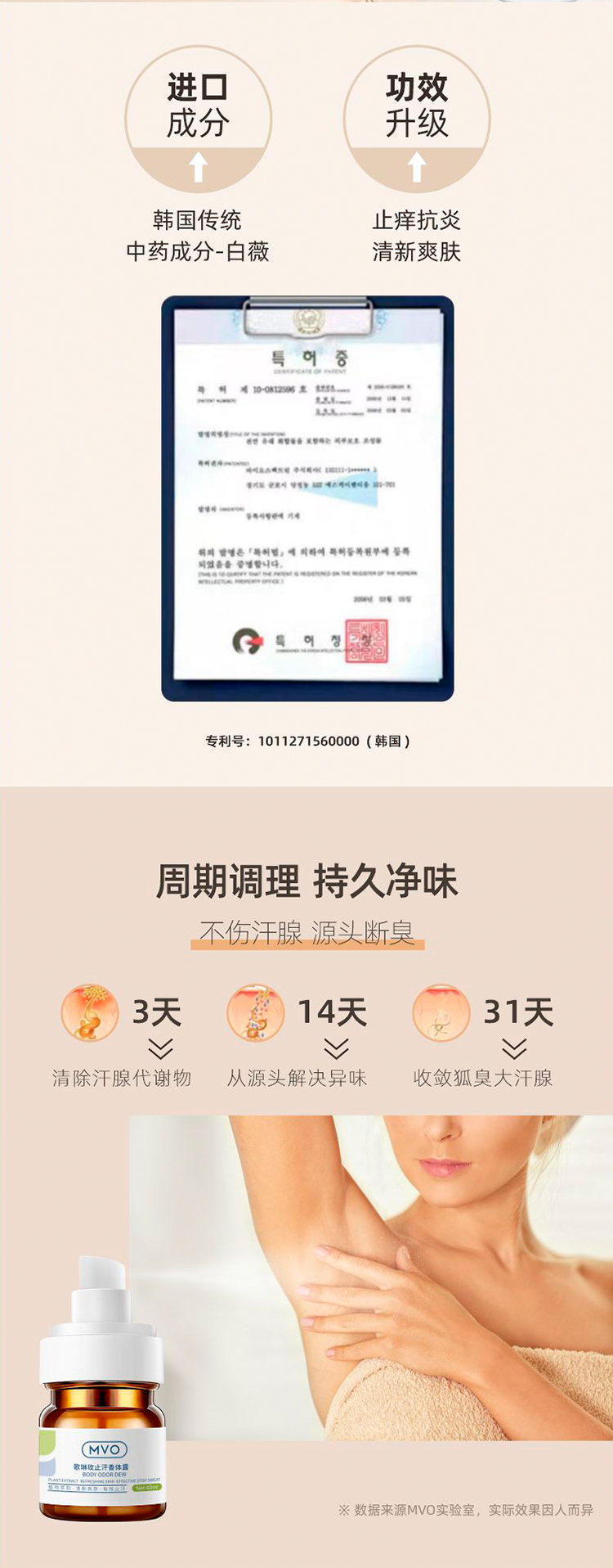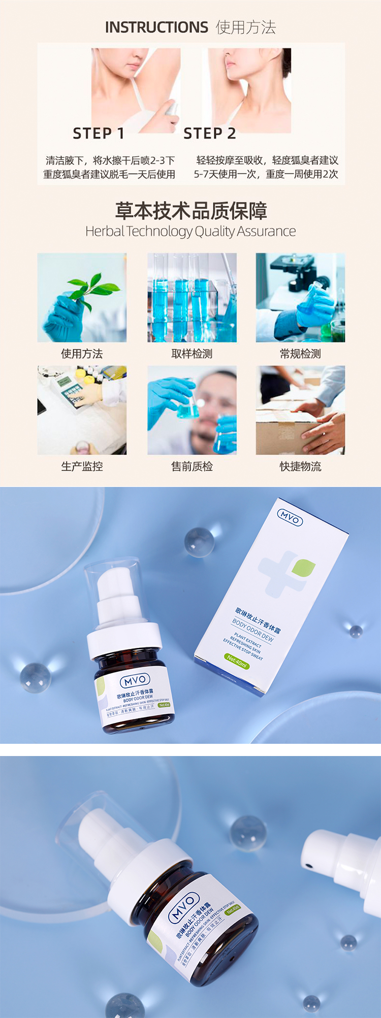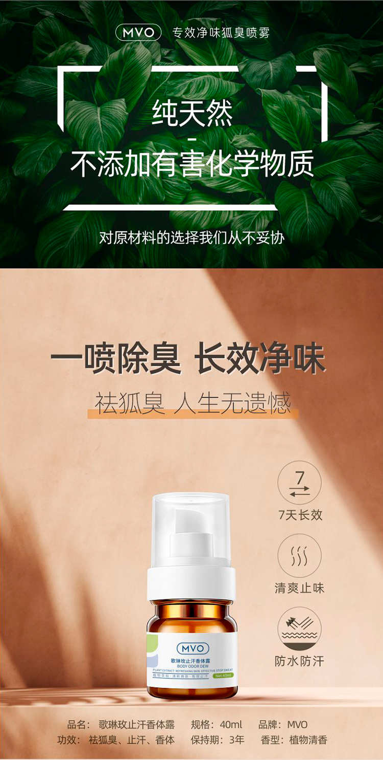 【一喷除臭】MVO歌琳玫止汗香体露狐臭喷雾防水防汗7天长效清爽止味天然植萃