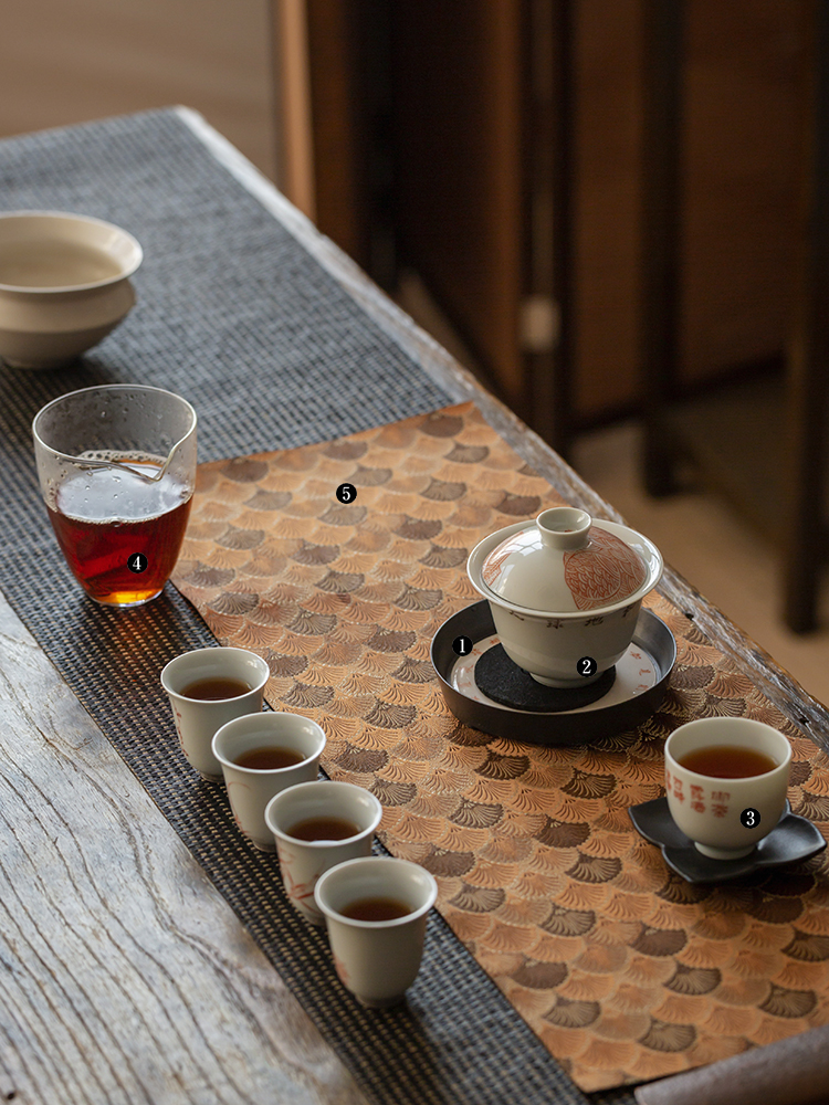 中间搁置朱泥小壶,或者素简的小盖碗,非常宜搭。