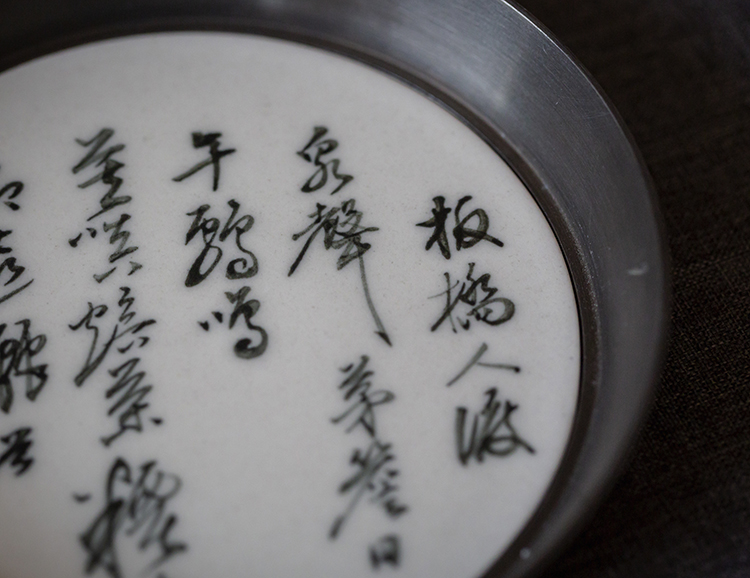 这组壶承,锡、瓷、青花,多种材质的结合恰到好处。