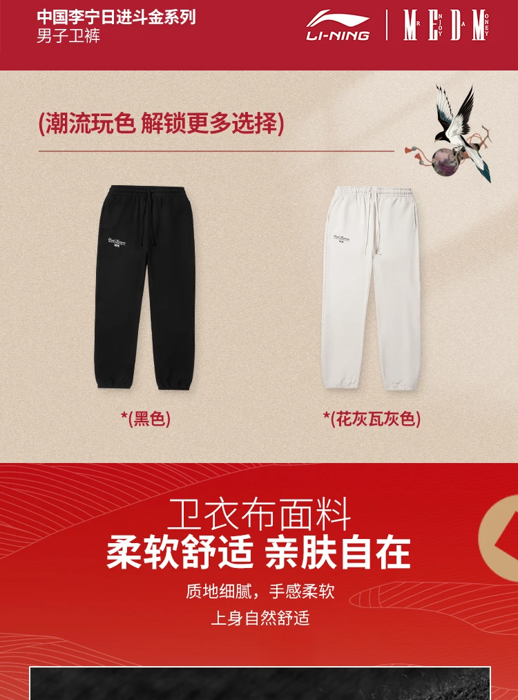 【M断码】中国李宁 x MEDM 日进斗金联名系列男子束脚宽松卫裤AKLV697【库存有限,如无货将做退款,介意慎拍!】