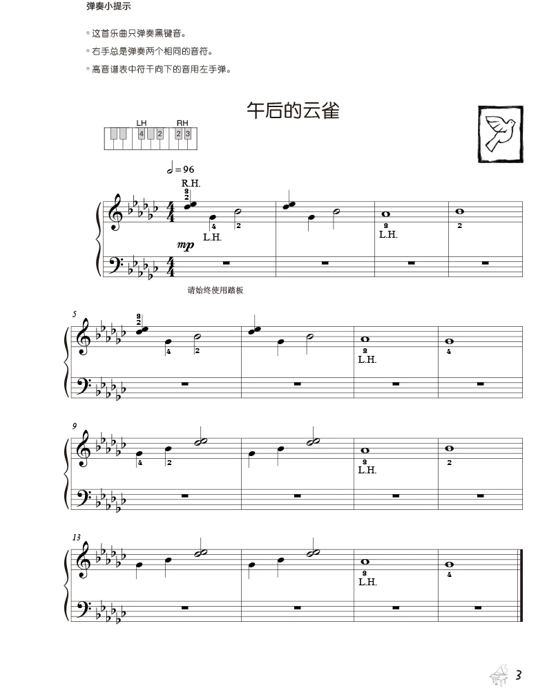 小宝石钢琴小曲是我社引进的一套适合钢琴初学者的教学曲集,共三册:红宝石、蓝宝石、绿宝石,分别对应入门级、初级、初中级。本册是“蓝宝石”,作者创作了迷人的旋律和富有想象力的钢琴小曲20多首,如《秋叶飘落》《午后的云雀》《梦中的浪花》《转圈圈》《漫步在卡伦西亚》《螃蟹》《四月的雨》等,涉及“长乐句”“四五度音程”“音阶”等技术,注重学生对音阶、和声、乐句、结构等知识的理解和学习,并引导学生为旋律编歌词、利用乐曲中的音乐元素即兴演奏,培养学生的想象力和创造力。该书主要有以下特点:一是教材作者采用了“模奏”的教学方式,让初学者通过模仿学习;二是每首乐曲都有“弹奏小提示”或“创意小贴士”,对该乐曲的弹奏技巧和音乐想象给出了建议和拓展,非常实用;三是我们配了一些精美有趣的插画,学习者可以根据对音乐的理解、想象,为插画涂上喜欢的颜色,增强趣味性;四是该书配有教学示范音视频,学习者可观看聆听音乐,获取有益的练习建议。 |