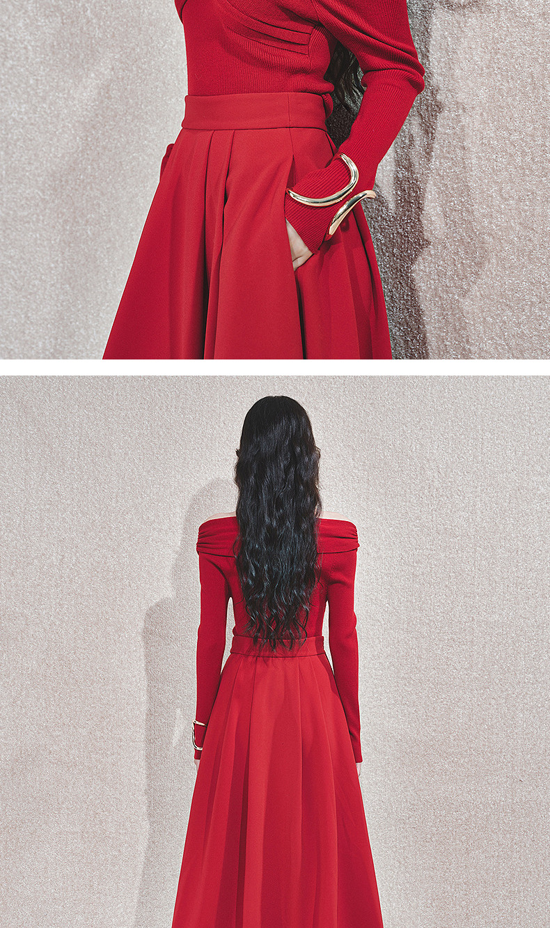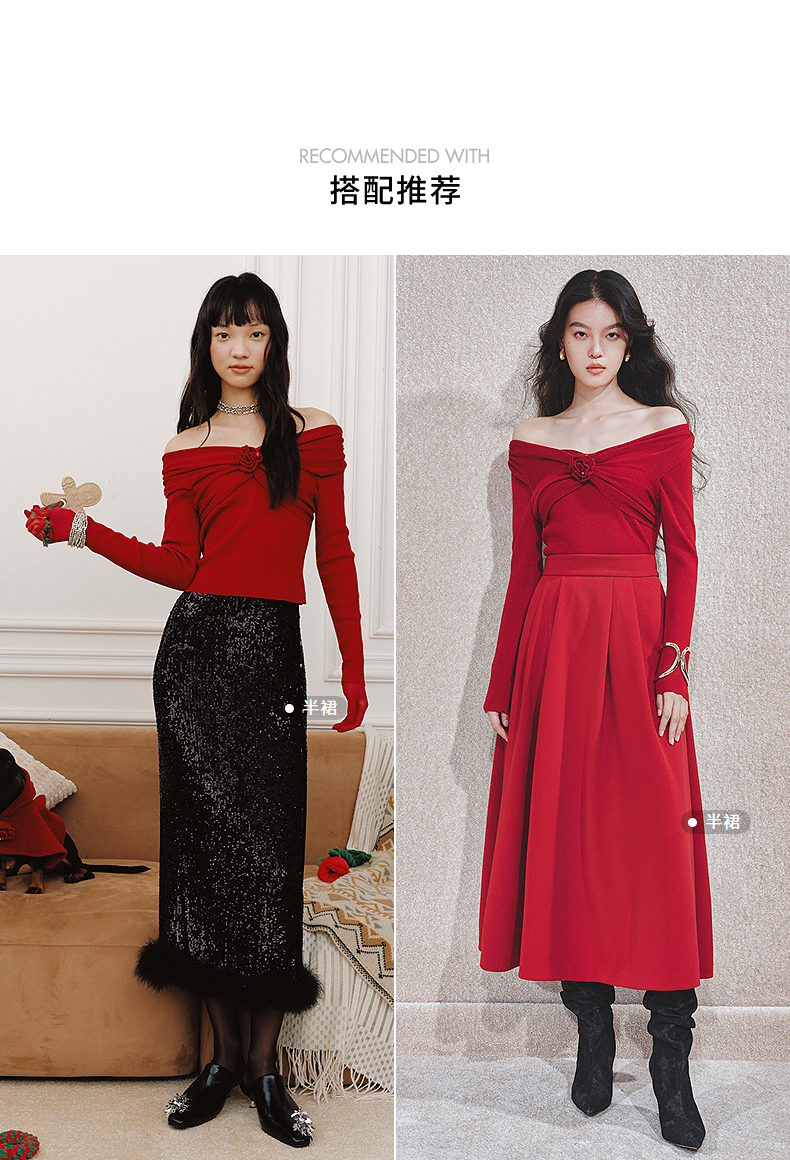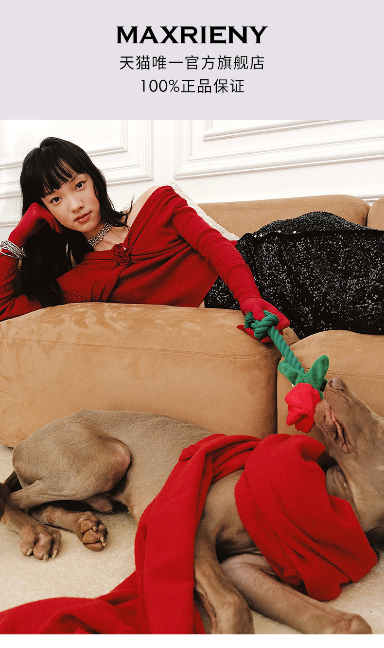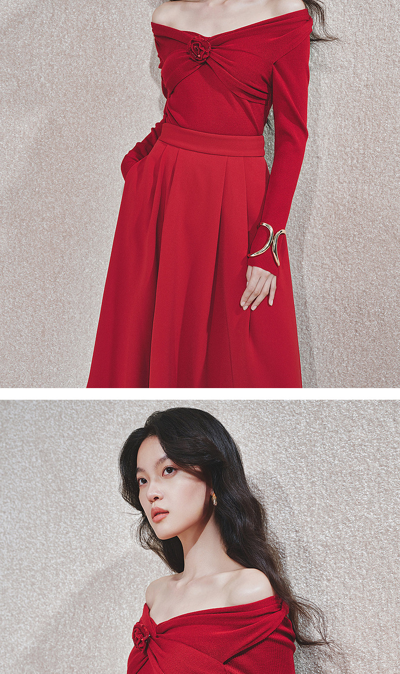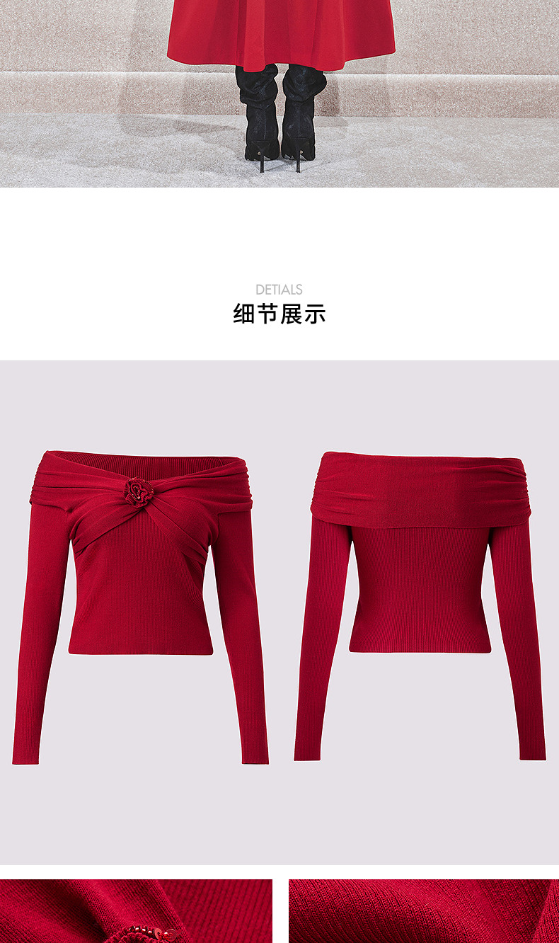 MAXRIENYMAXRIENY优雅一字肩针织红色上衣女(货号:MC85SW761)