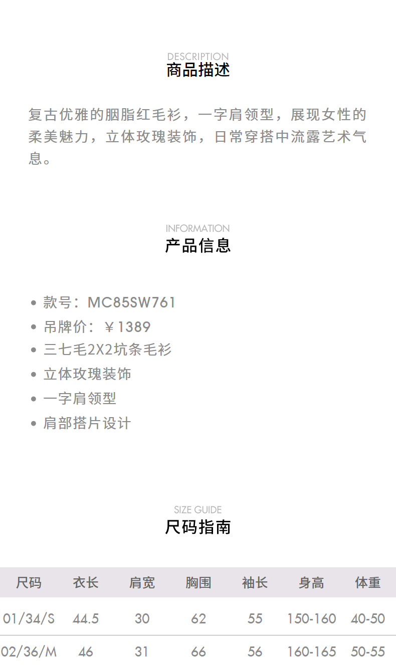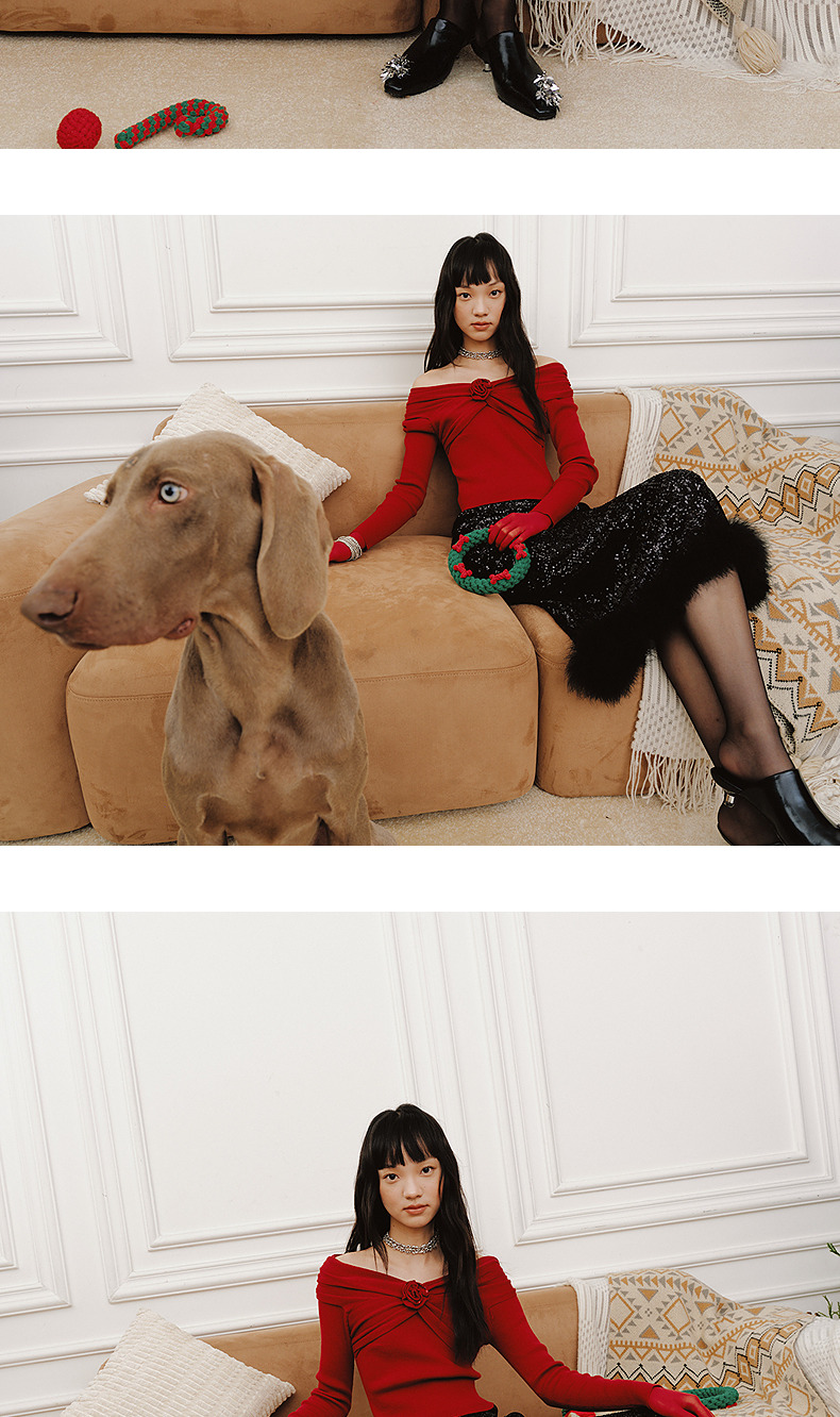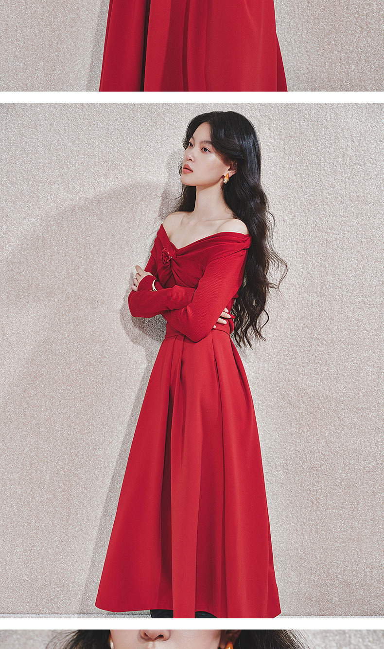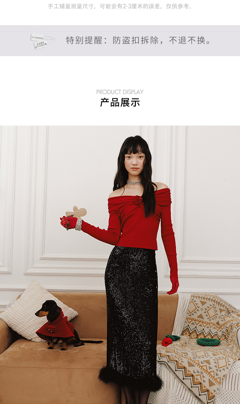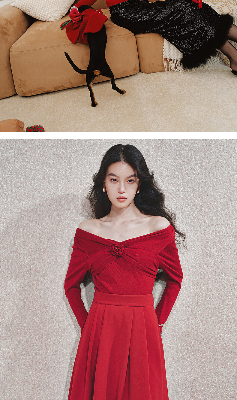 MAXRIENYMAXRIENY优雅一字肩针织红色上衣女(货号:MC85SW761)