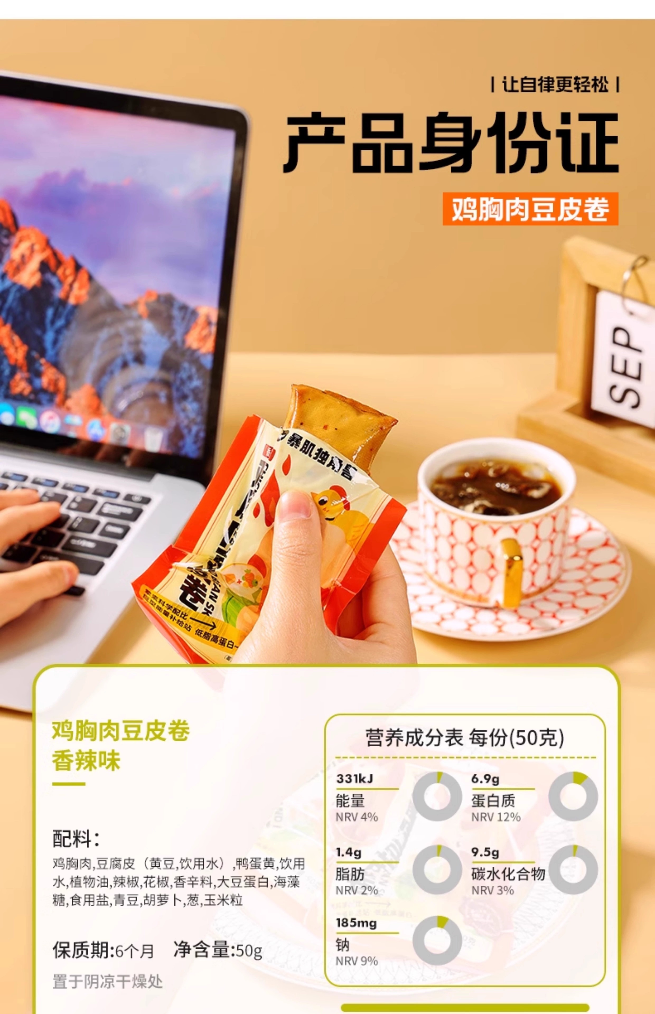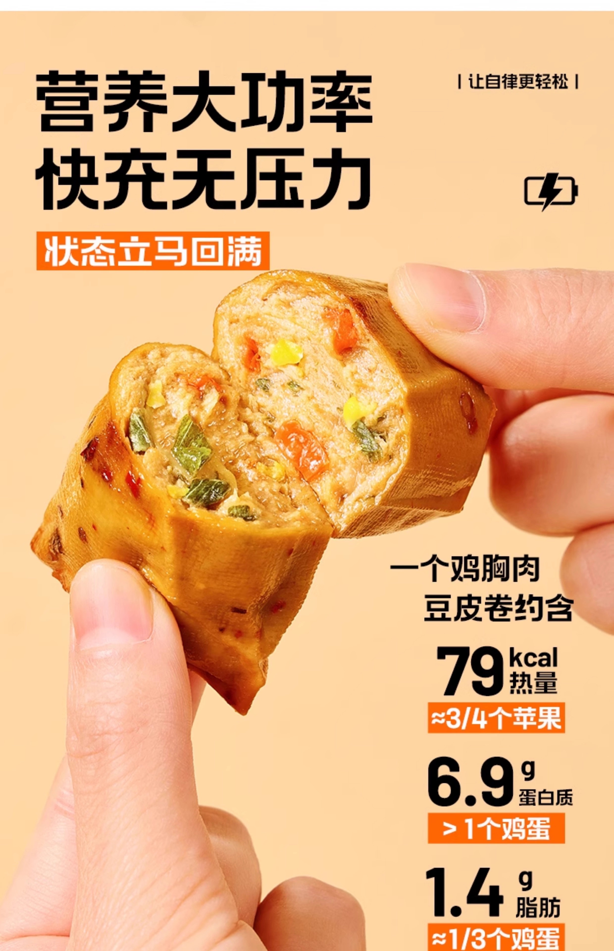 【暴肌独角兽 鸡胸肉豆皮卷】掌心大小弹嫩超带劲!高肉量高蛋白低脂肪 4/8袋装