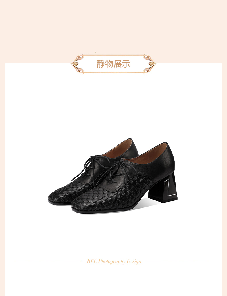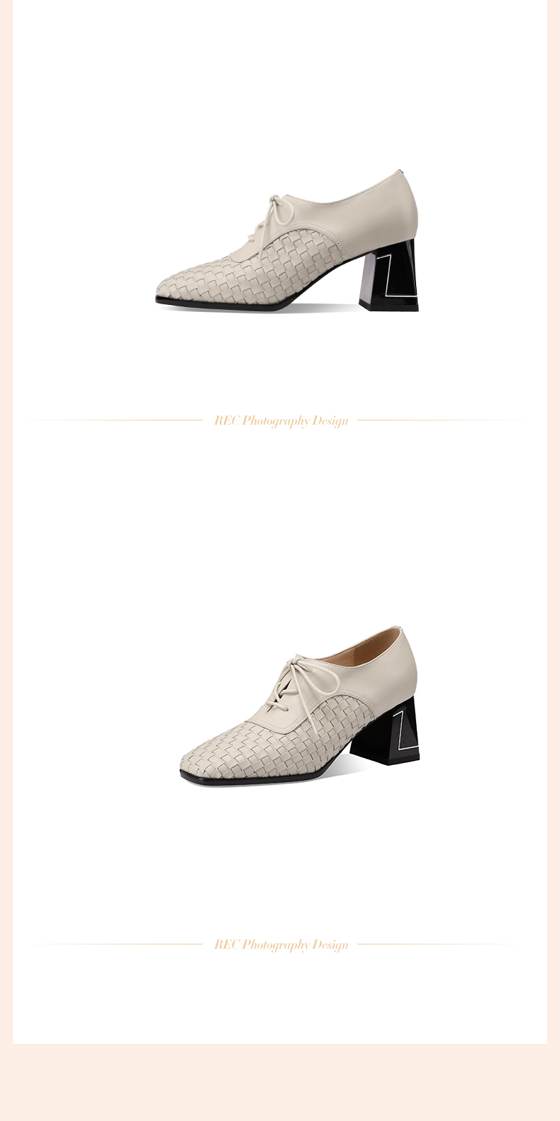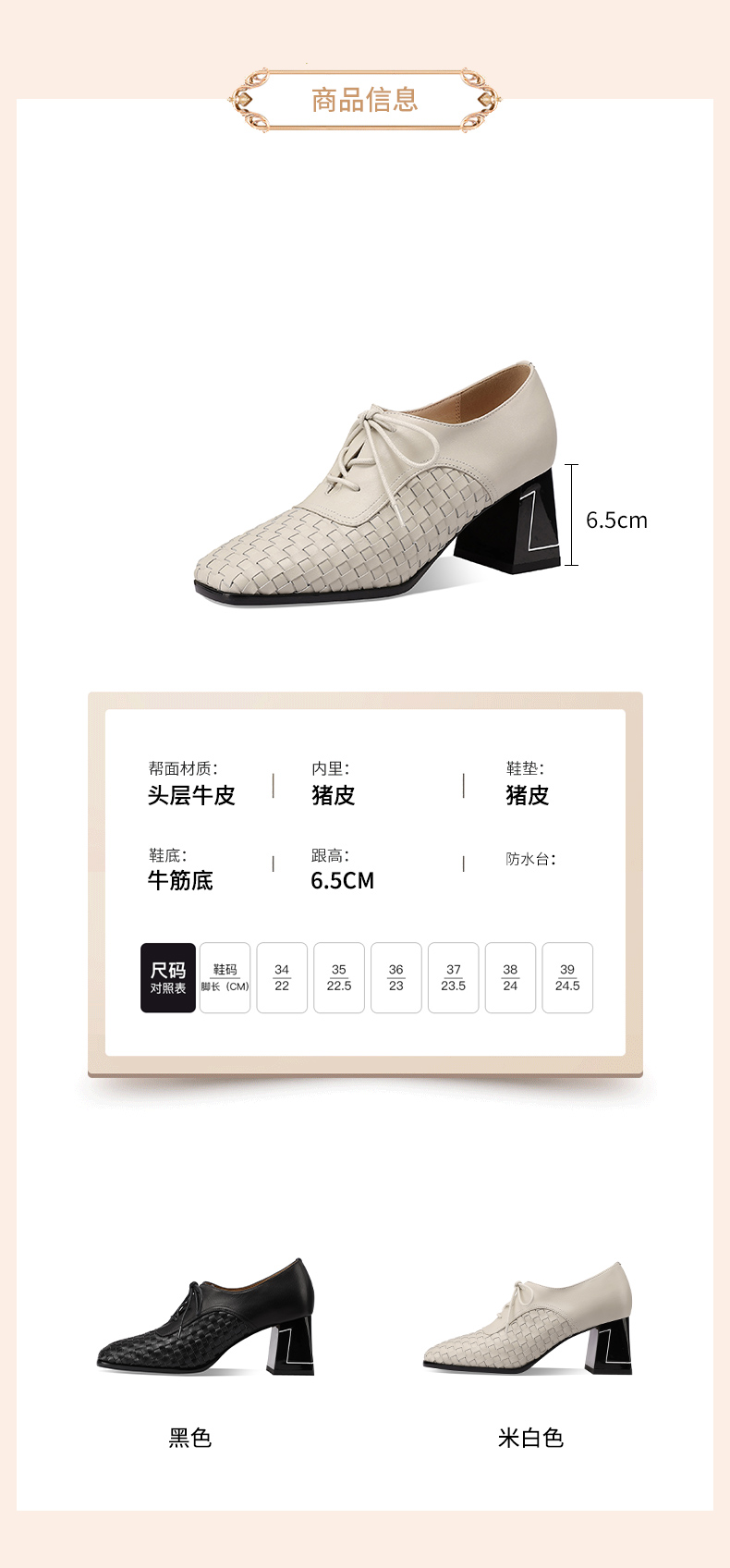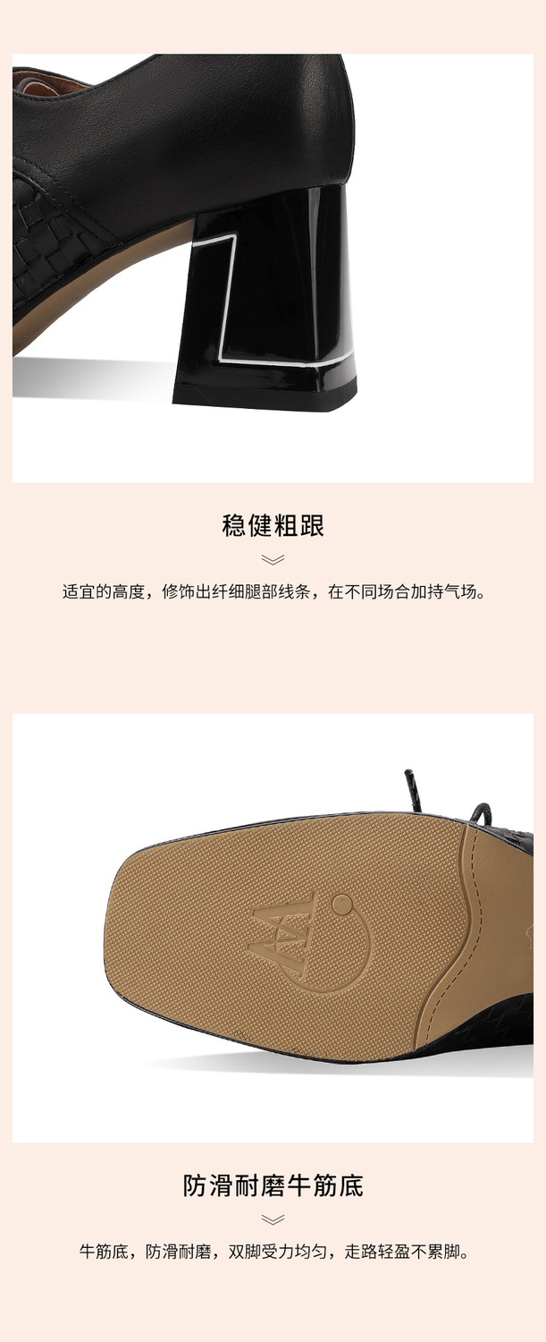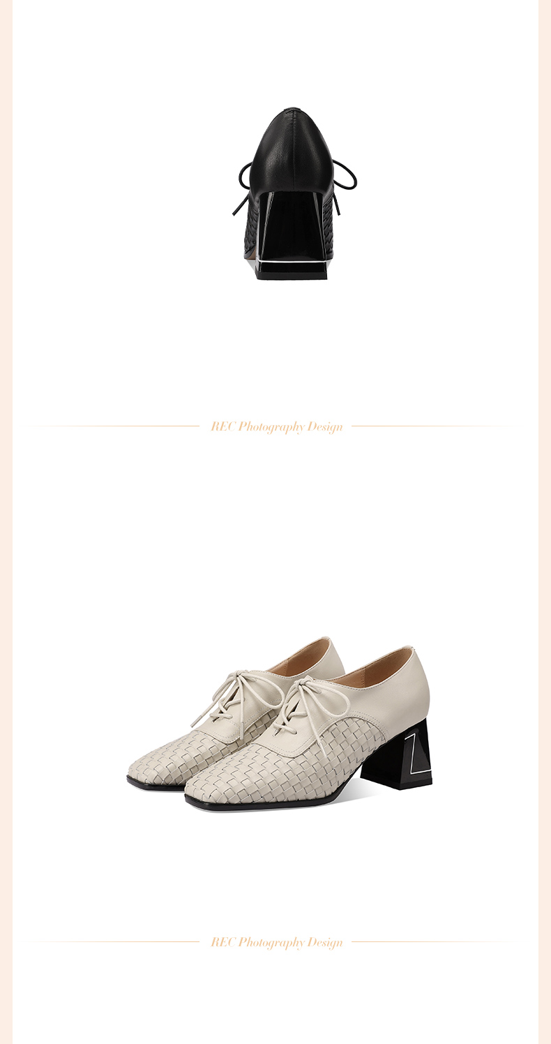 【预售5天】法式复古真皮编织系带小皮鞋女春秋新款粗跟方头深口单鞋高跟女鞋HY&H3721