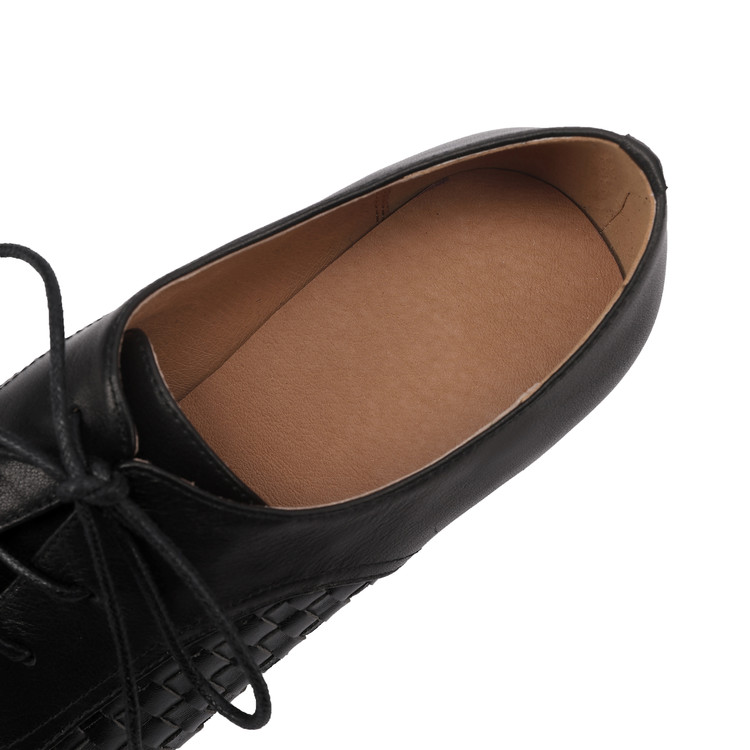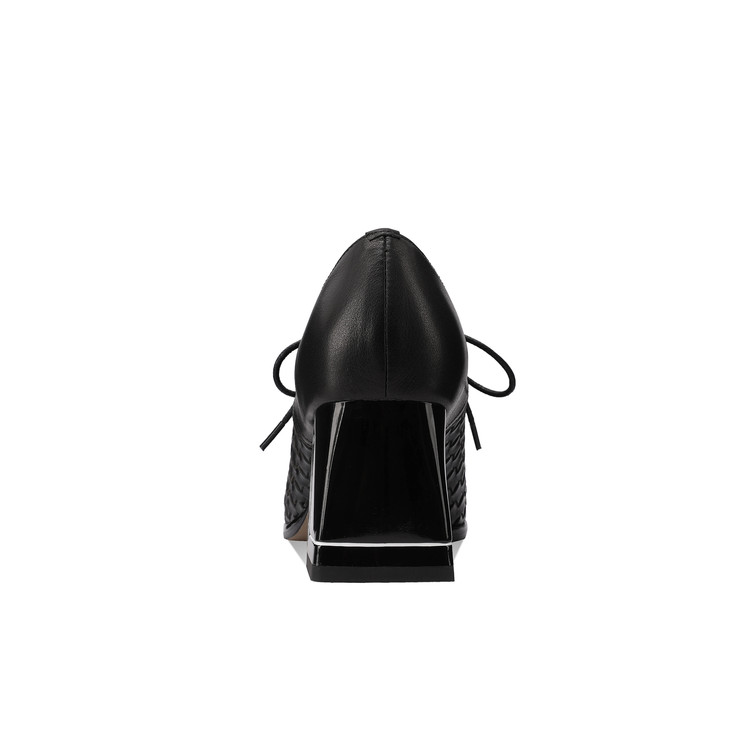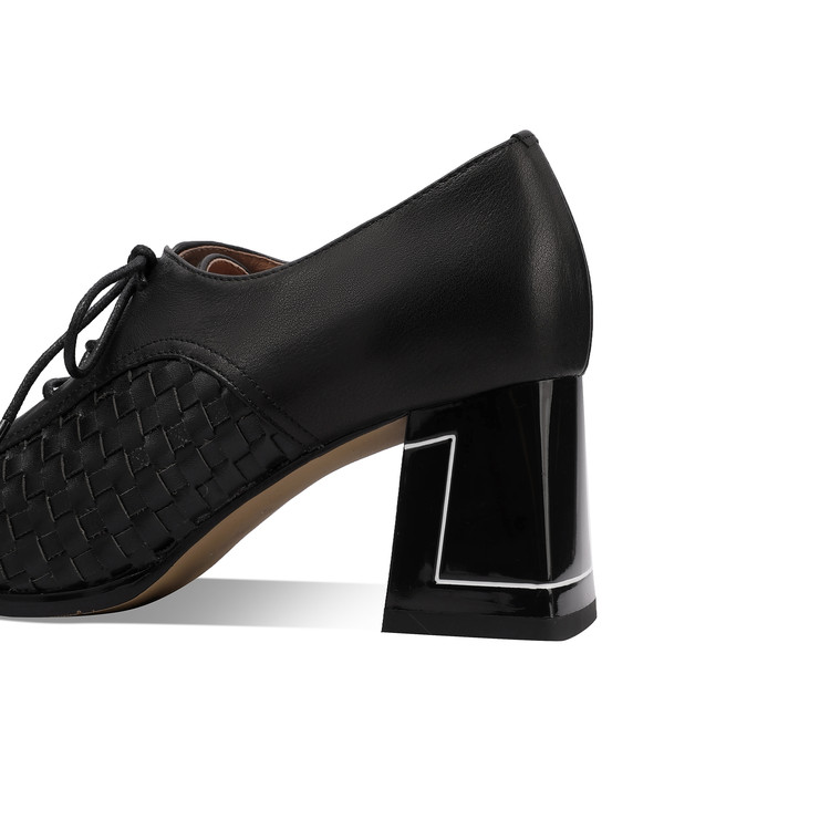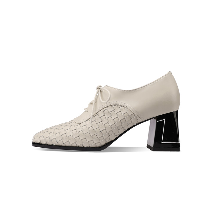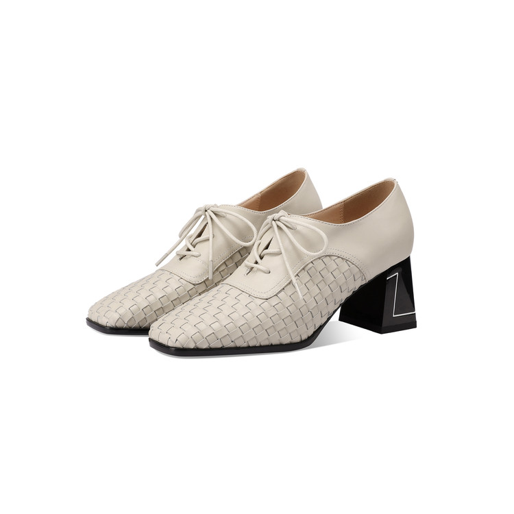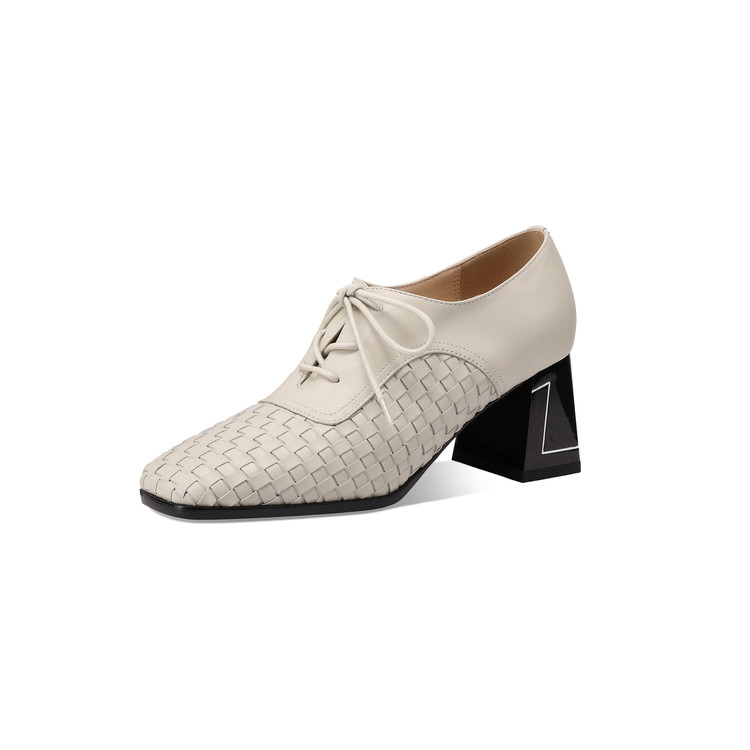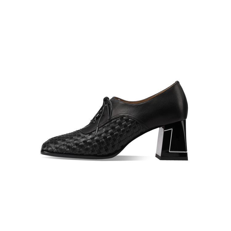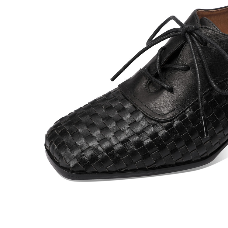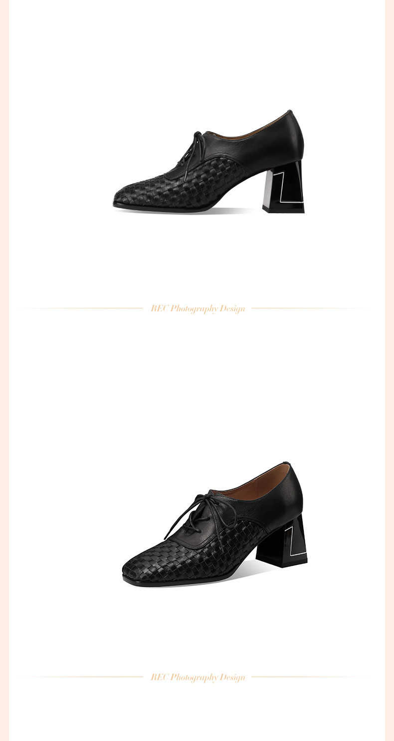【预售5天】法式复古真皮编织系带小皮鞋女春秋新款粗跟方头深口单鞋高跟女鞋HY&H3721