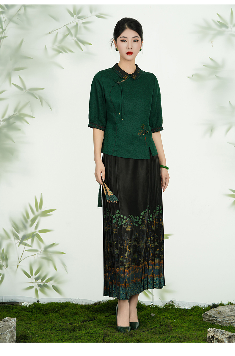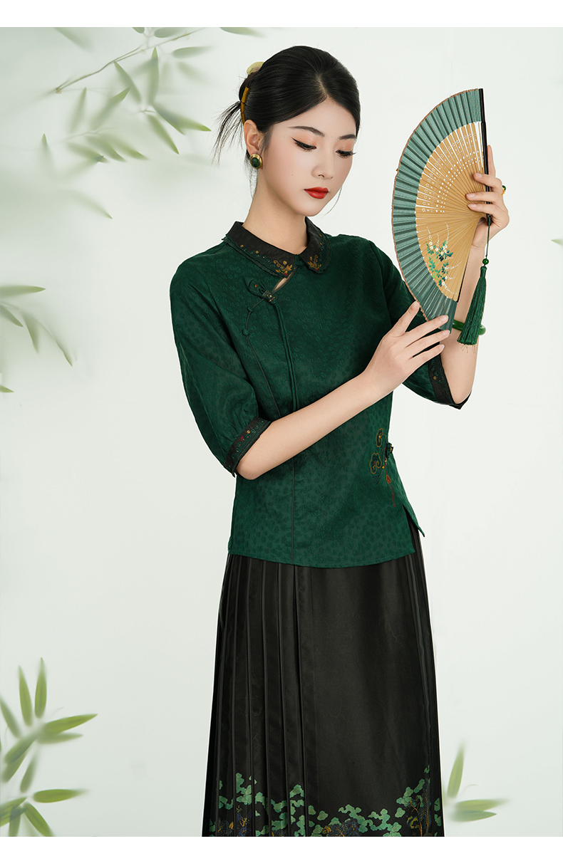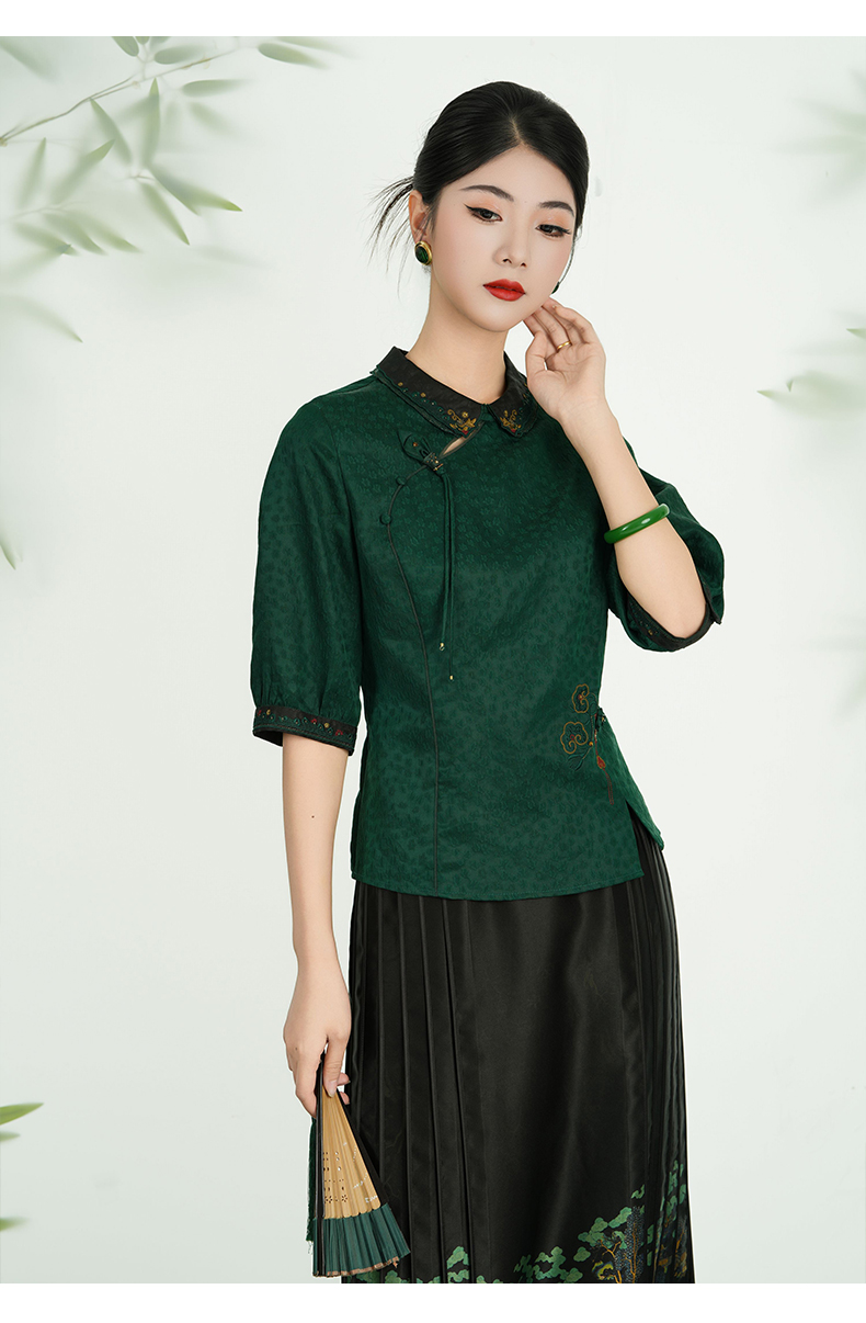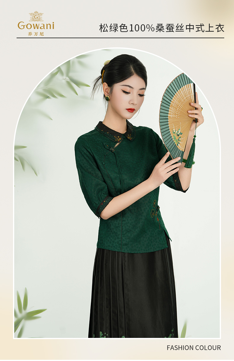 【松绿色】【香云纱】乔万尼新品2025新中式上衣刺绣真丝小衫ED2C503