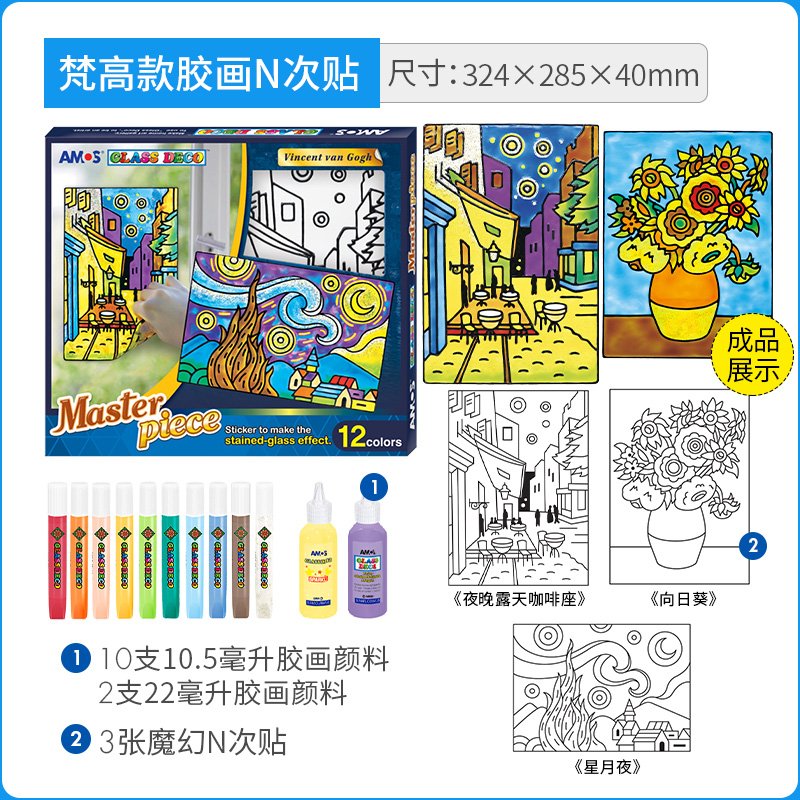 韩国AMOS免烤玻璃胶画DIY儿童益智手工制作