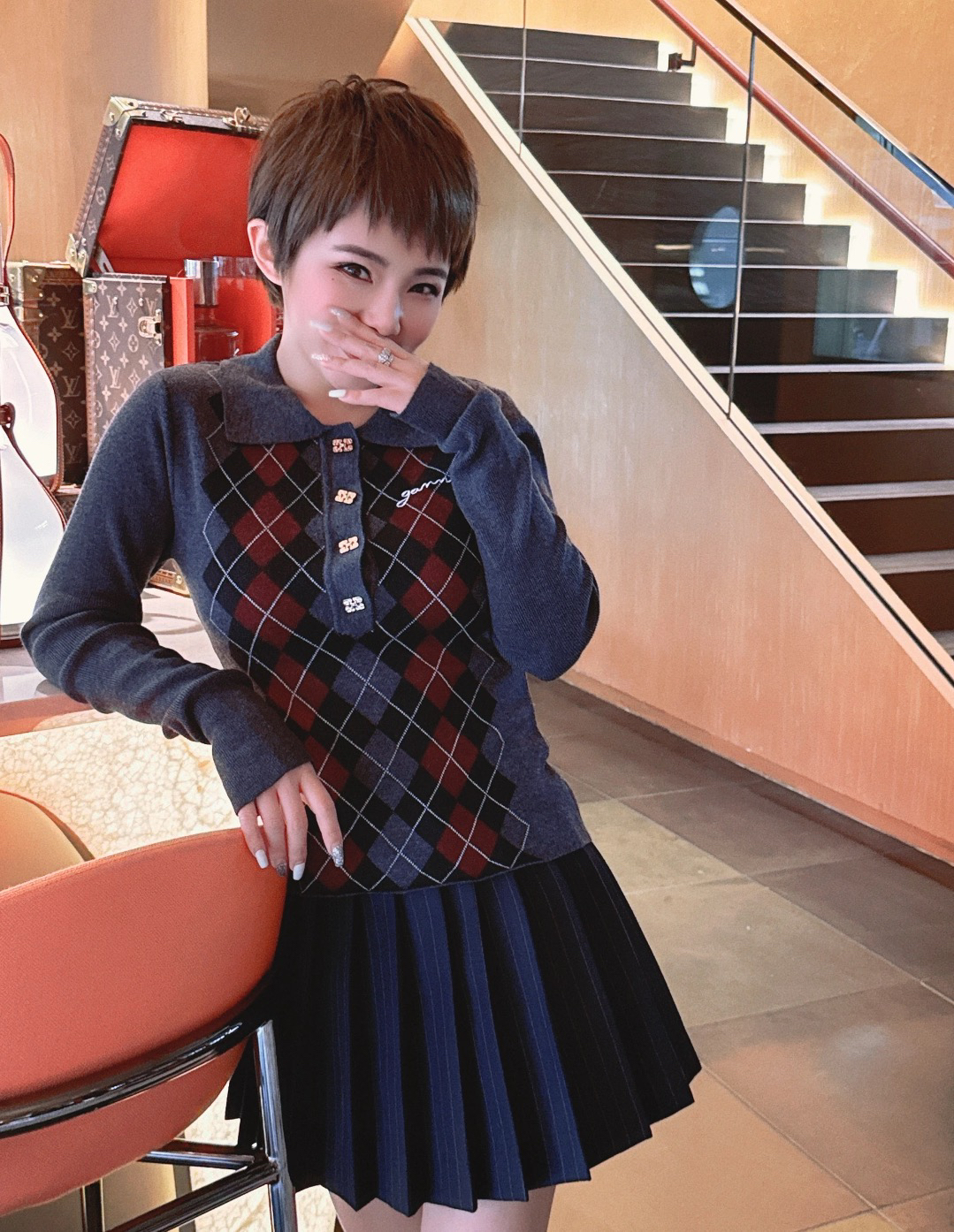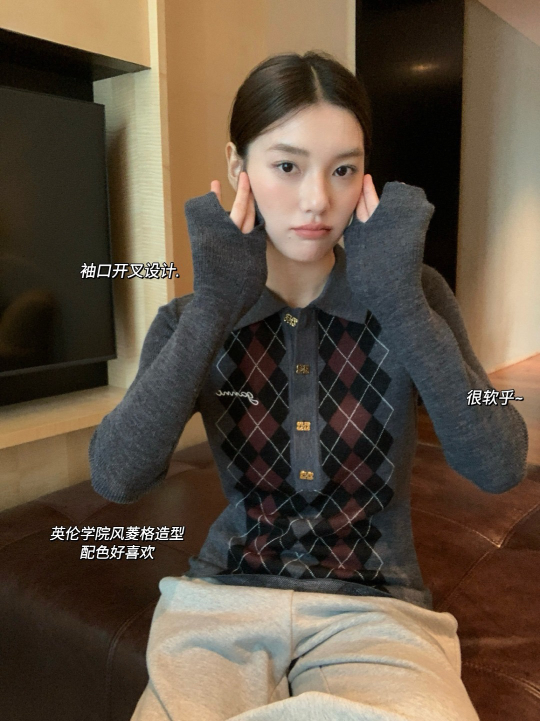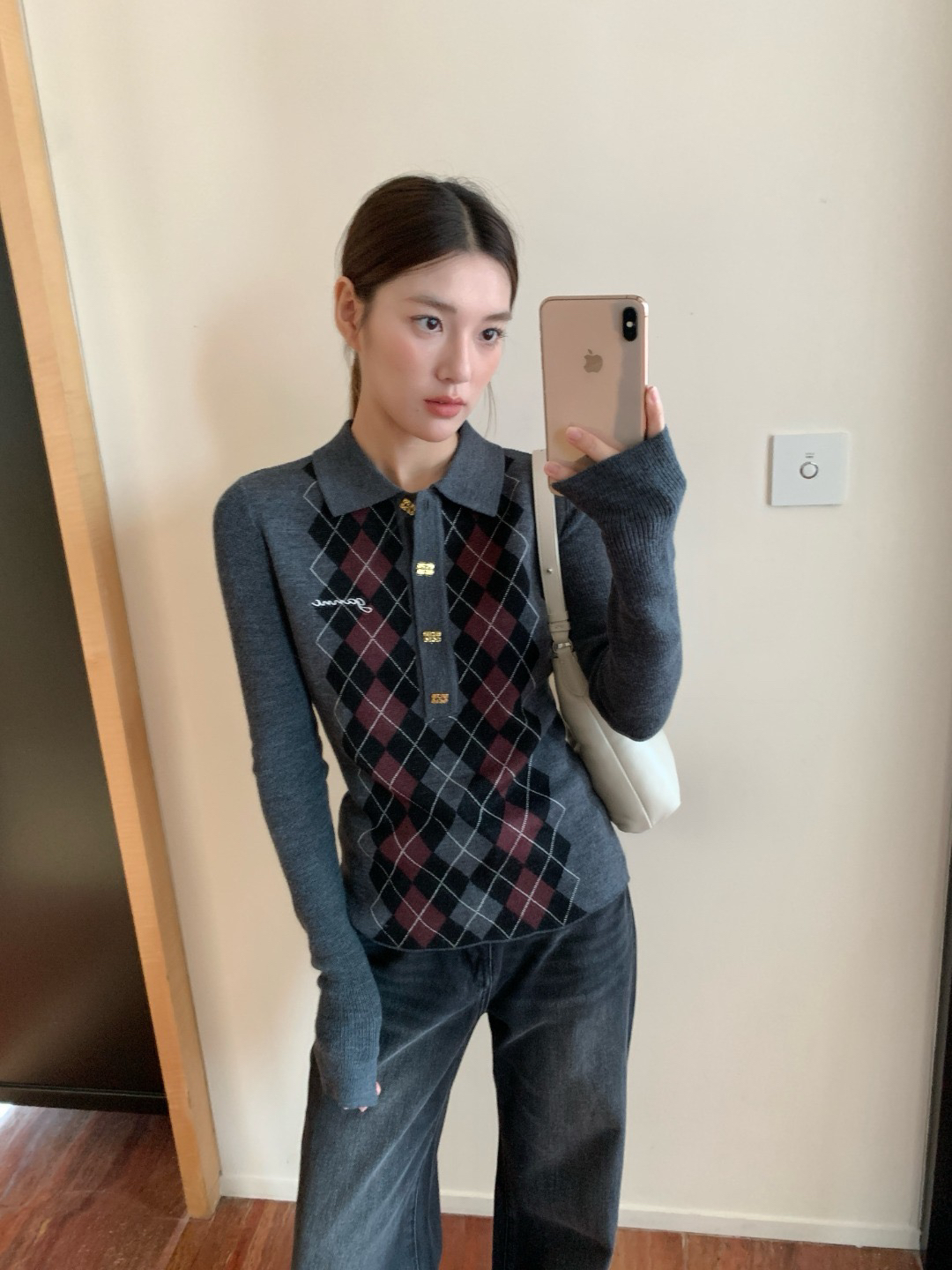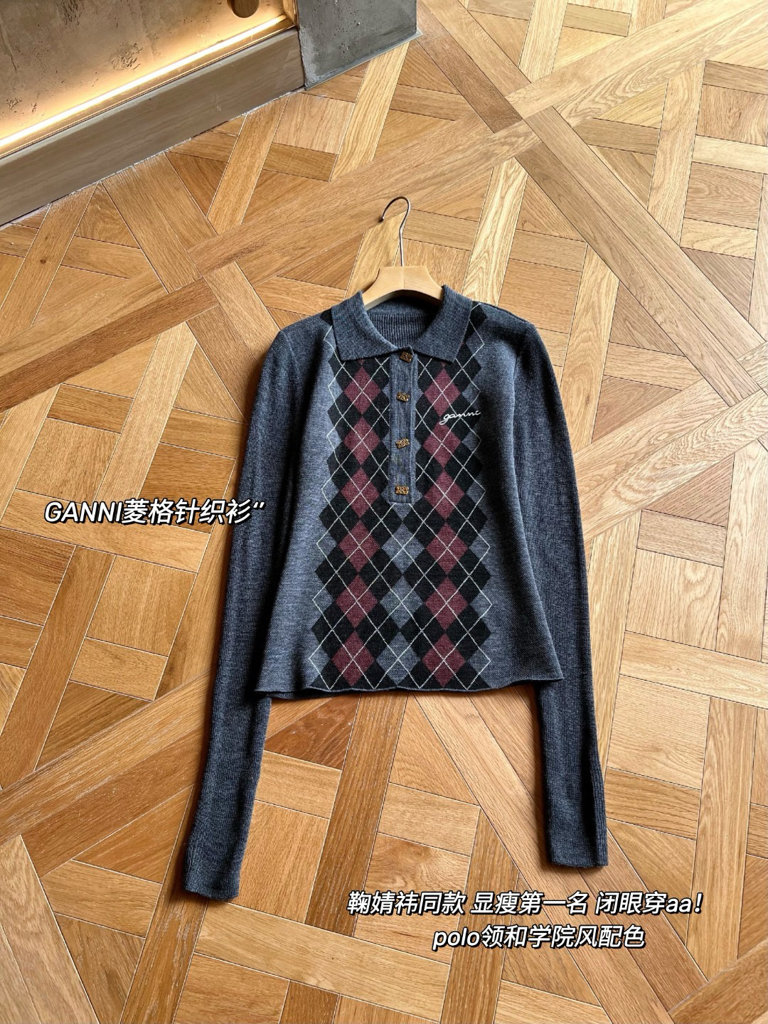 小鞠亲选果然不会错 显瘦第一名!!GANN*I这件菱格polo针织衫 所有人都闭眼冲冲冲!!