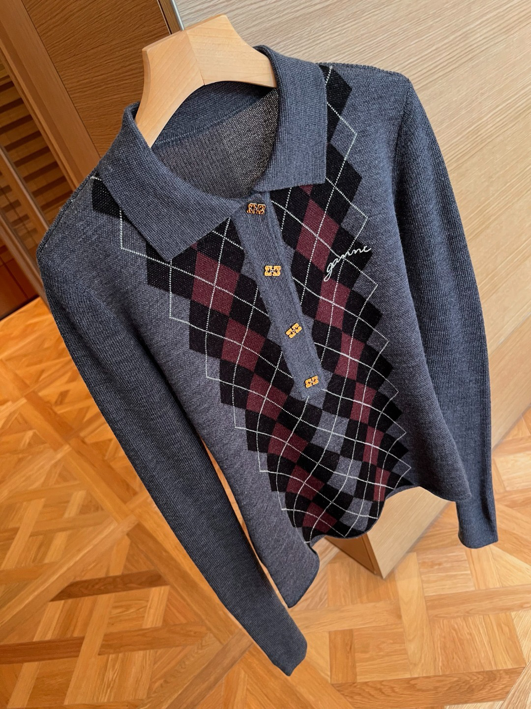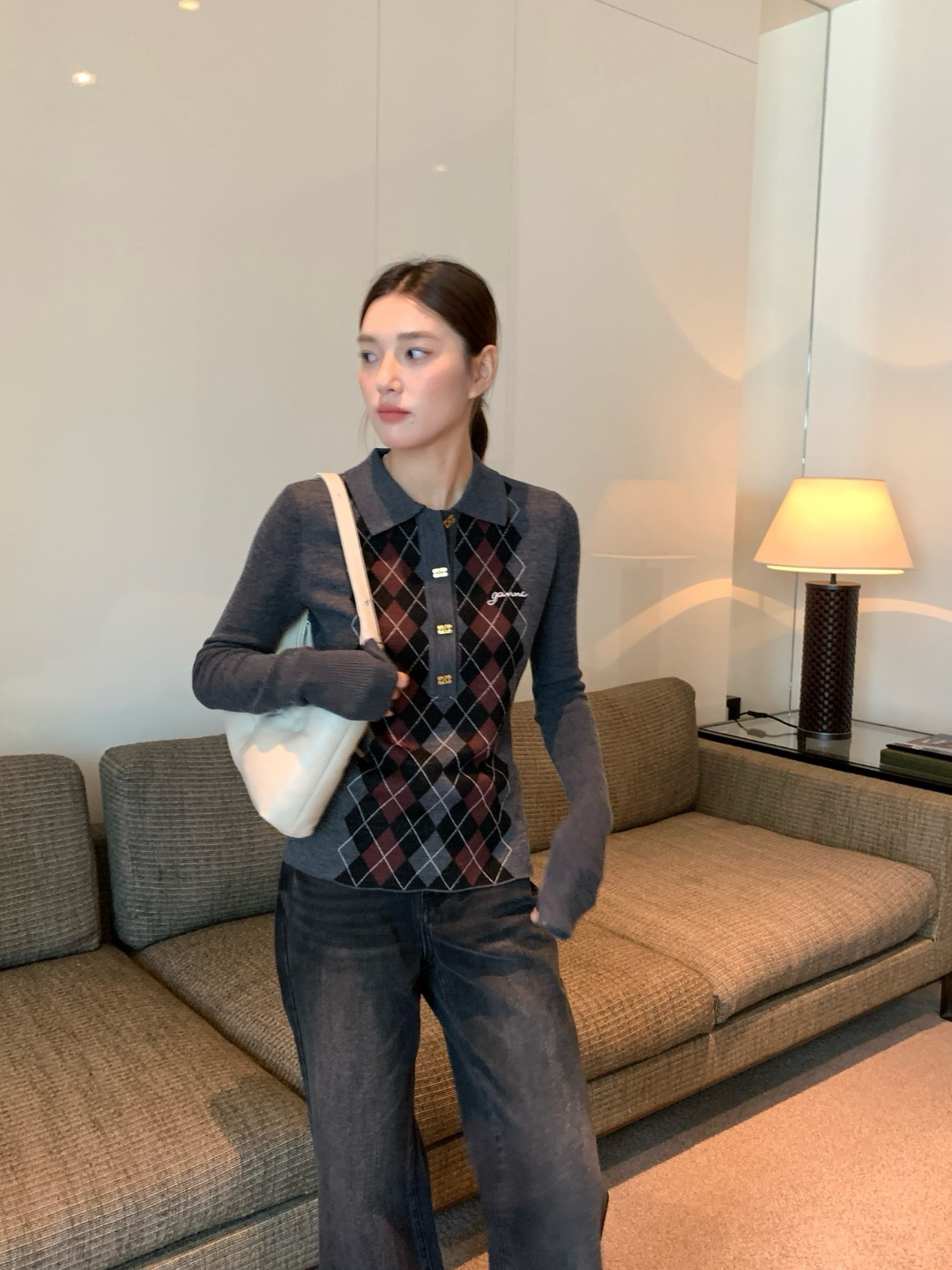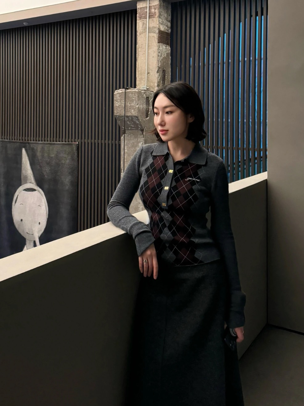 小鞠亲选果然不会错 显瘦第一名!!GANN*I这件菱格polo针织衫 所有人都闭眼冲冲冲!!