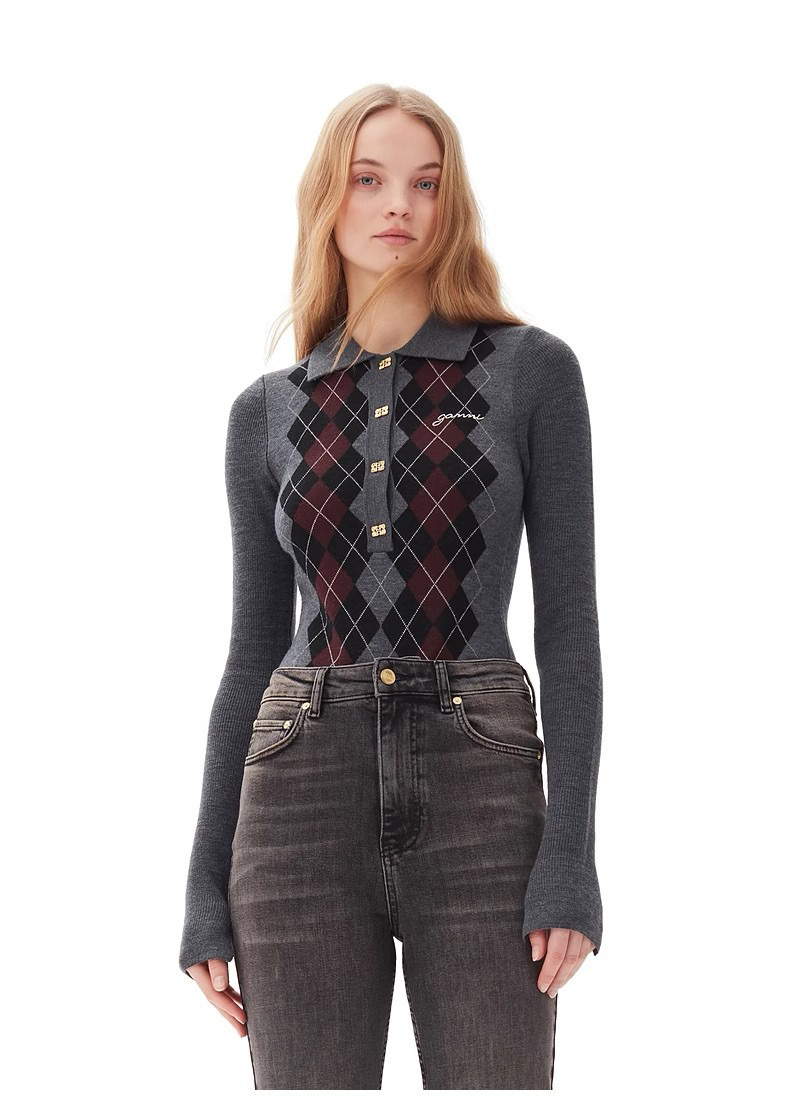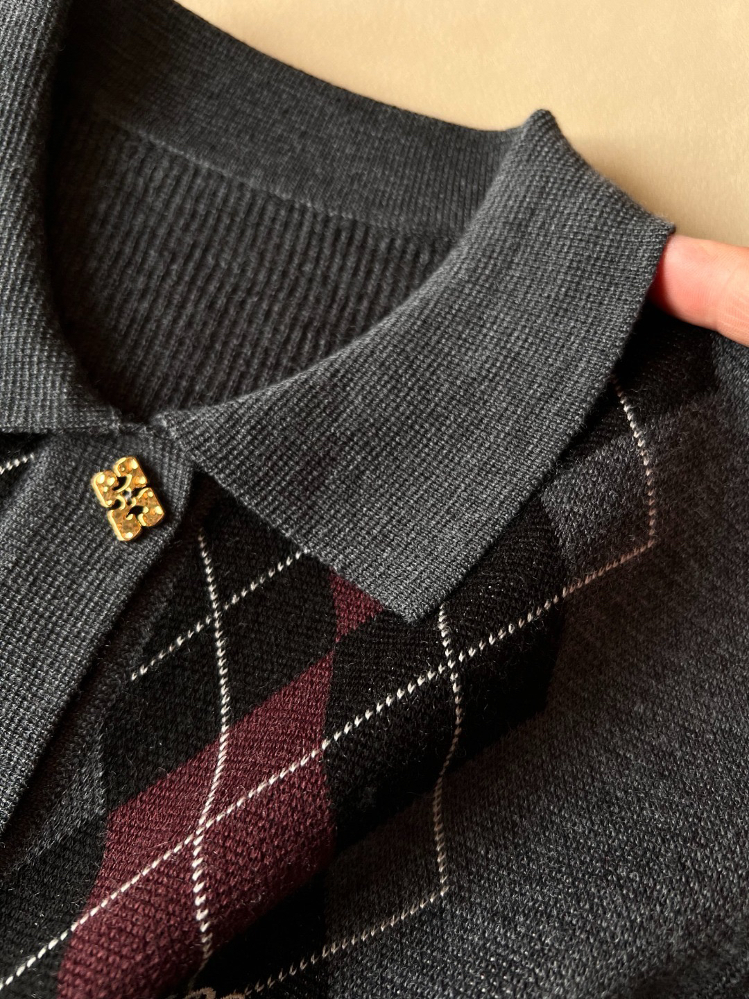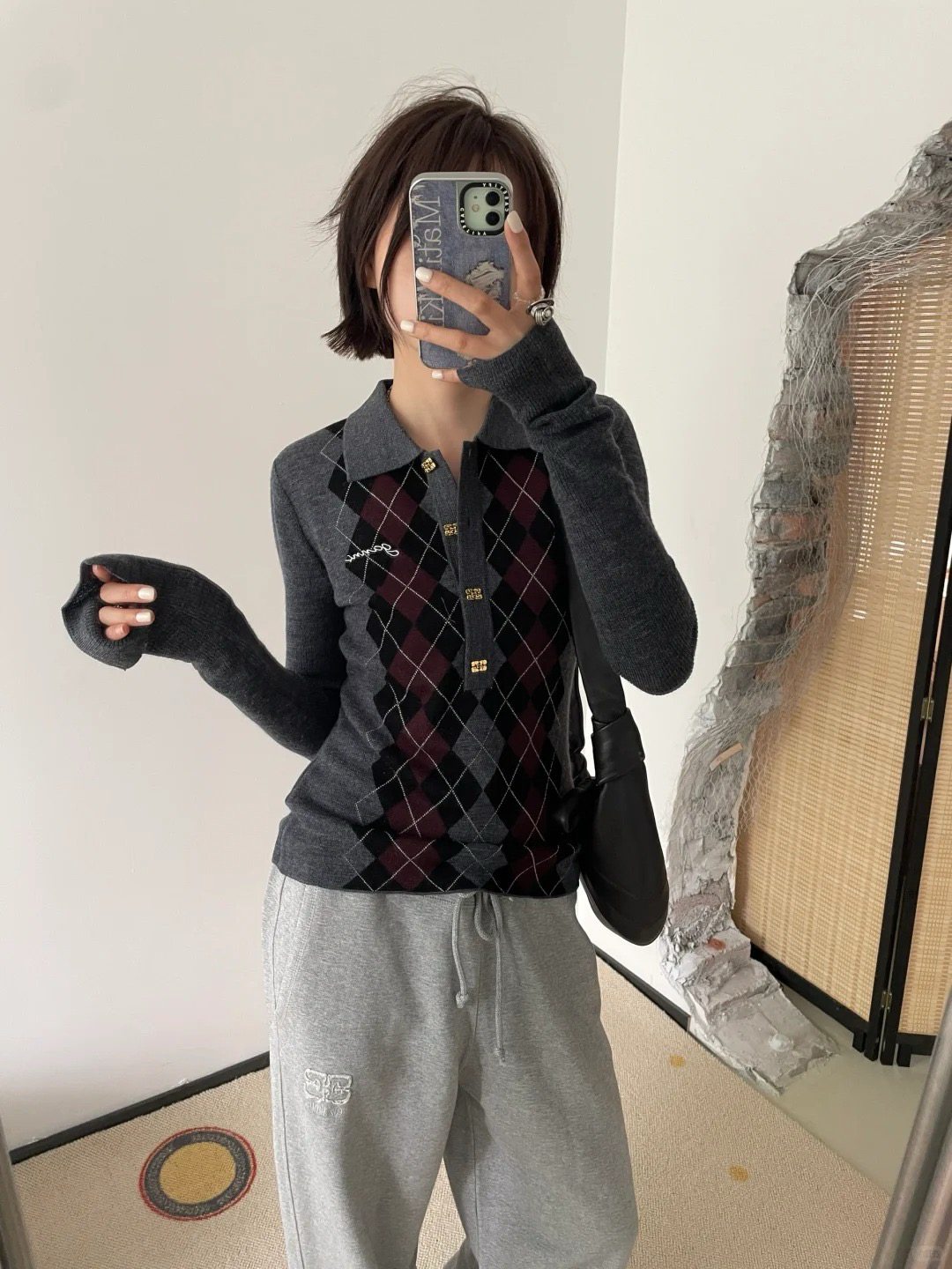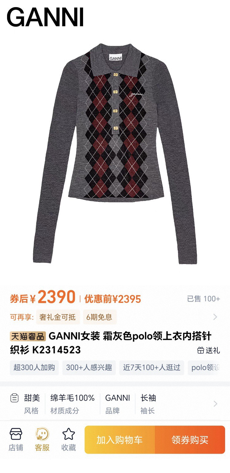 小鞠亲选果然不会错 显瘦第一名!!GANN*I这件菱格polo针织衫 所有人都闭眼冲冲冲!!
