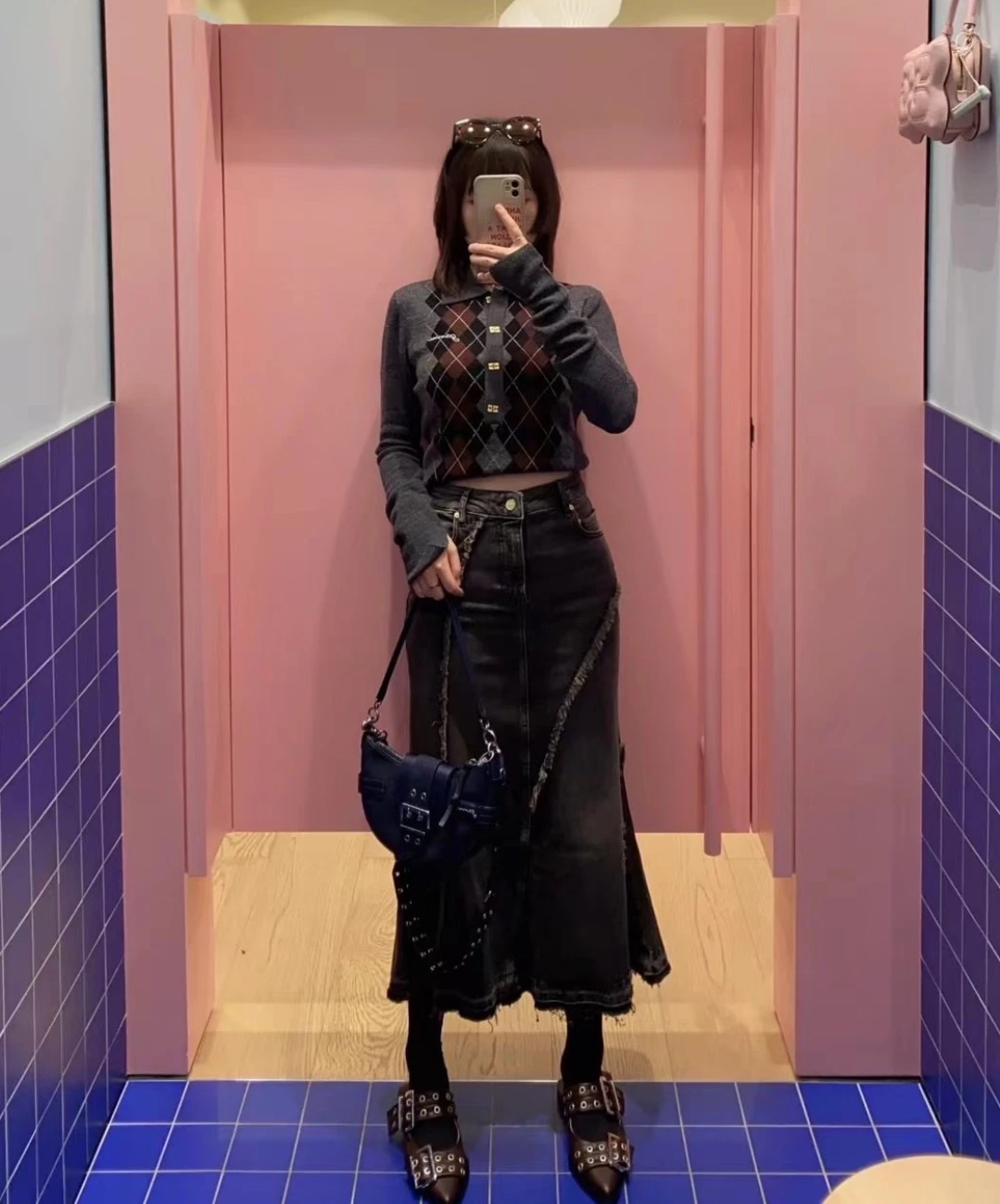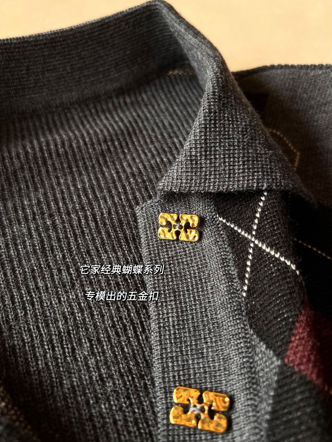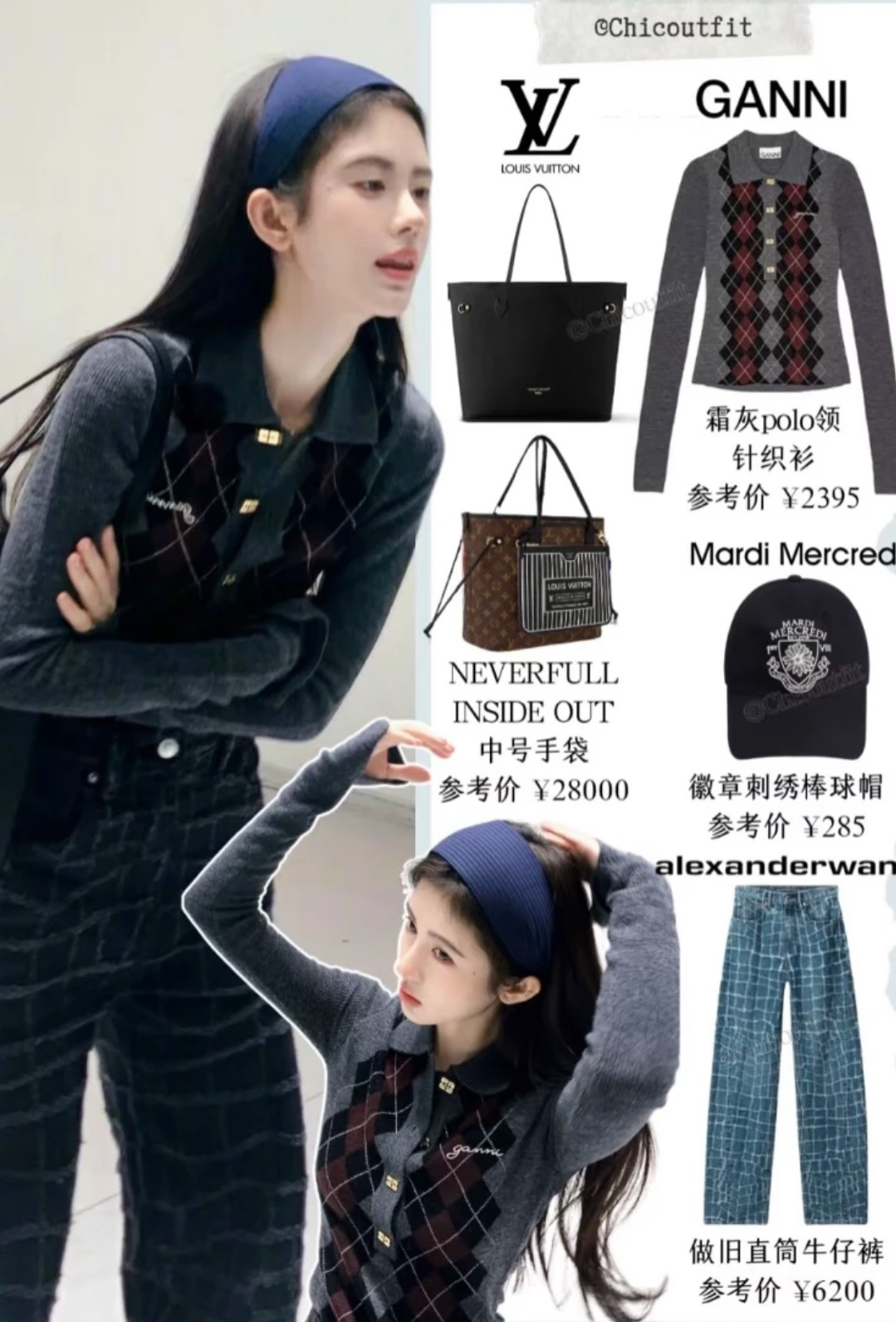 超级好看的霜灰色 搭配暗红菱格的高级配色 很学院风的一件