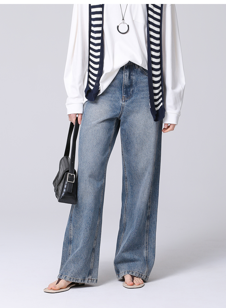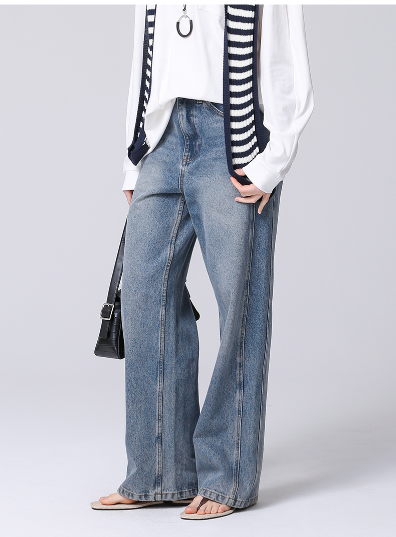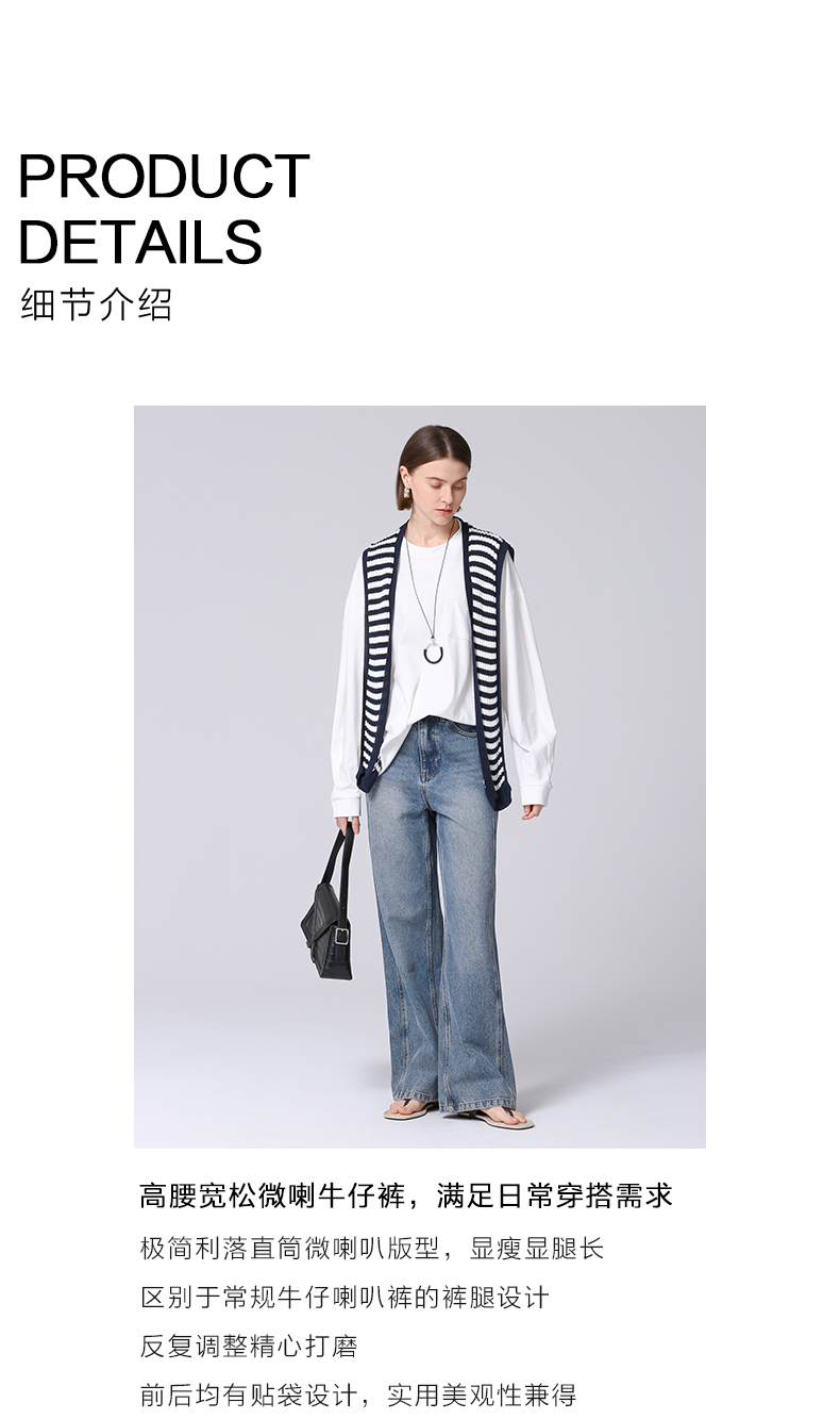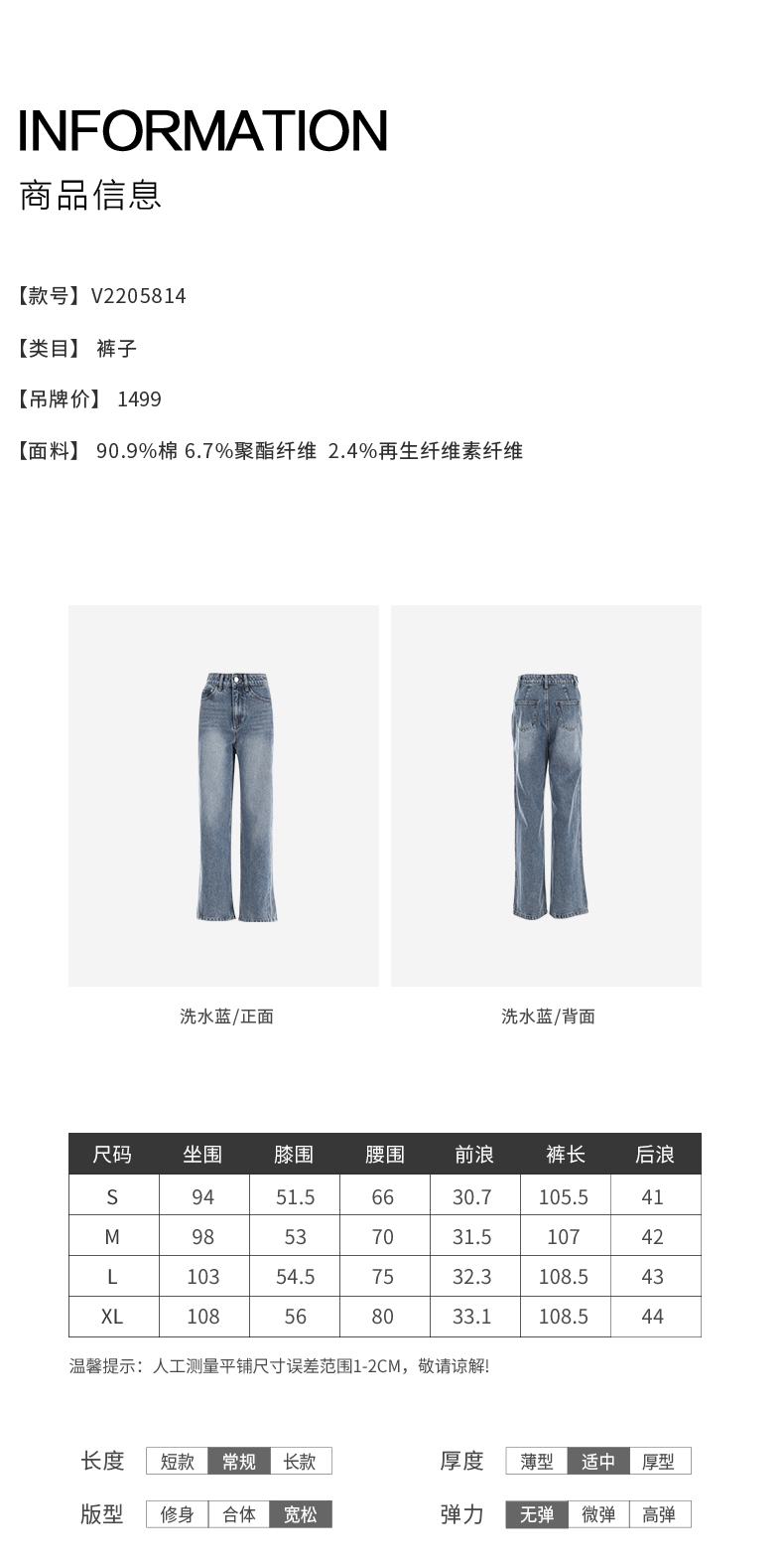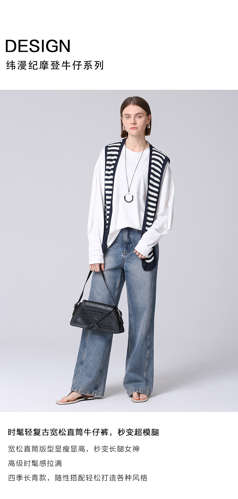 VIMAGE纬漫纪秋季新款高腰直筒休闲时尚显瘦牛仔裤V2205814