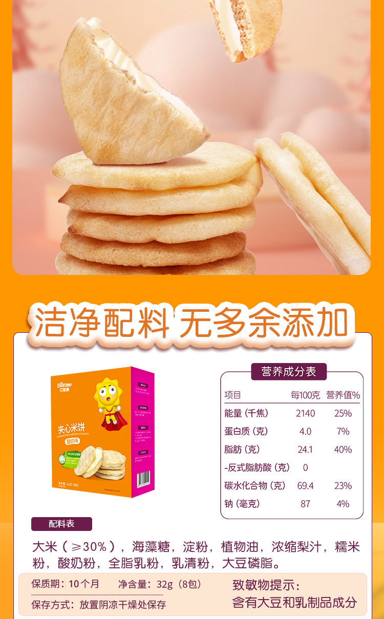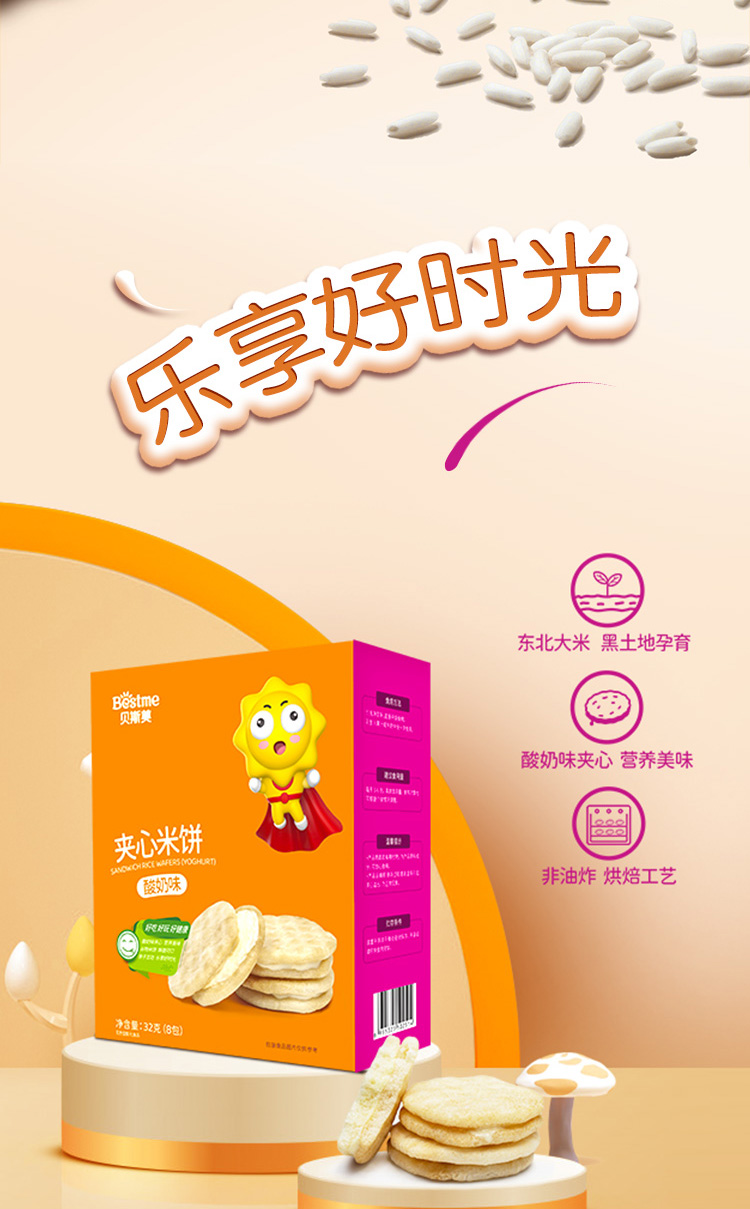 贝斯美婴幼儿有机米饼儿童酸奶味夹心米饼32g