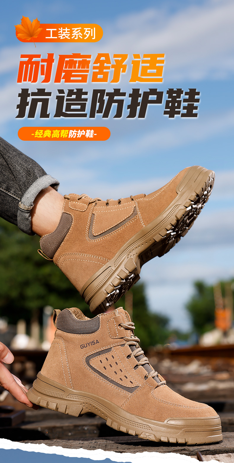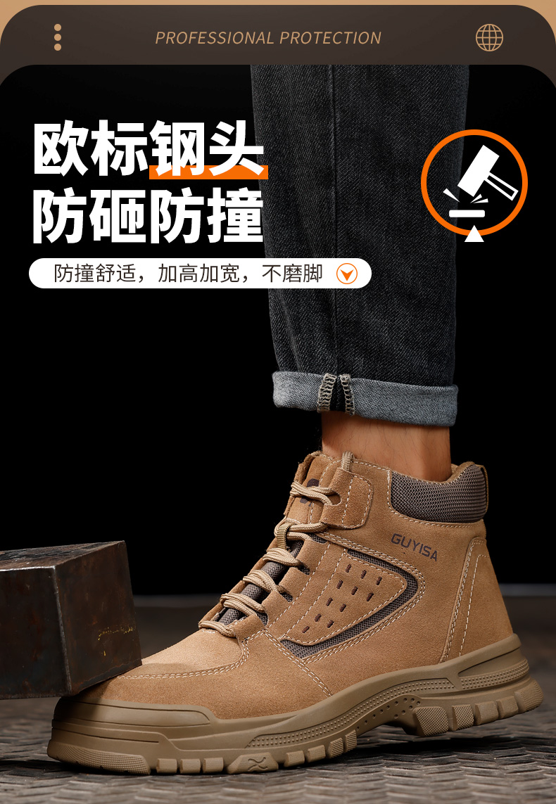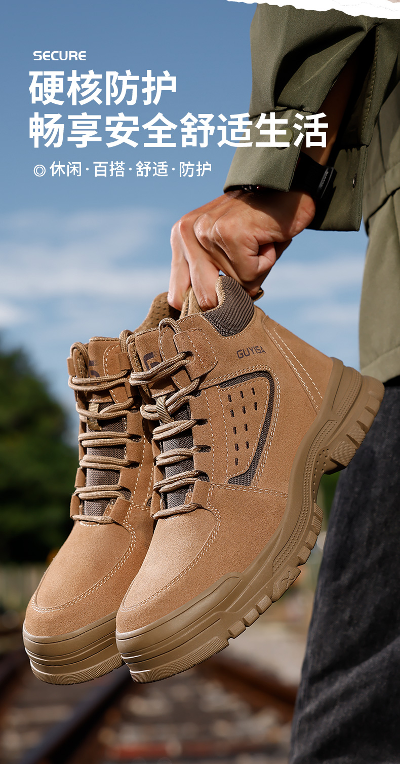 劳保鞋男防砸防刺反绒皮高帮焊工防烫钢包头橡胶底工作鞋