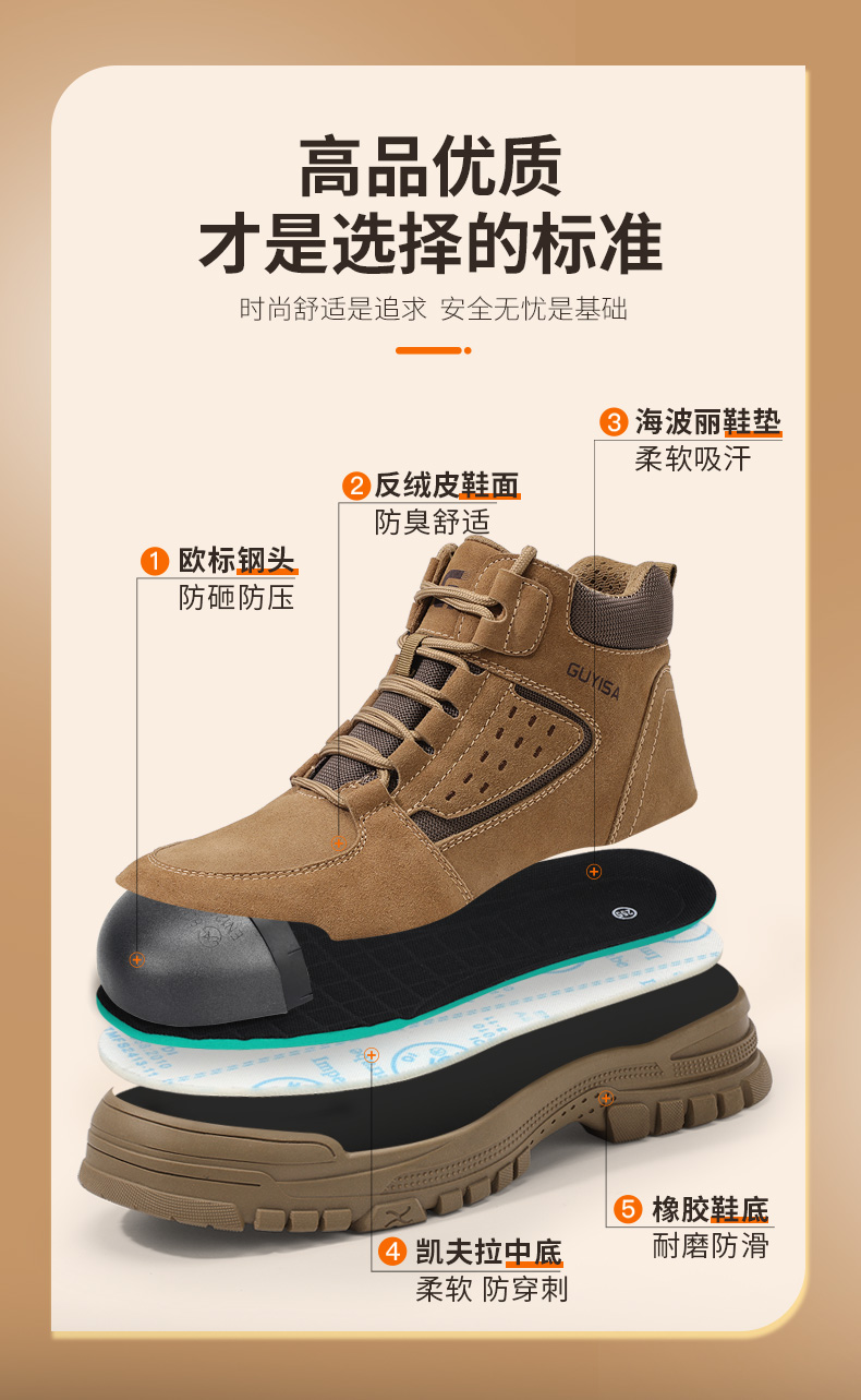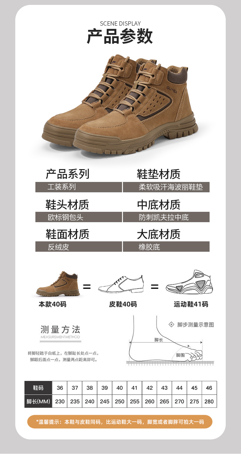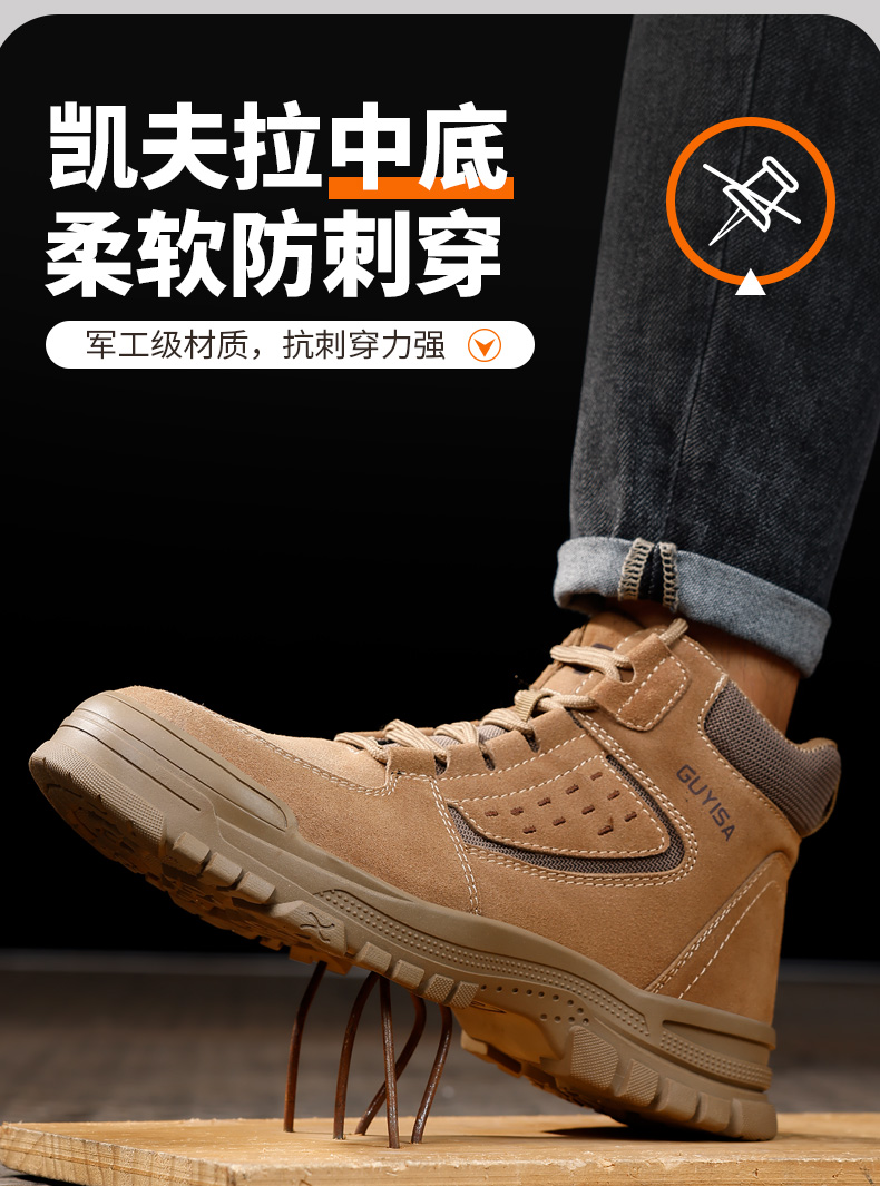 劳保鞋男防砸防刺反绒皮高帮焊工防烫钢包头橡胶底工作鞋