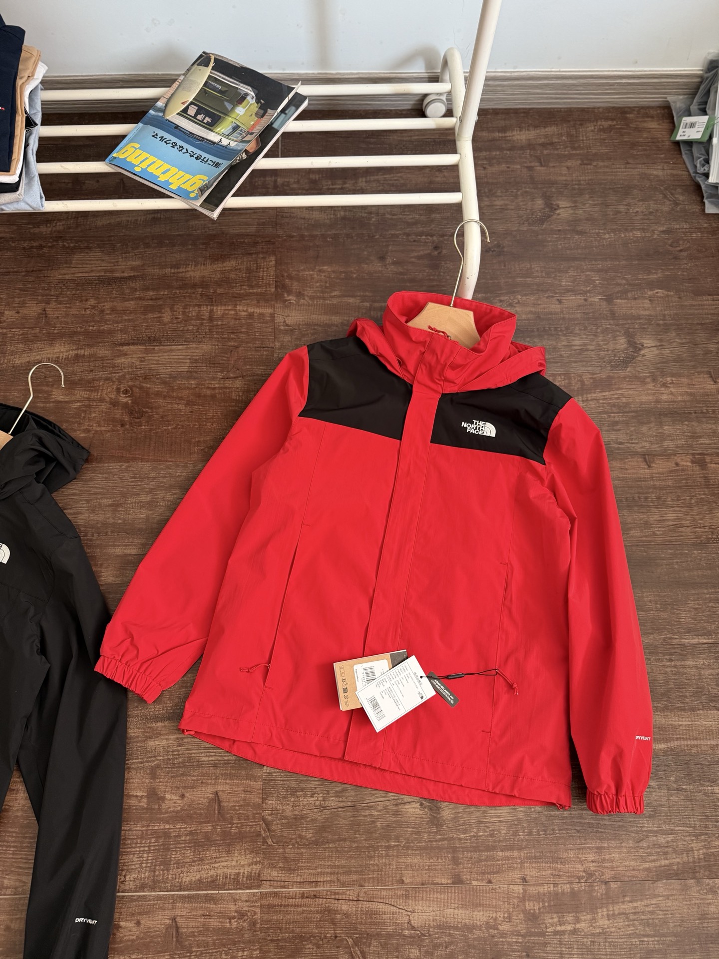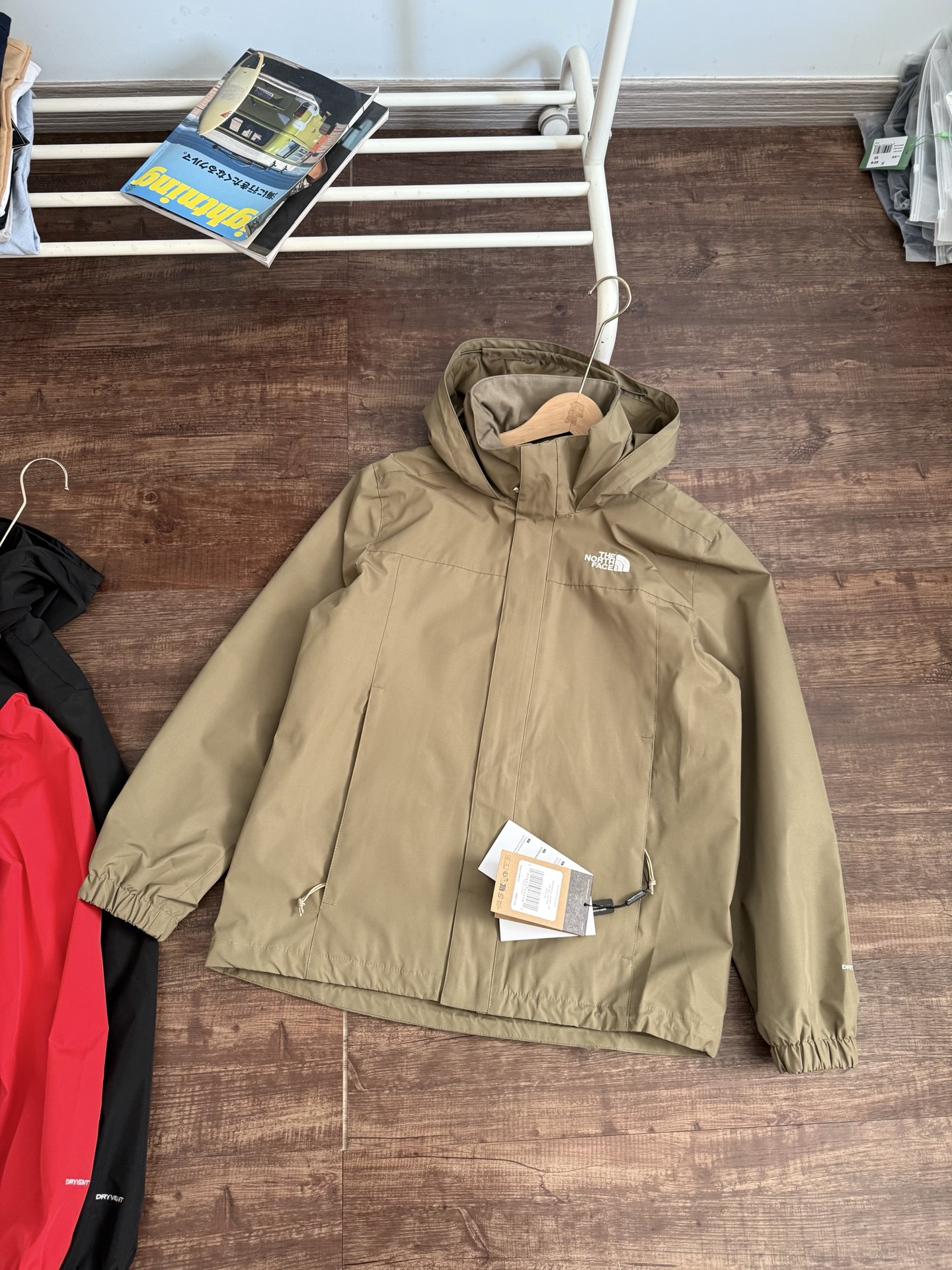 两穿夹克!连帽设计可收纳!整体附膜工艺,可保持风帽和整体版型的挺括感!有型不软趴!防风防水户外轻量化面料,春天刚刚好!