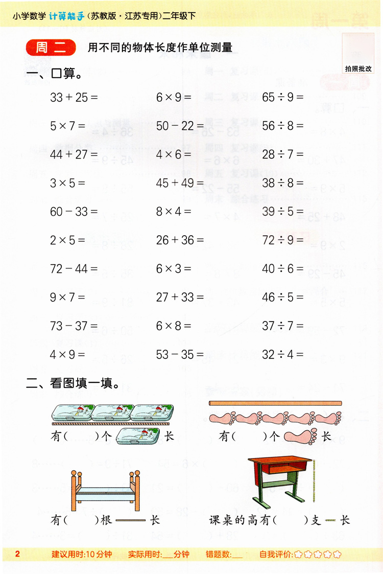 2026年春小学数学计算能手 二年级下册 苏教版2下 口算估算笔算 江苏专用 含答案 朱海峰主编 通城学典 浙江教育出版社
