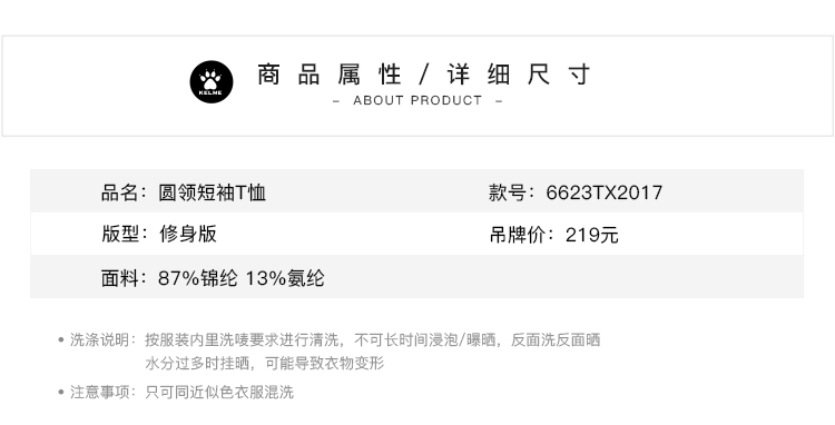 卡尔美女士圆领短袖T恤6623TX2017
