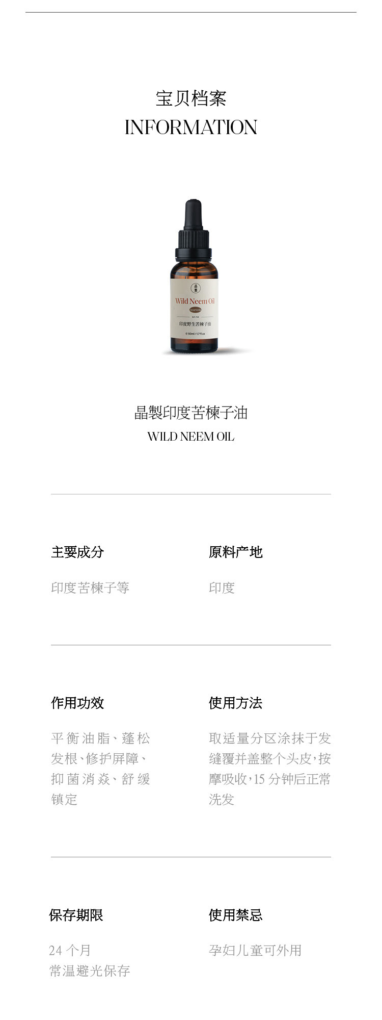 晶製印度苦楝子油50ml天然纯植物护发养护头皮