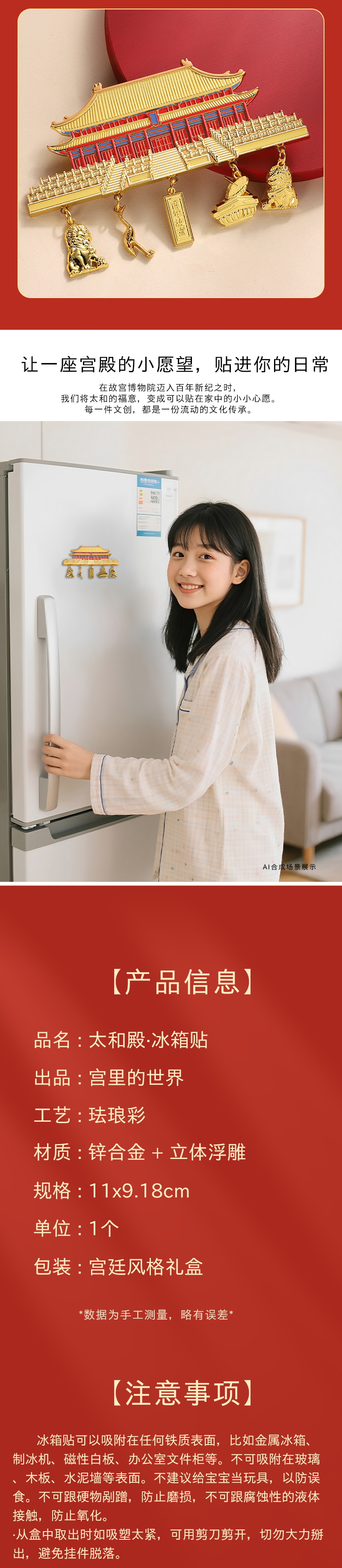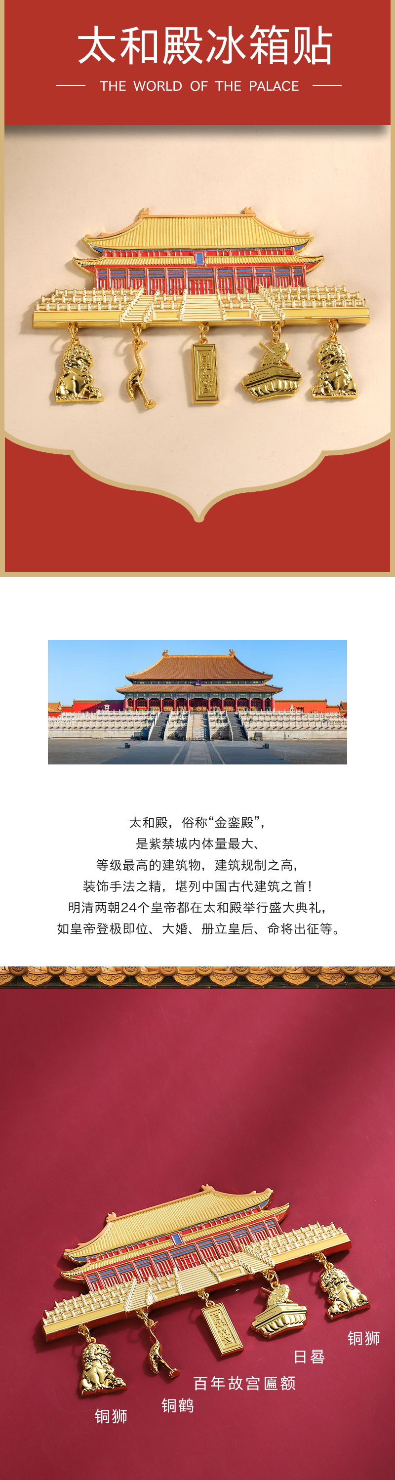 【故宫百周年冰箱贴】纪念限定款故宫太和殿挂坠金属冰箱贴