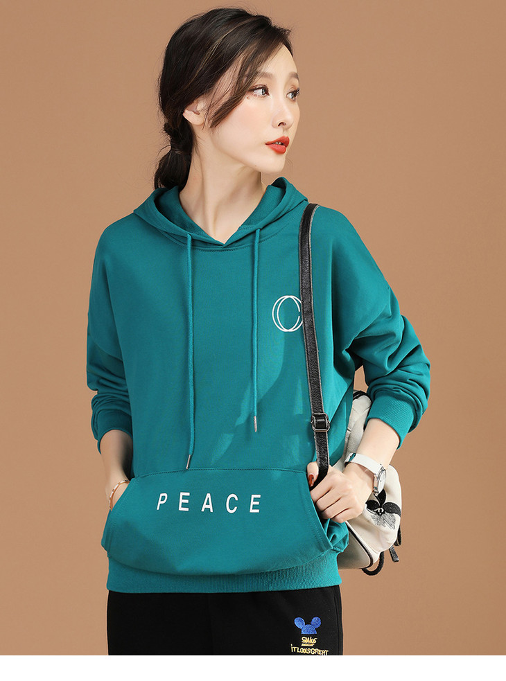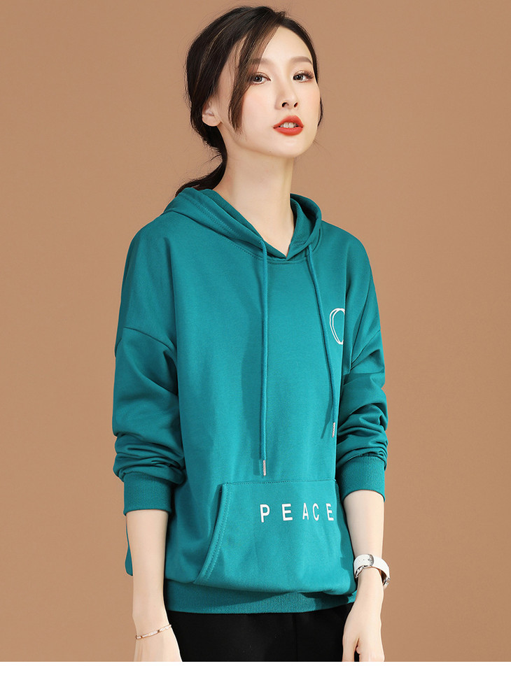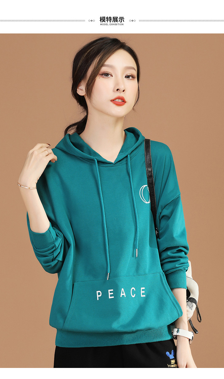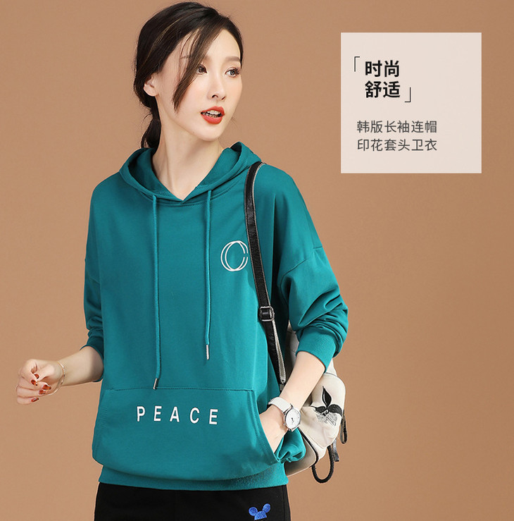 HC D8575休闲连帽套头长袖女士卫衣2021新款字母印花显瘦上衣
