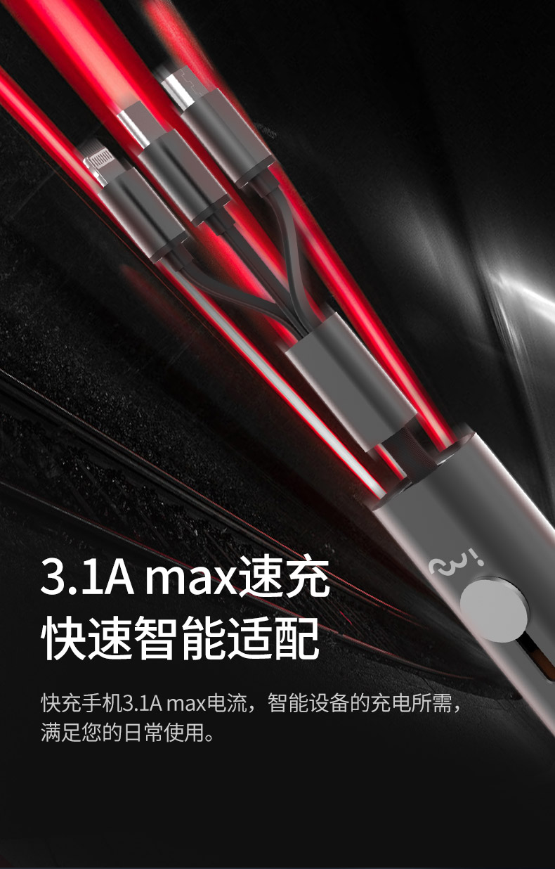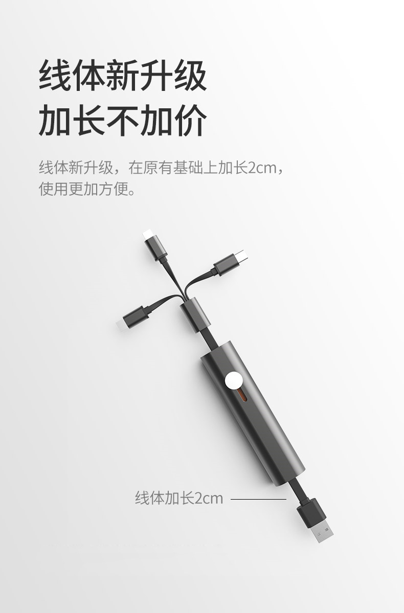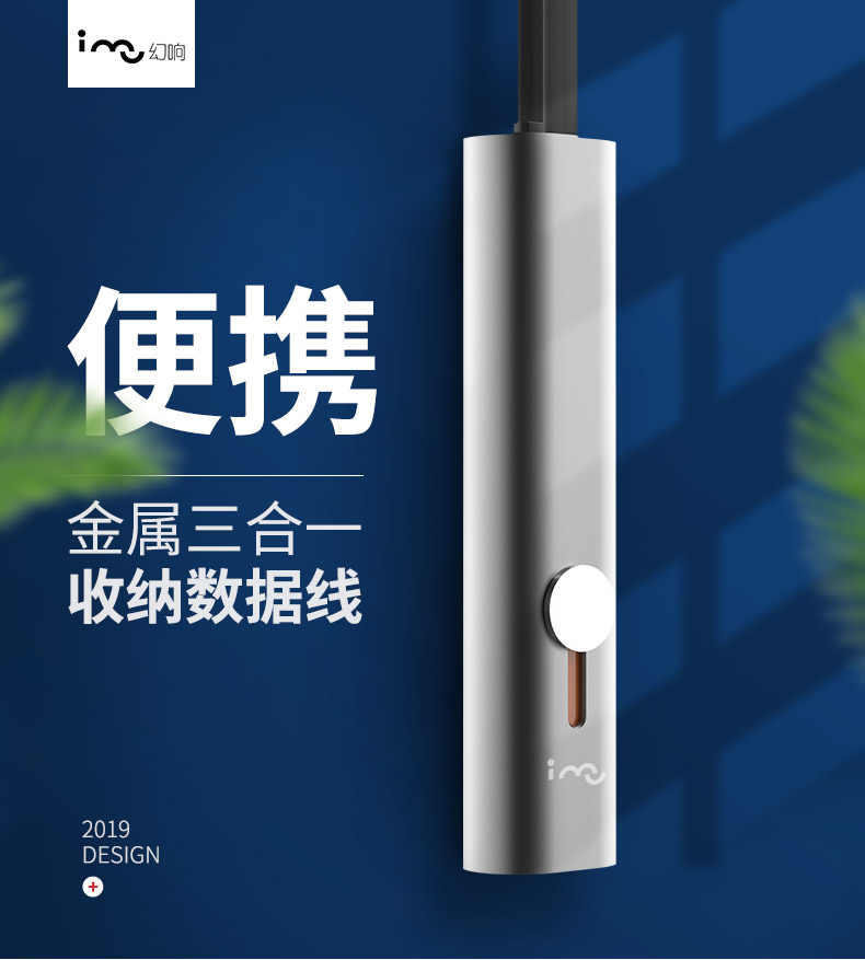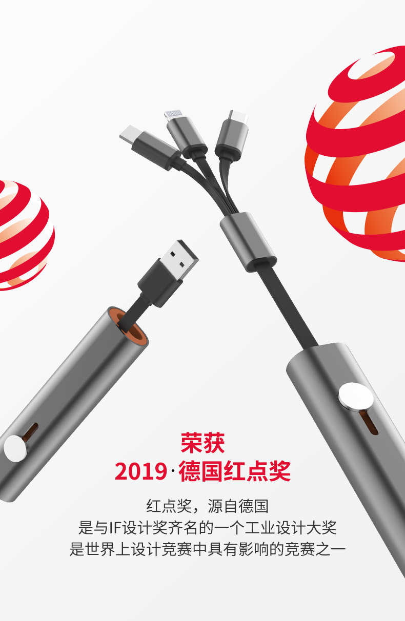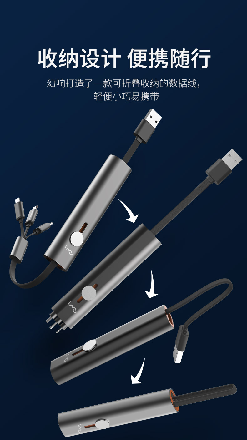 【德国红点设计大奖】i-mu幻响金属伸缩一拖三数数据线 超便携 随身携带 苹果华为收纳typec快充电线三合一充电线