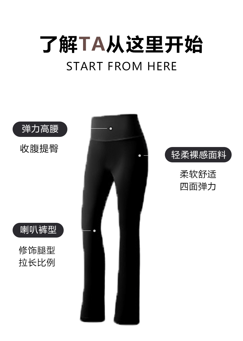 【3~5天发货】跃牌【美度空间】系列 莱卡裸感无尺码微喇裤高腰提臀无尴尬线瑜伽裤ADCK1524