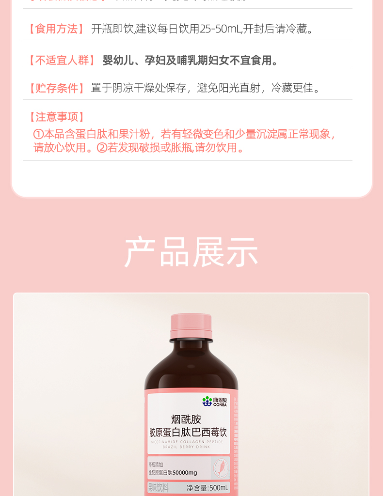 专属#189/4瓶 康恩贝烟酰胺胶原蛋白肽液态饮小分子肽口服液黄气