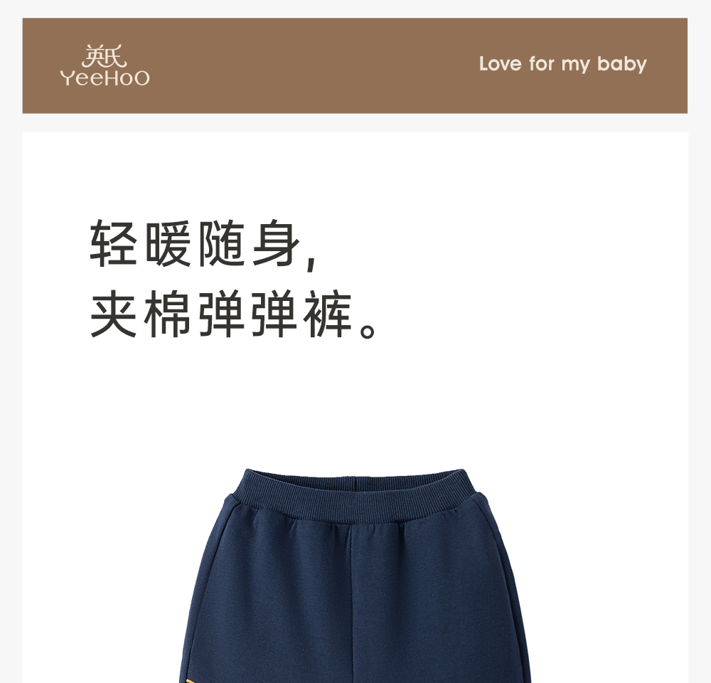 【商场同款】英氏男宝裤子秋冬款夹棉保暖休闲裤外出防钻风