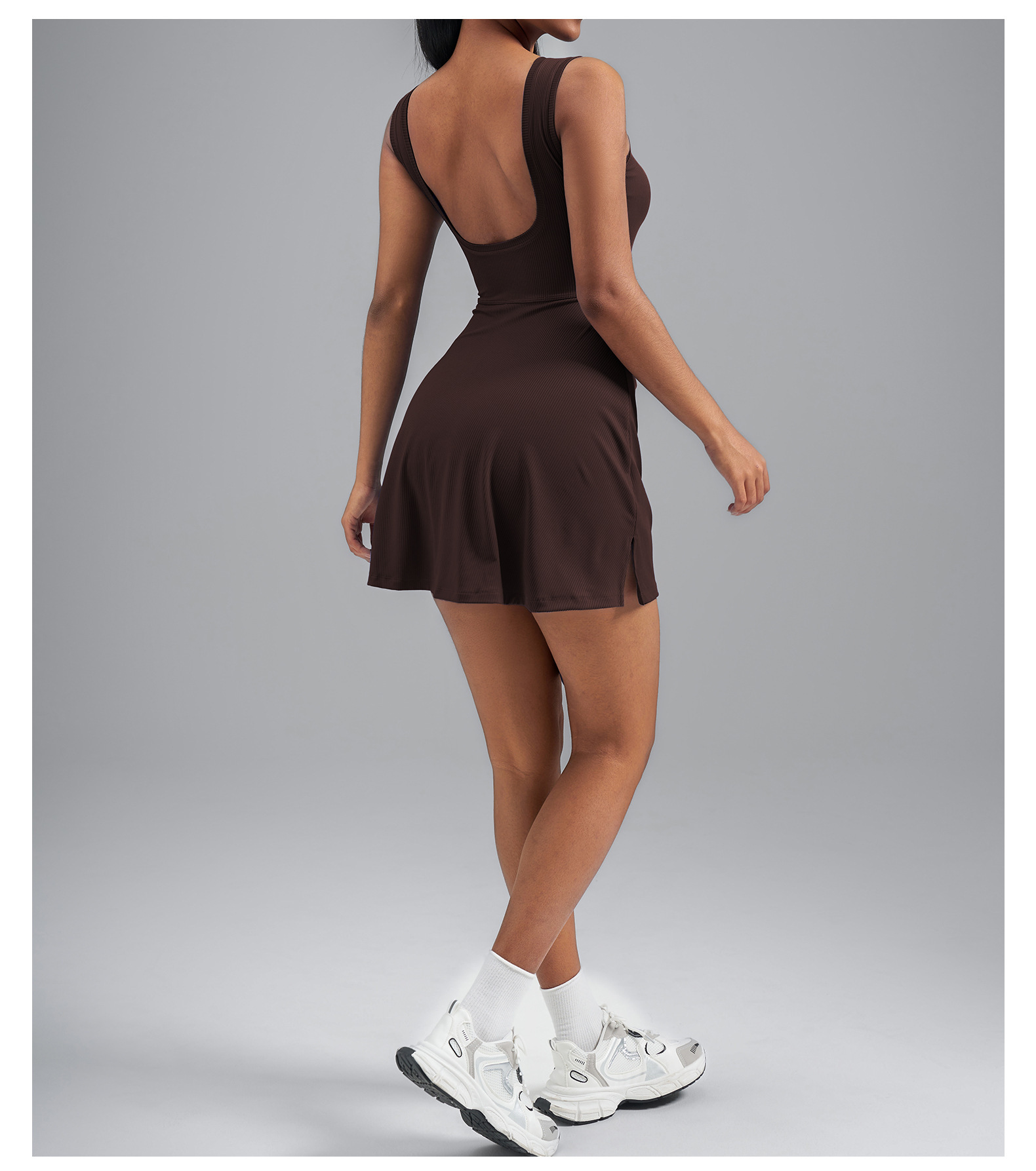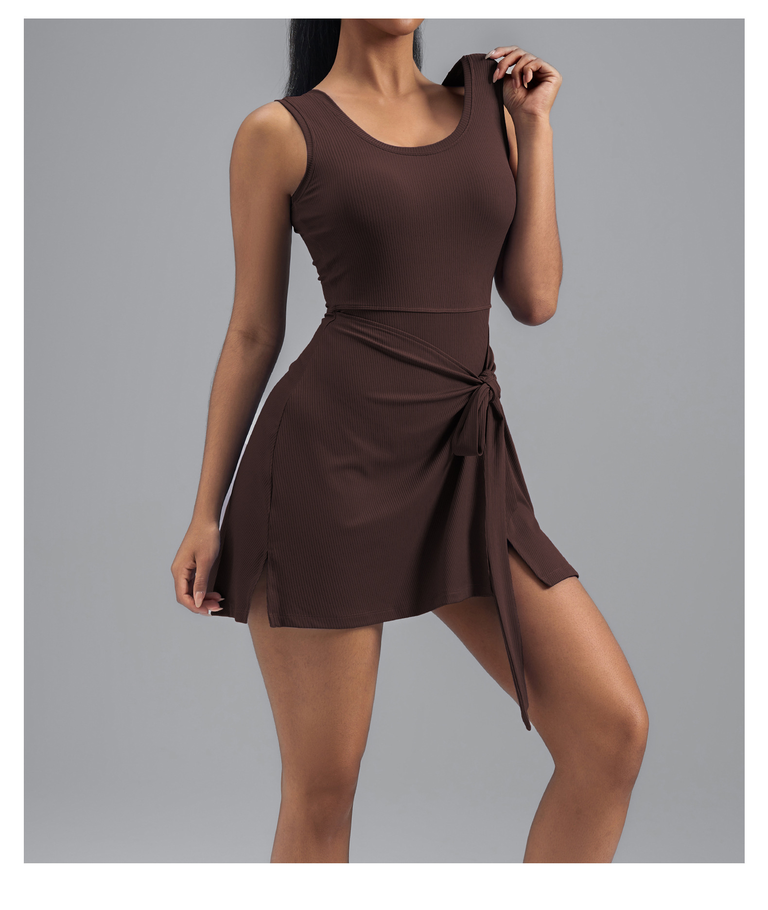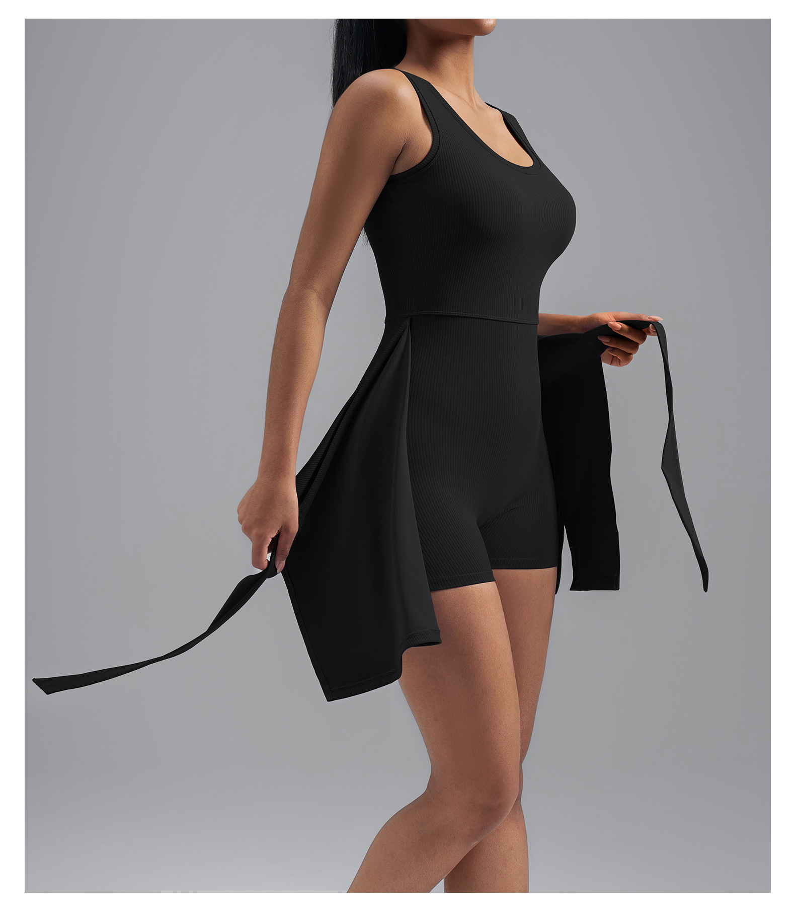 跃牌【瑜堂系列】爆款条纹瑜伽裙欧码假两件防走光紧身运动连衣裙女OMTQ001