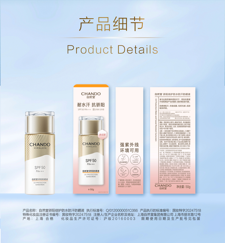 【春日防晒季】自然堂骄阳倍护防水防汗防晒液50g