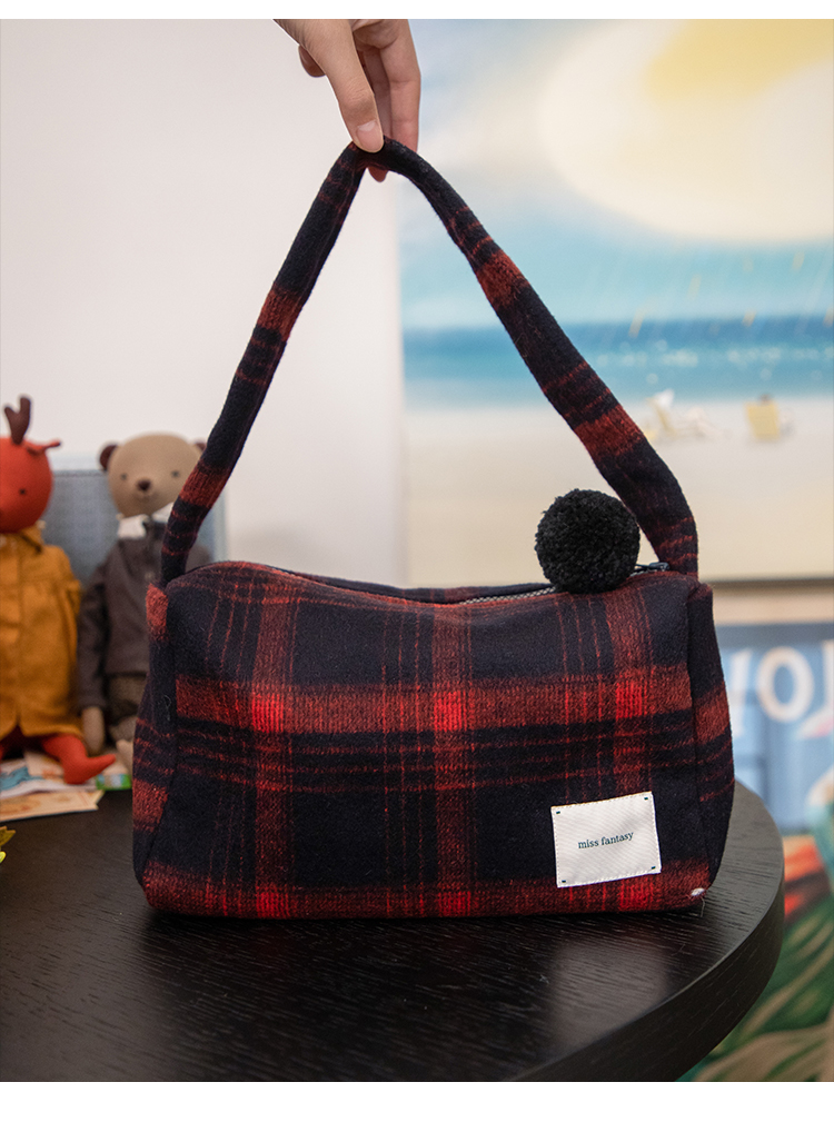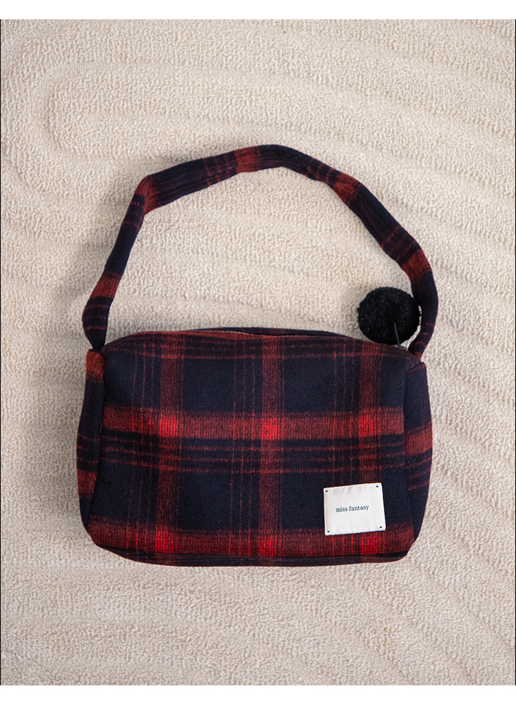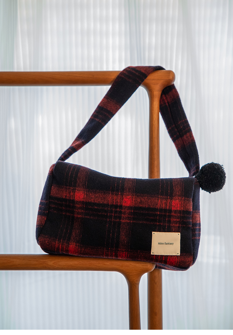 格子双面呢腋下包 AB645123D