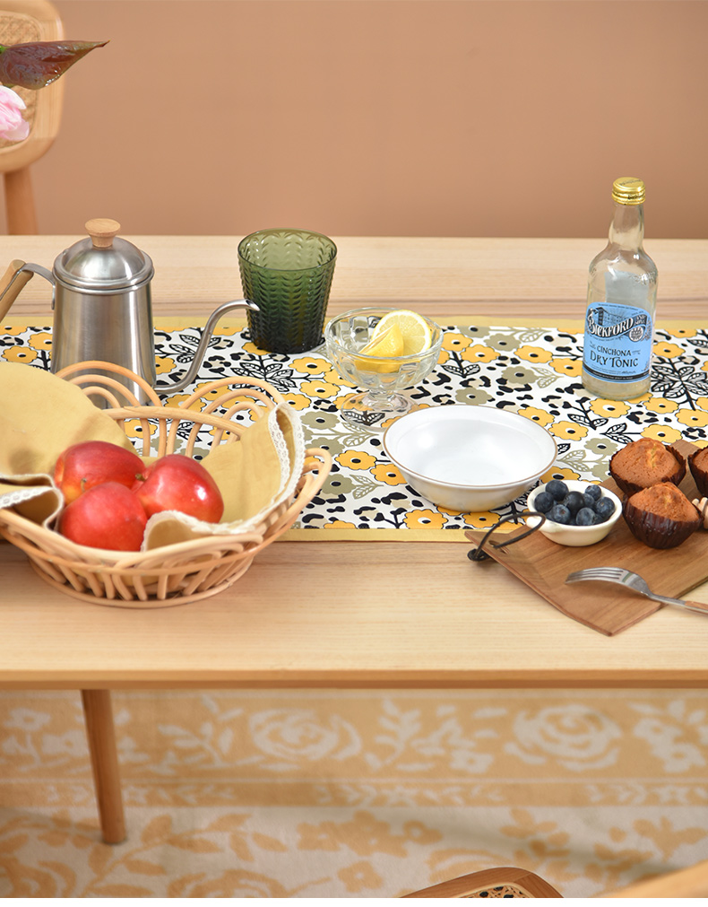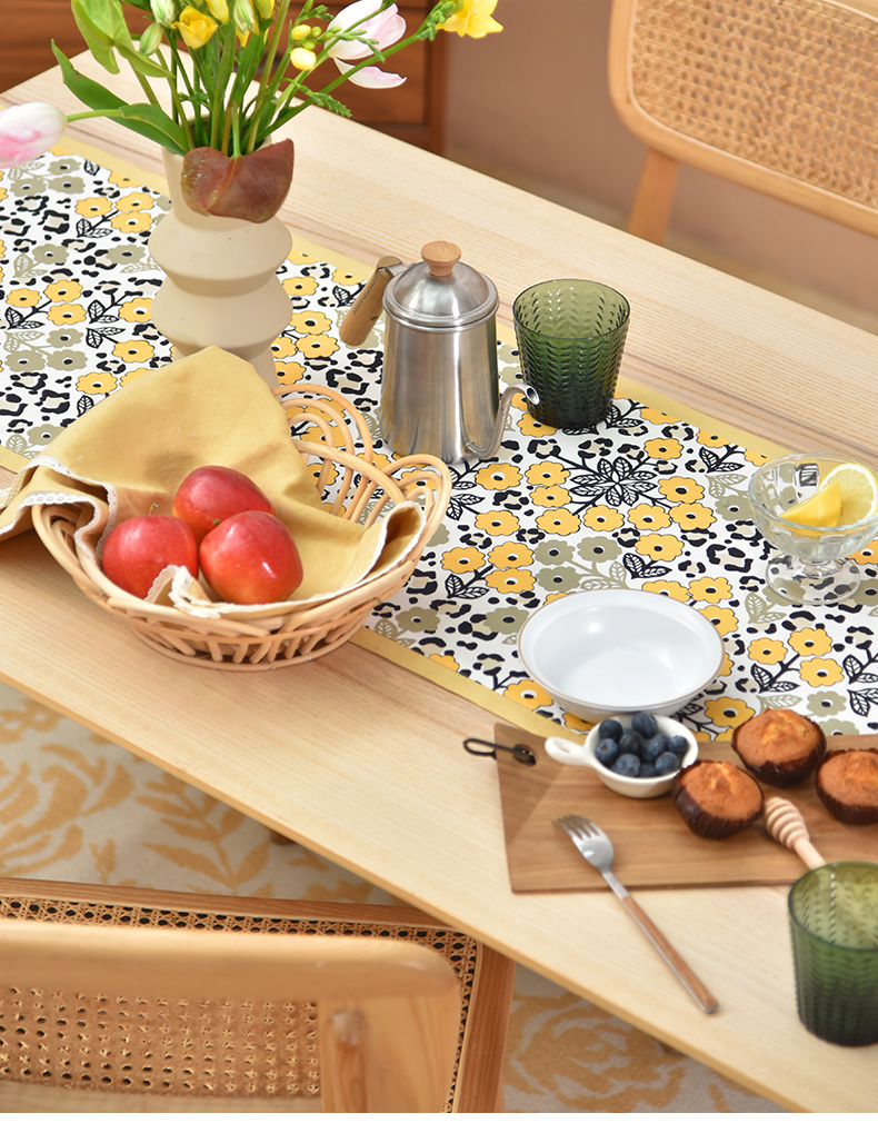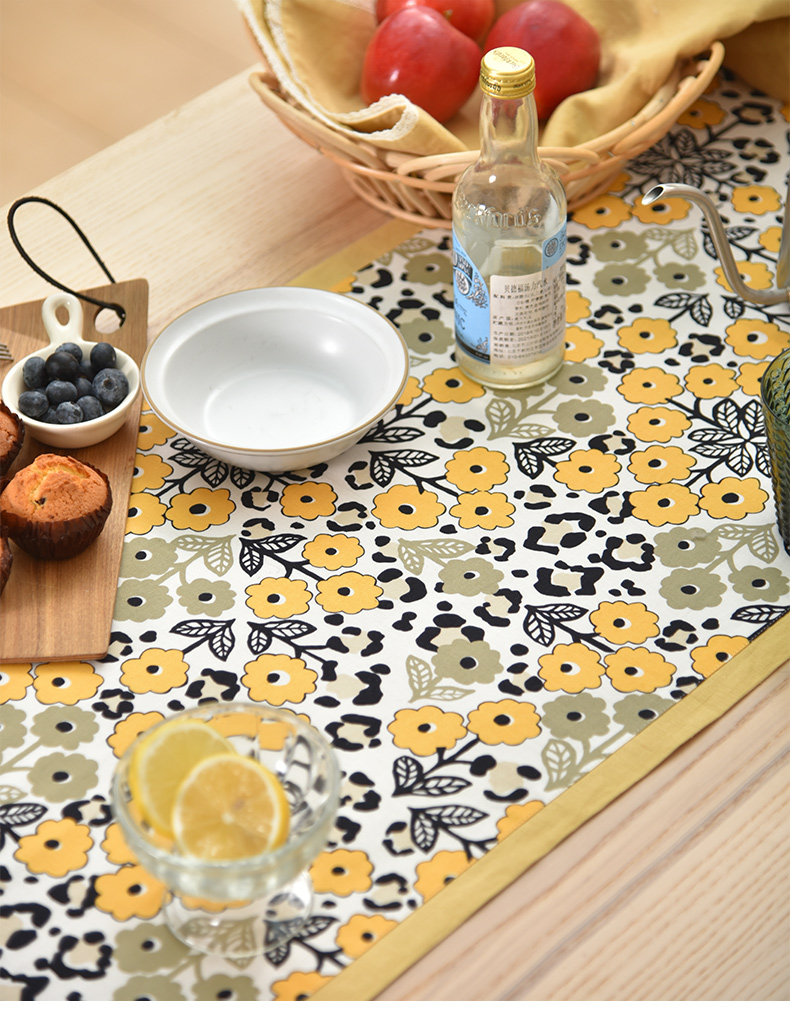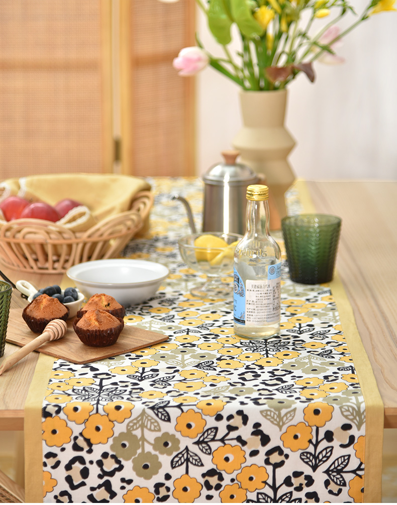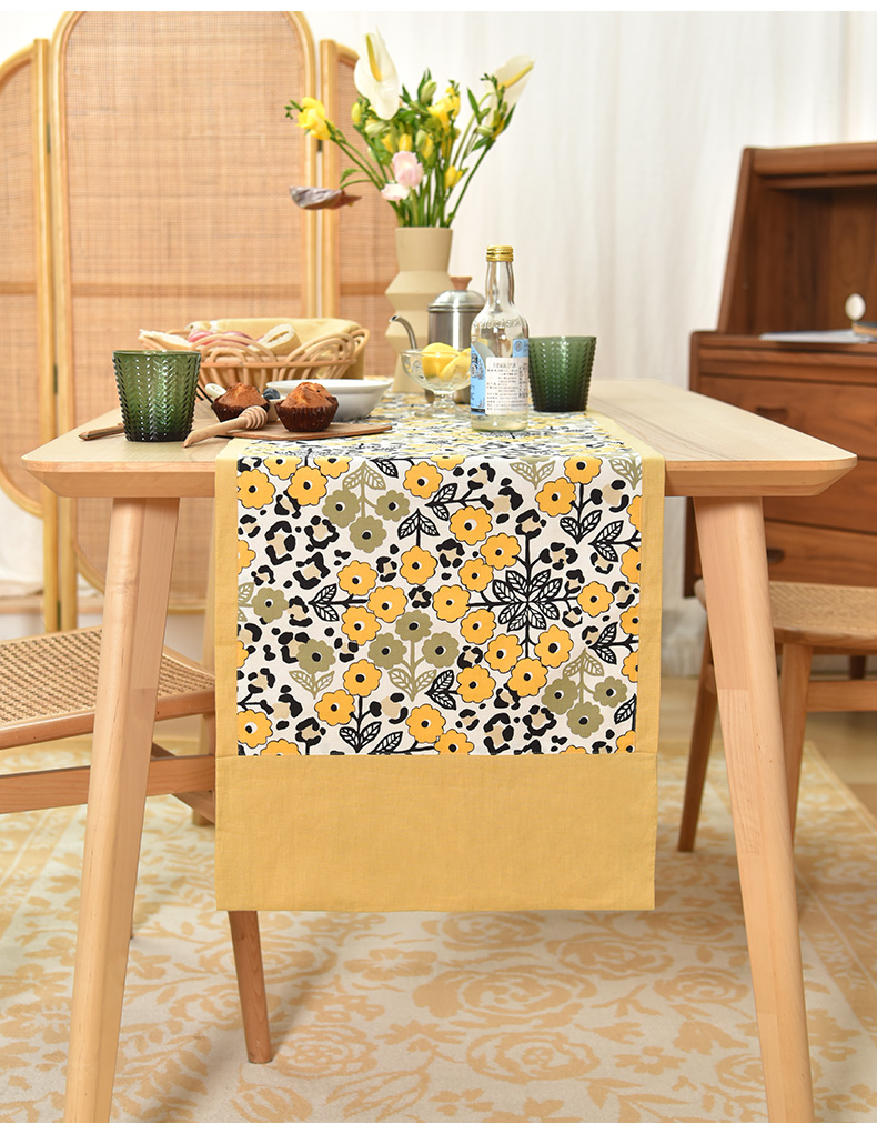 黄色木槿系列桌旗日式双面茶旗布