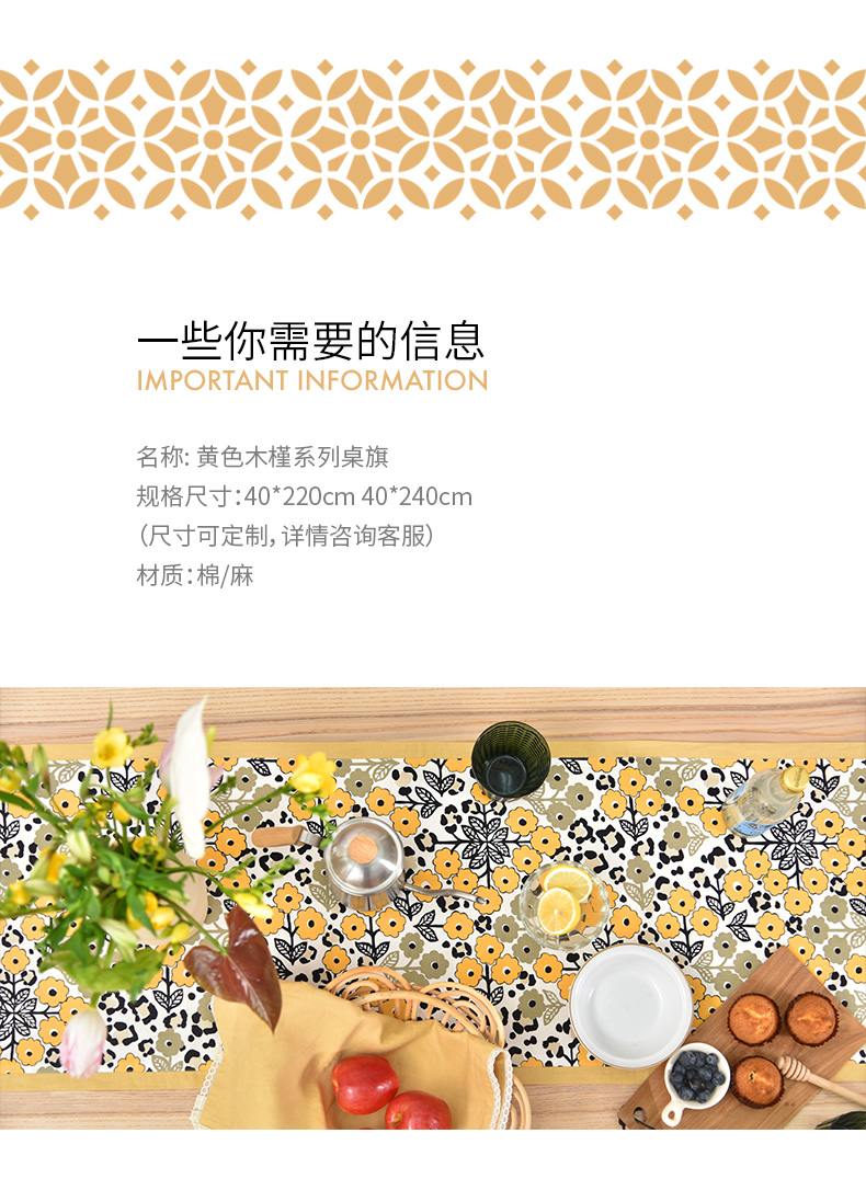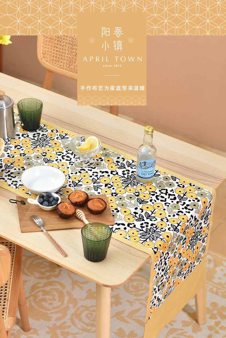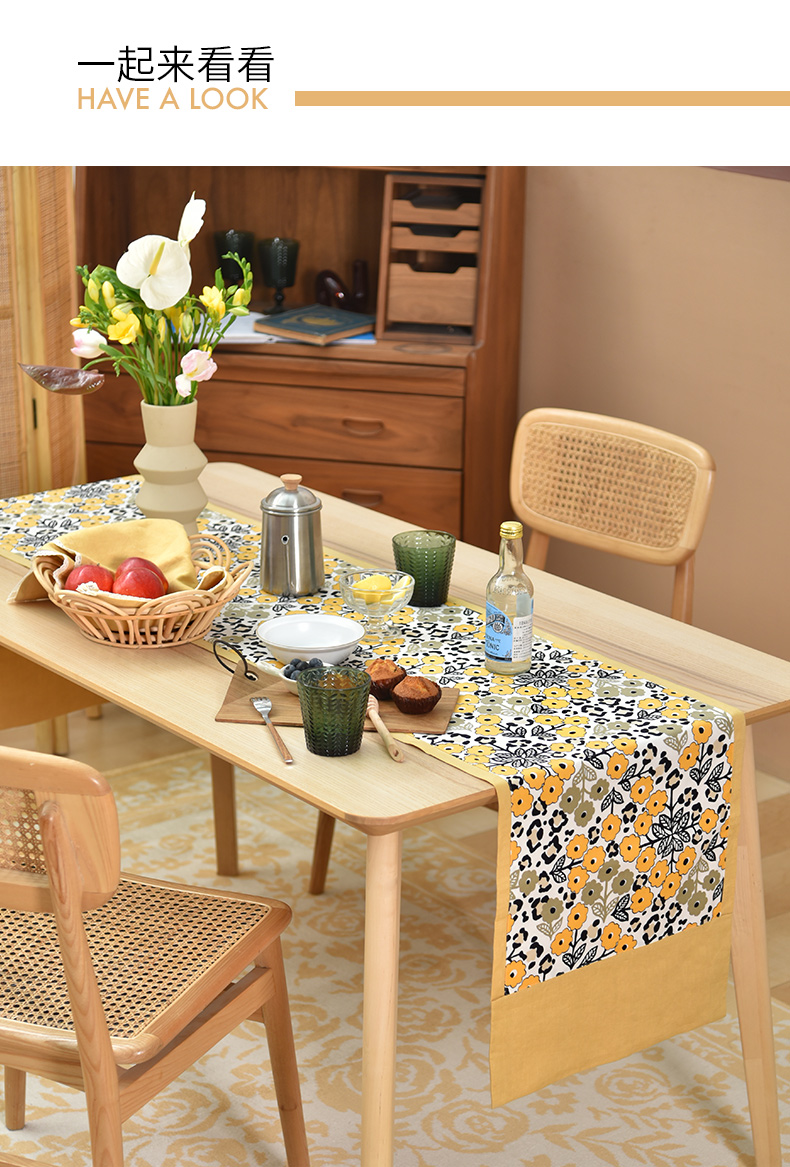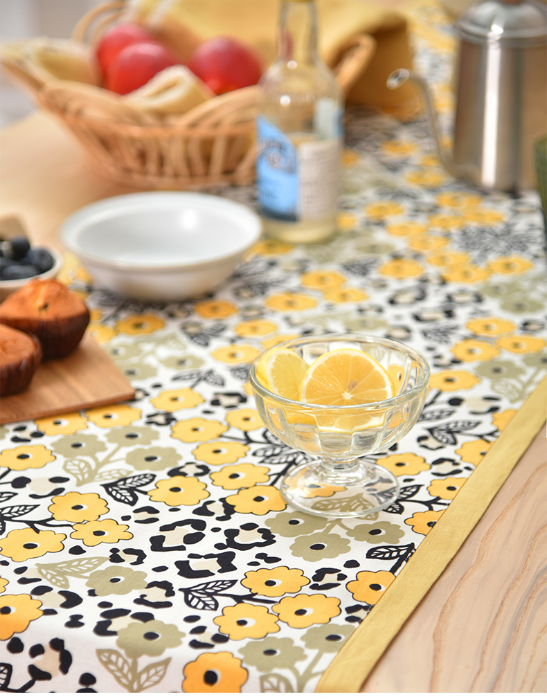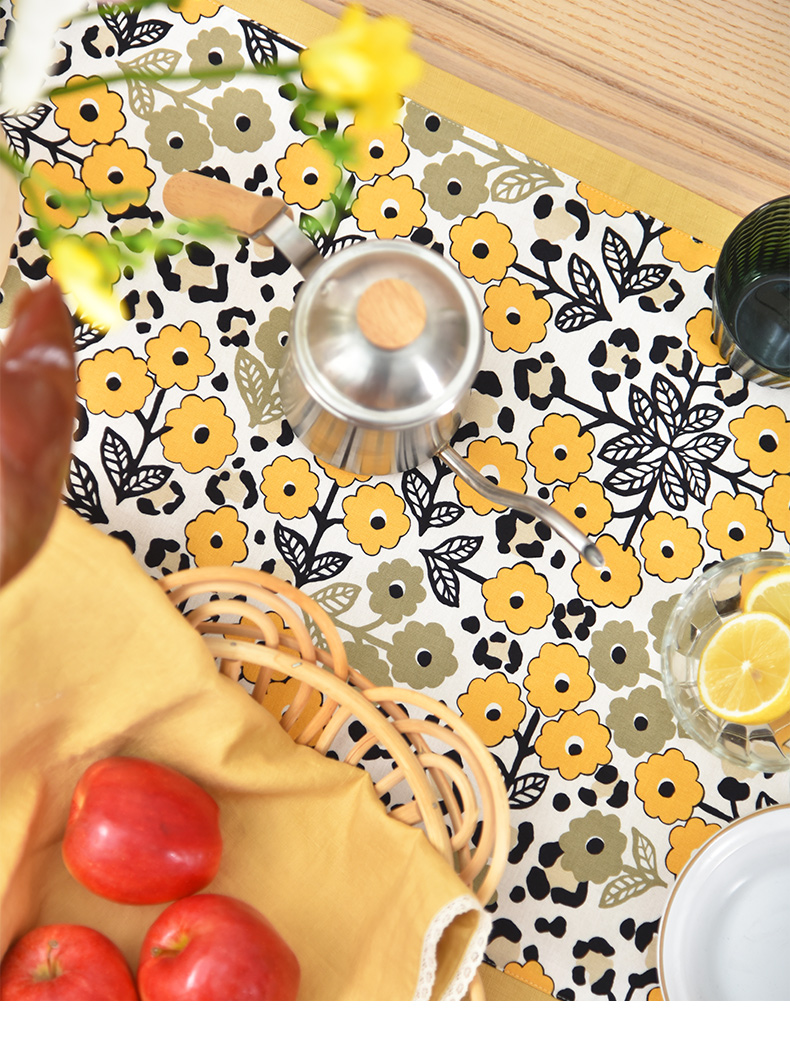 黄色木槿系列桌旗日式双面茶旗布