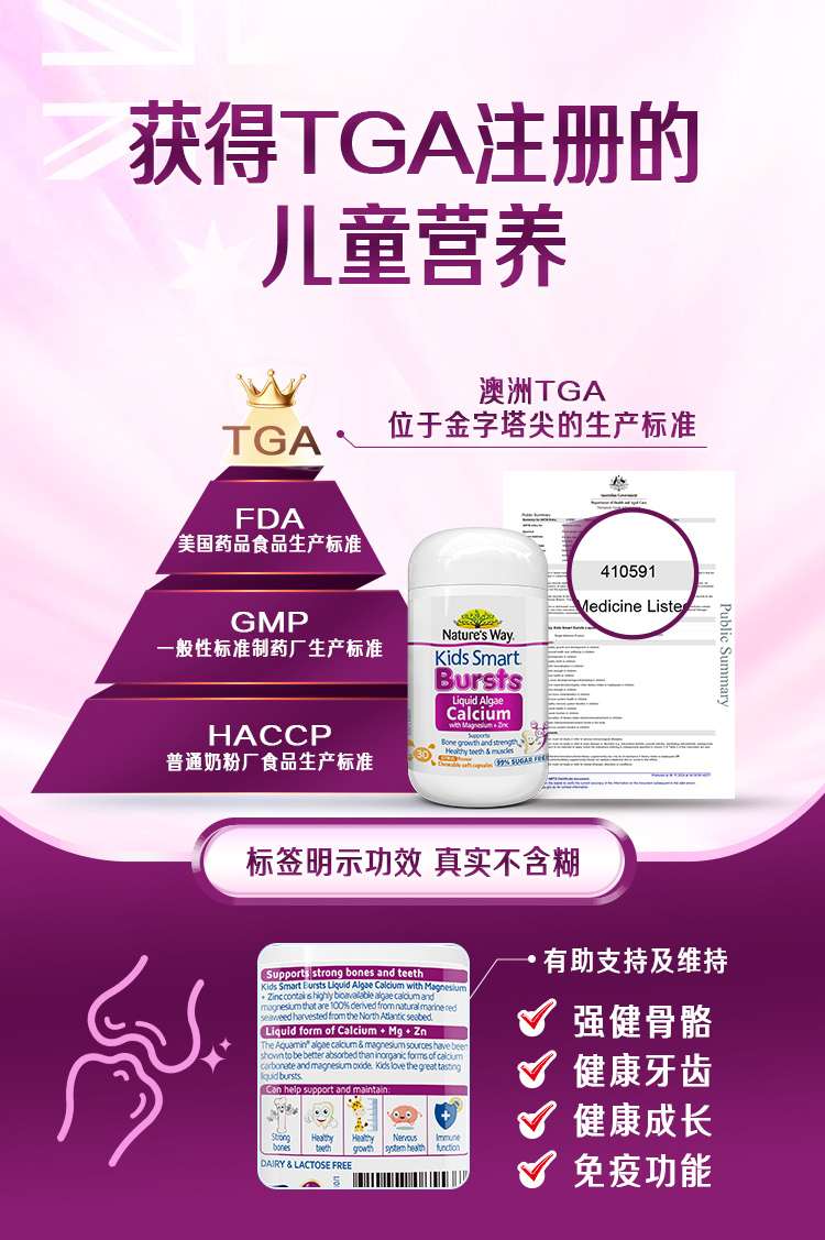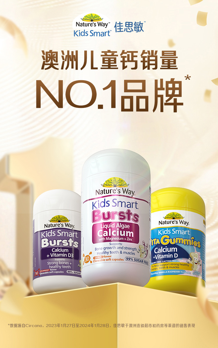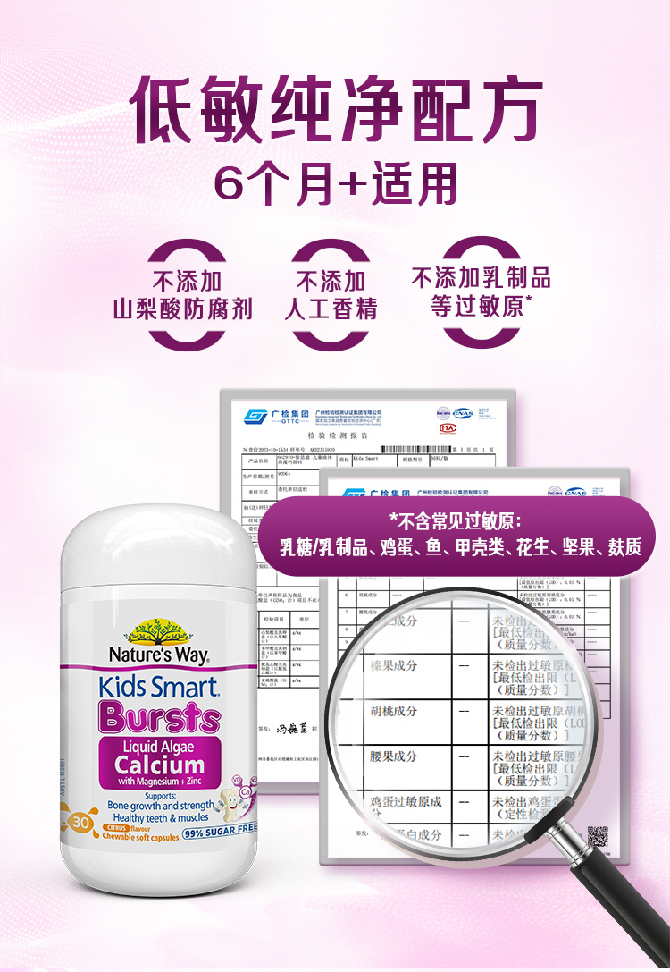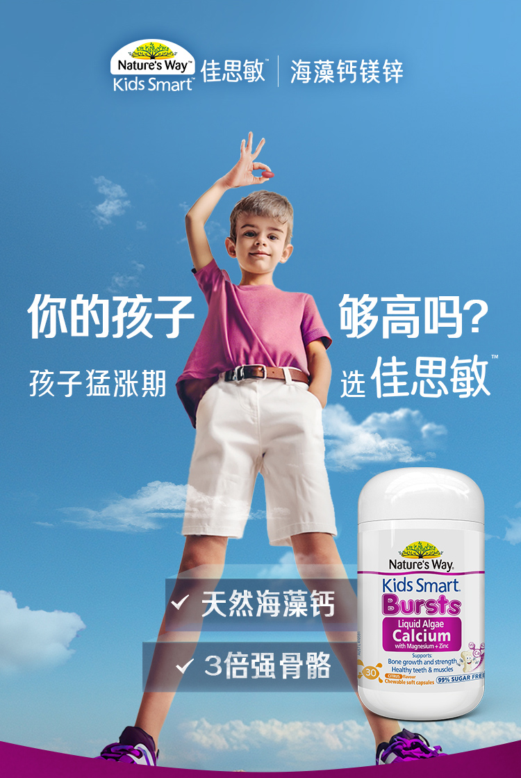 6个月-11岁 液体钙镁锌K2D3爆浆丸30粒 | Nature's Way 佳思敏 海藻钙儿童5大成长因子 1粒补全 科学含量 精准补钙(26年12月)