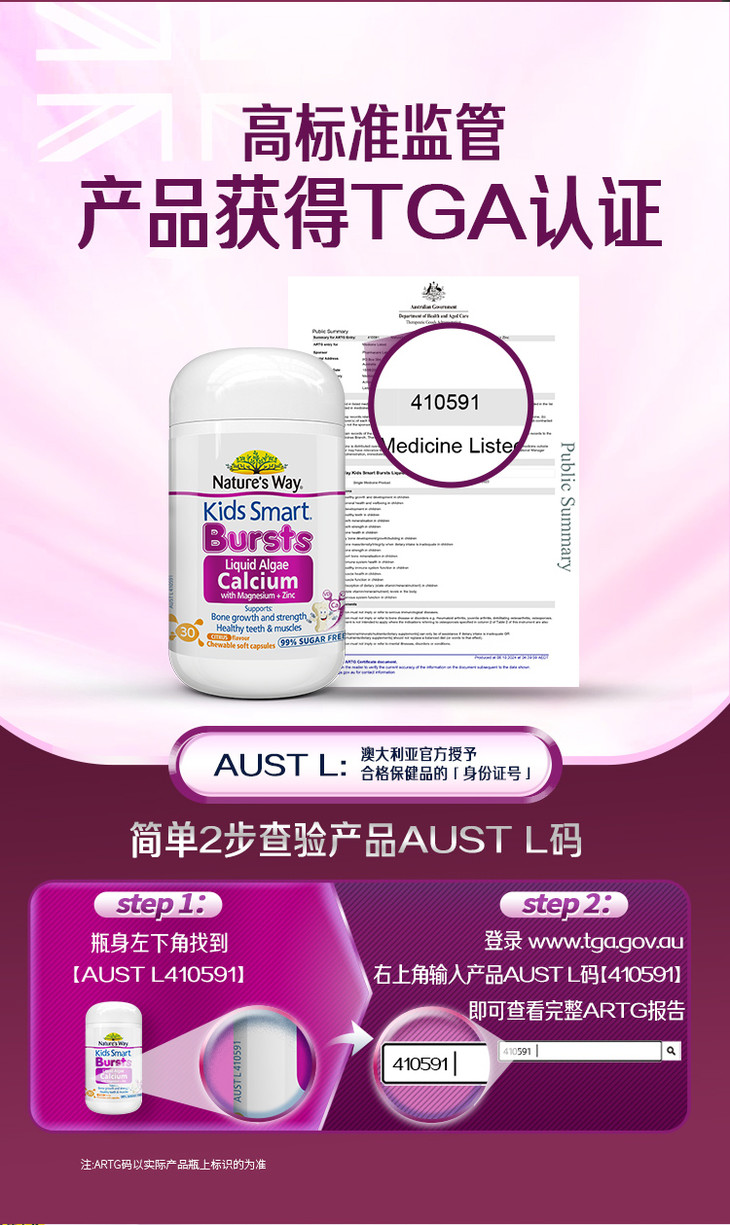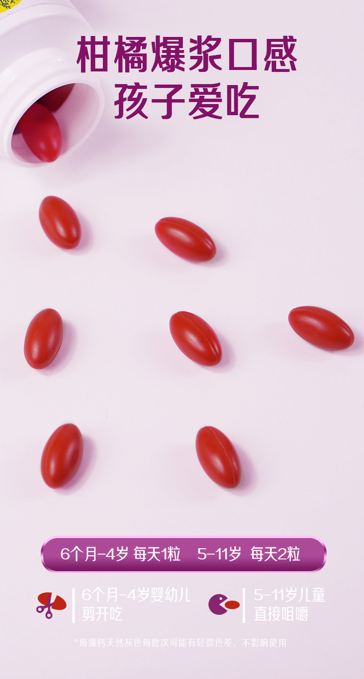 6个月-11岁 海藻钙 | Nature's Way 佳思敏 儿童液体钙镁锌K2D3爆浆丸30粒